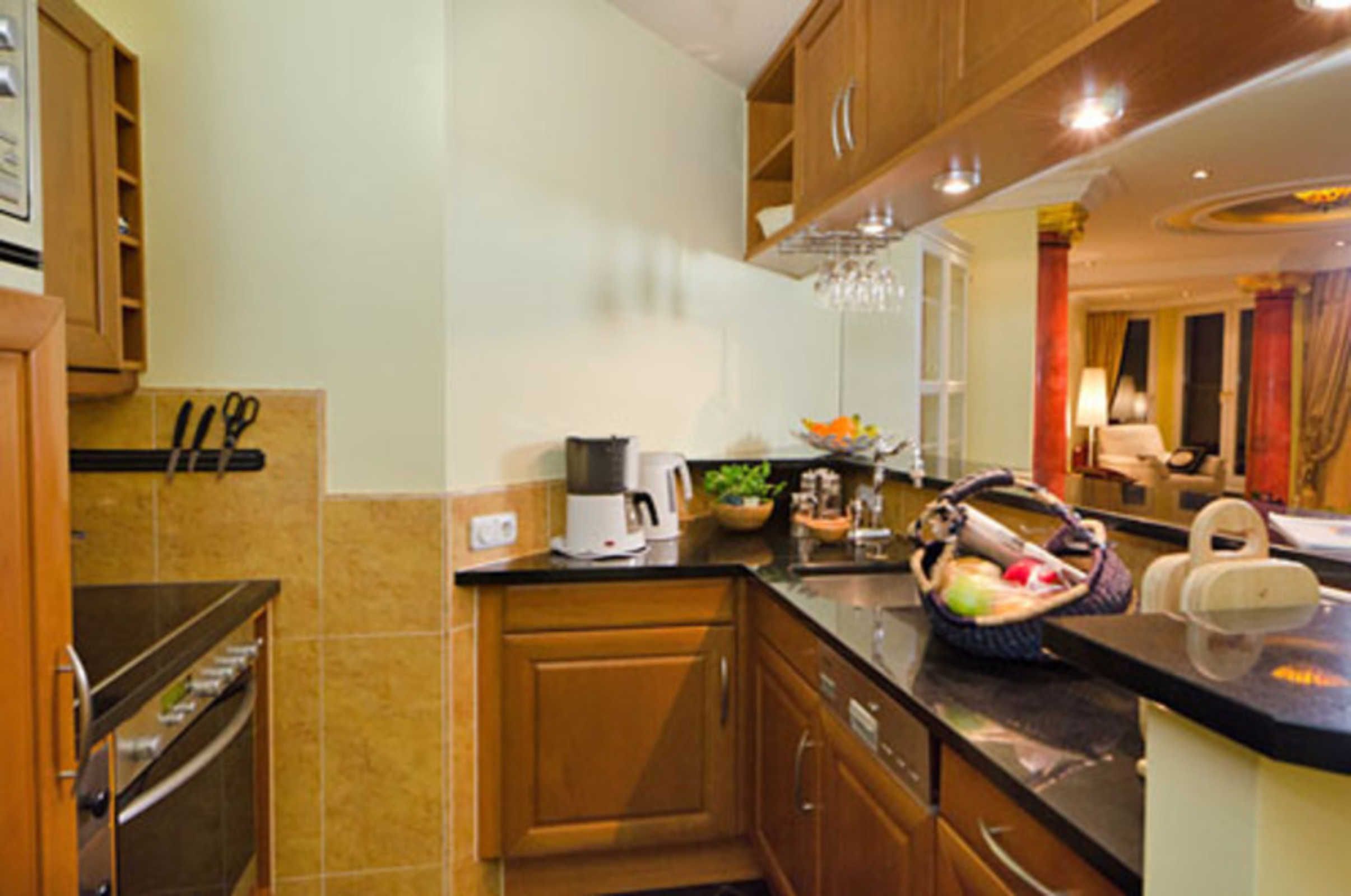 - Küche - Herd mit Backröhre, Mikrowelle, Kühlschrank