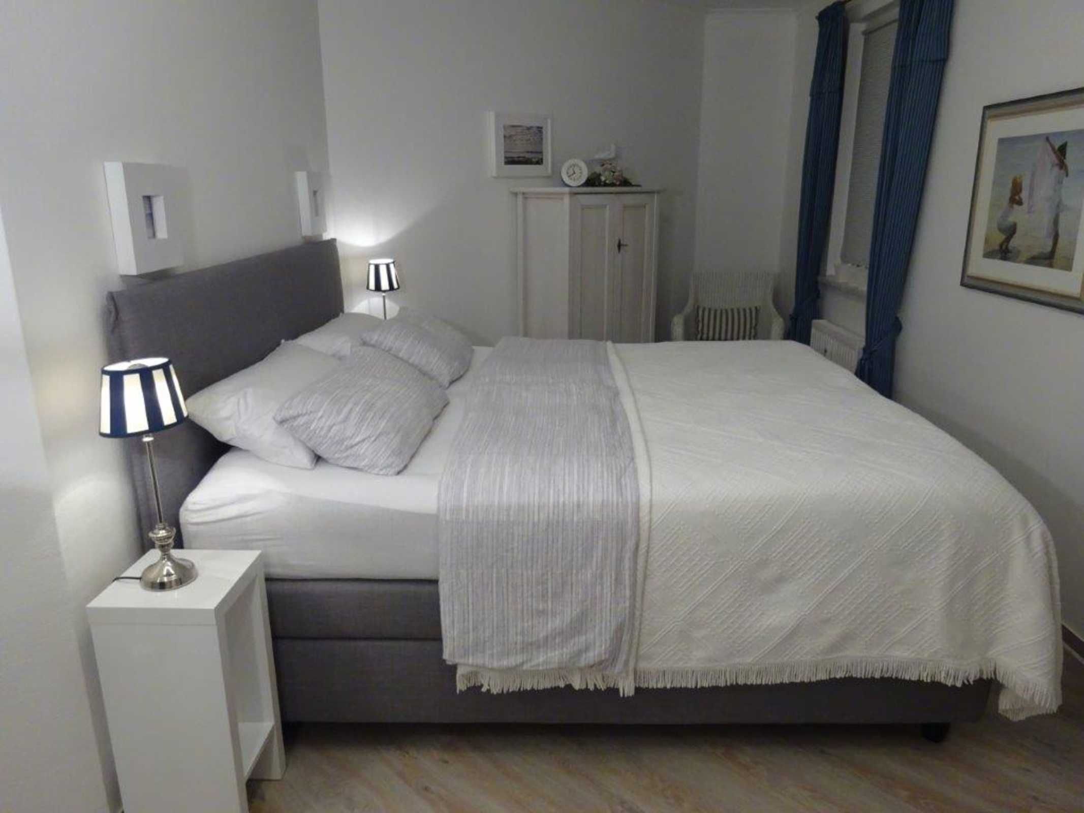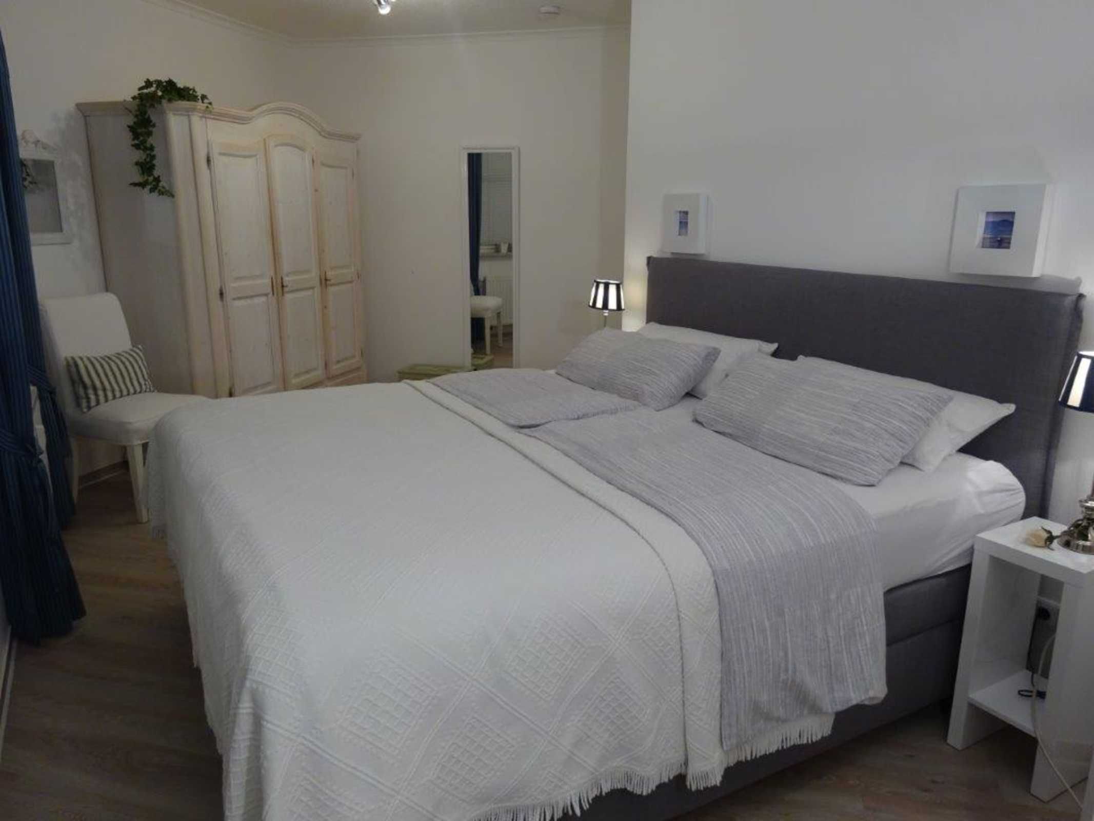 - 1. Schlafzimmer mit Doppelbett (Boxspringbett Breite: 1,80m) und Kleiderschrank