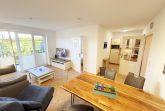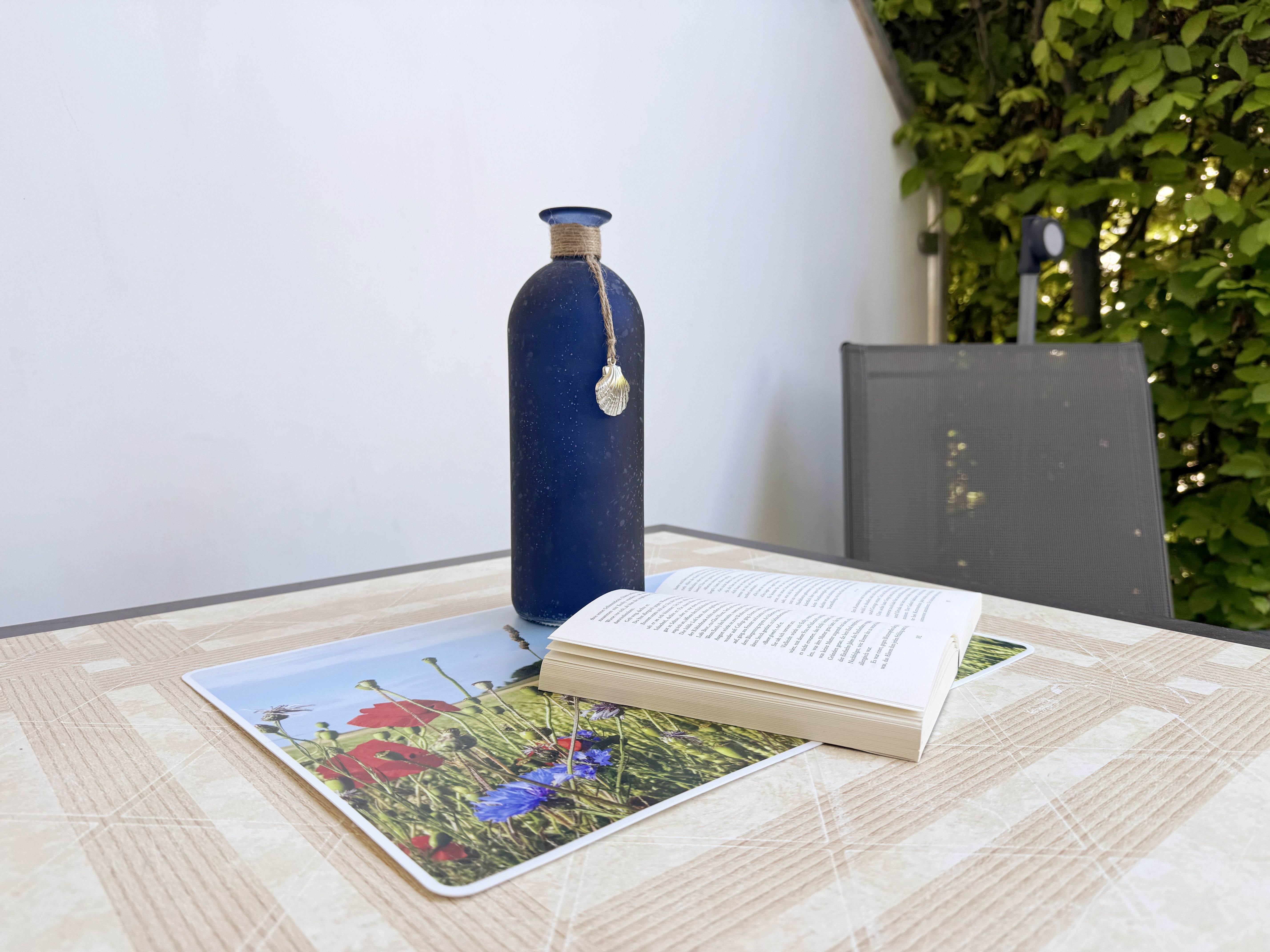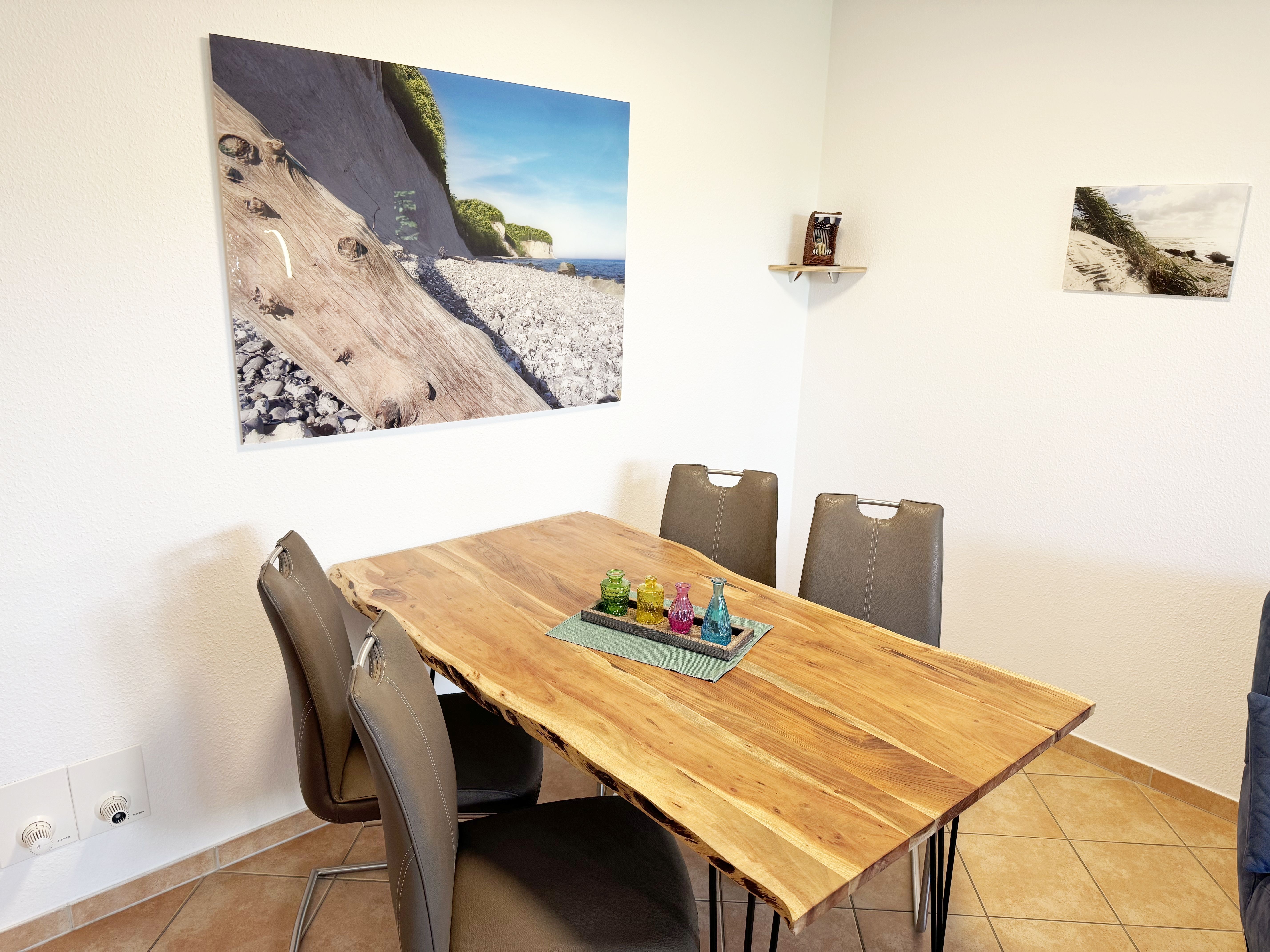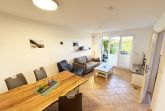 Ihr Urlaub hat begonnen! Nur ein kleines Kiefernwäldchen und wenige Schritte trennen Ihr komfortabel eingerichtetes Appartement vom weißen Sonnenstrand. Das ca. 50 m² Nichtraucher-Appartement im Erdgeschoß ist für 3 Erwachsene + 1 Kind bis 12 Jahre ausgestattet. Die komplett ausgestattete Küchenzeile verfügt über einen Kühlschrank mit Gefrierfach, Ceranfeld, Backofen, Mikrowelle, Kaffeemaschine, Toaster, Wasserkocher und viele kleine Küchenhelfern lässt keine Wünsche offen. Ein großer Esszimmertisch mit bequemen Stühlen bietet Ihnen viel Platz. Moderne Leuchten tauchen den gemütlichen Wohnbereich in ein stimmungsvolles Licht. Die bequeme Schlafcouch mit Ausziehfunktion (Aufbettung für 2 Personen, 1,60m x 2,00m), der Couchtisch und auch der stilvolle Schwingsessel lassen Sie abschalten. Für eine Auszeit sorgt der LED-TV, der mittels Wandhalterung in jede gewünschte Richtung verstellbar ist. Auf dem Low Board stehen ein Blu-Ray-Player, ein DAB-Radio, einige Spiele und eine Büchersammlung für die ruhigen Minuten zur Verfügung. Ebenso wie schnelles WLAN (50MB/s) und ein modernes Internet-Radio. Vom Wohnbereich gelangen Sie auf die möblierte Sonnen-Terrasse (Westen) im eingezäunten, fast uneinsehbaren Garten. Hier können Sie auch ungestört die Zeit im schönen Strandkorb aus edlem, lackiertem Mahagoni-Holz verbringen. Das geräumige Schlafzimmer mit Doppelbett (1,60m x 2,00m) verfügt über einen großzügigen Schwebetürenschrank, verstellbare Lattenroste, Nachttischablagen mit Leseleuchten und einen Herrendiener. Ihr erholsame Schlaf wird durch Insektenschutz und Verdunklungs-Plissees im gesamten Appartement unterstützt. Vom hellen Flur mit Garderobe gelangen Sie in das hochwertige Badezimmer mit einer ebenerdigen Echtglas-Dusche, Wandtiefspül-WC, Waschtisch, Haartrockner und beheiztem Handtuchtrockner. Im gesamten Wohnbereich sorgt eine Fußbodenheizung das ganze Jahr über für eine angenehme, leicht zu regulierende Wärme. Für unsere kleinen Gäste stehen ein Kinderreisebett und ein Hochstuhl bereit. Maximal sind 2 Haustiere gegen eine Gebühr gern gesehene Gäste. Ein Wäscheständer sowie diverse Reinigungsutensilien sind vorhanden. Im wohnungseigenen Abstellraum finden sich zwei Fahrräder zu Ihrer Nutzung (nicht Bestandteil des Vertrages). Ihr PKW-Stellplatz (Nr.03) befindet sich direkt am Objekt. Die Erstausstattung eines Wäschepaketes (komplette Bettwäsche, 1 Duschhandtuch, 2 kleine Handtücher) können Sie bis 14 Tage vor Anreise gegen einen Aufpreis dazu buchen oder durch eigene ergänzen. Ab 2 gebuchten Paketen erhalten Sie einmalig 1 Geschirrhandtuch und 1 Duschvorleger hinzu.