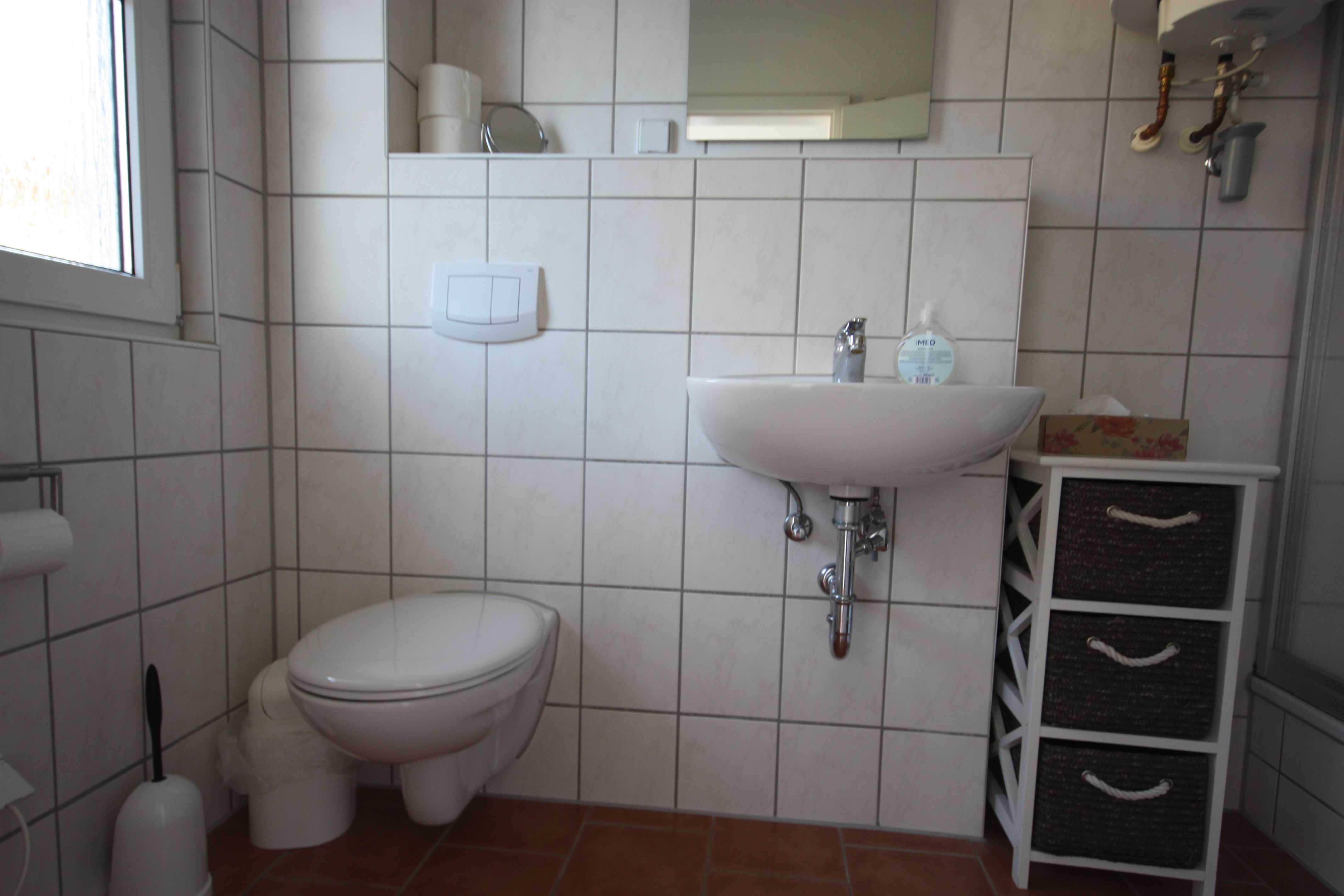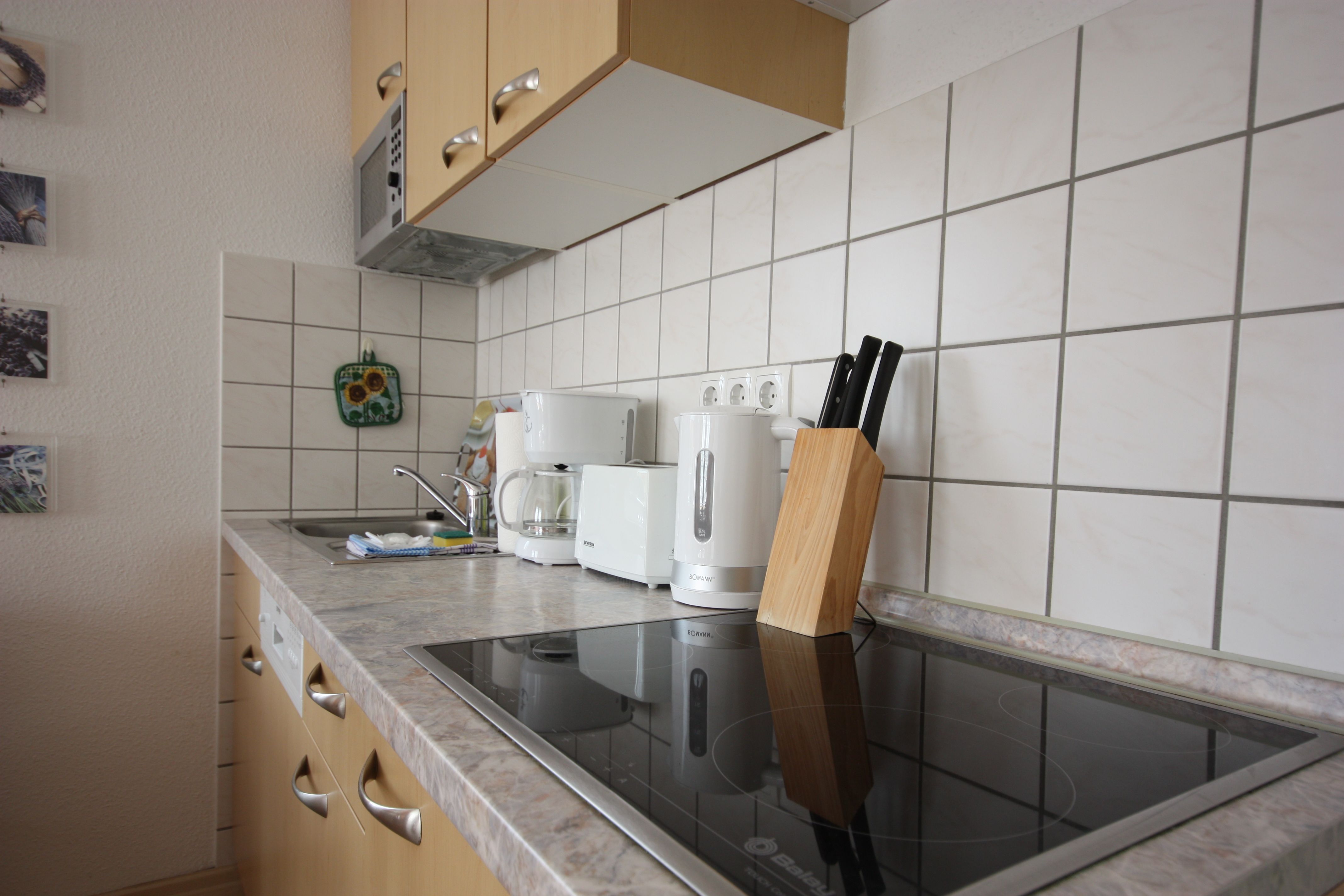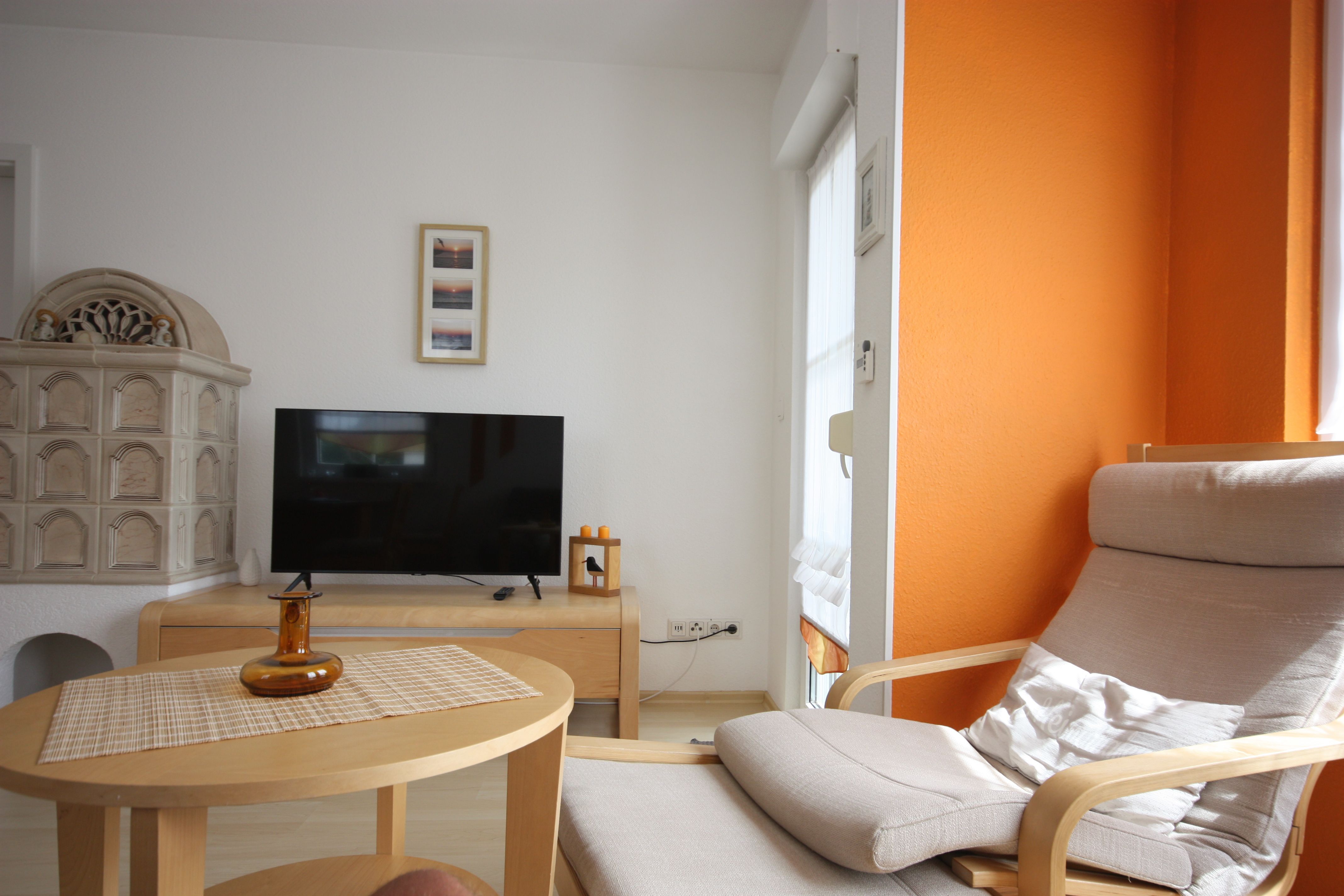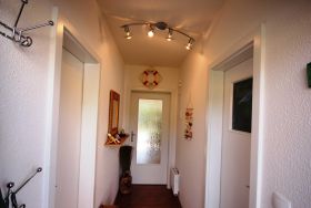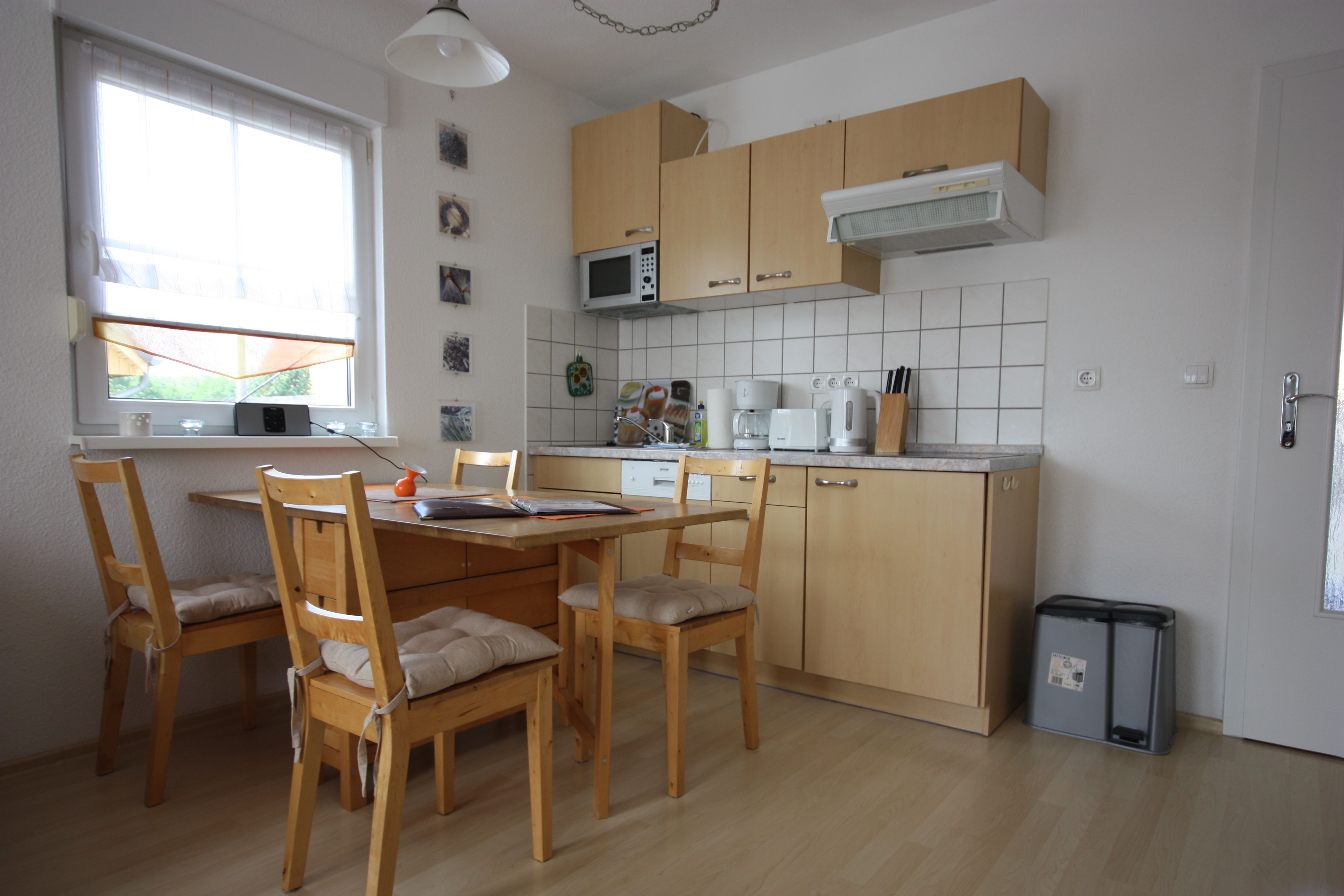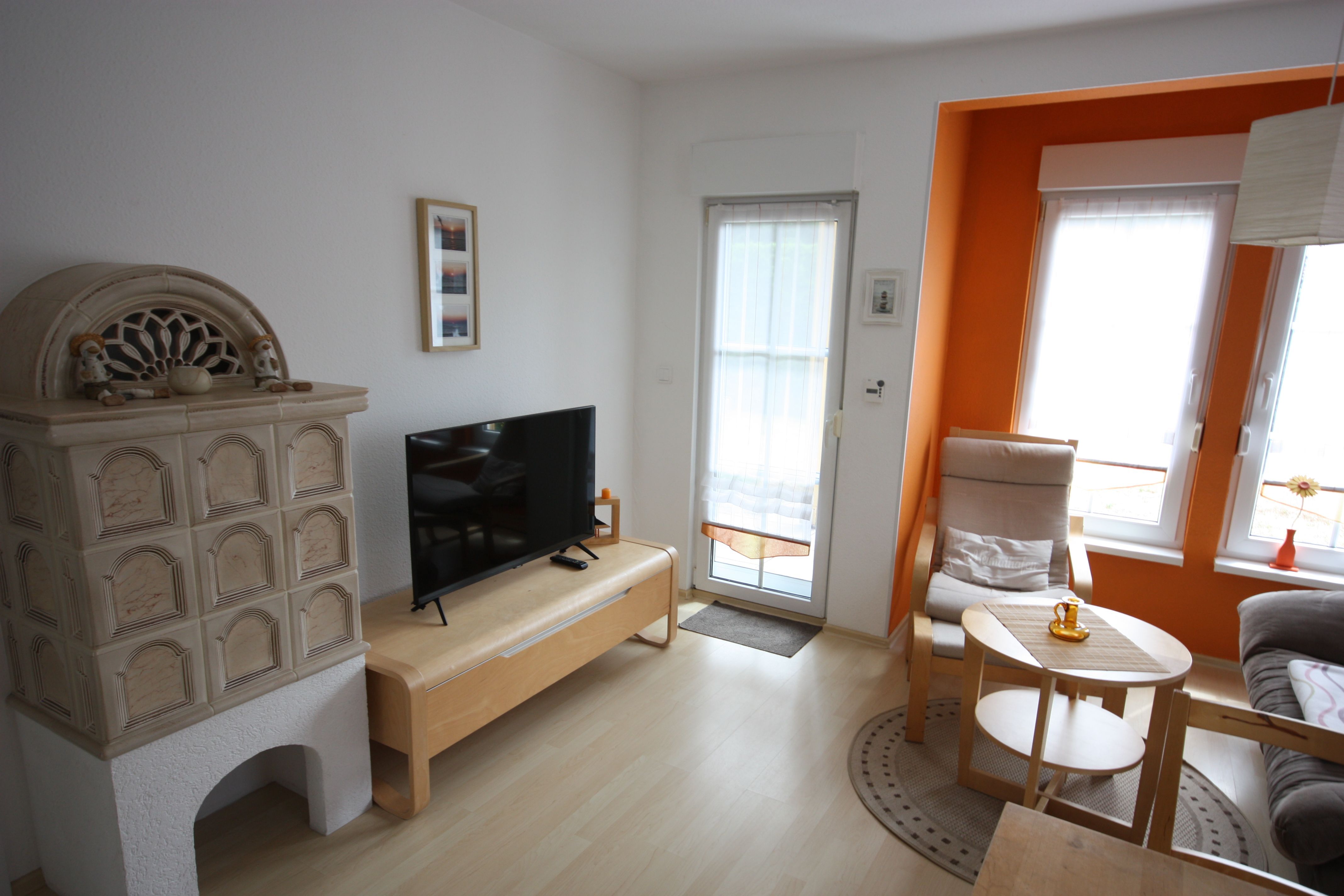 Die Wohnung ist im modernen Landhausstil mit Laminatboden und rot/brauner Möblierung gehalten. Die Wohnung verfügt über ein Schlafzimmer mit Doppelbett 160cm breit und ein Schlafzimmer mit Schlafsofa. Die Wohnung ist ideal geeignet für kleine Familien.