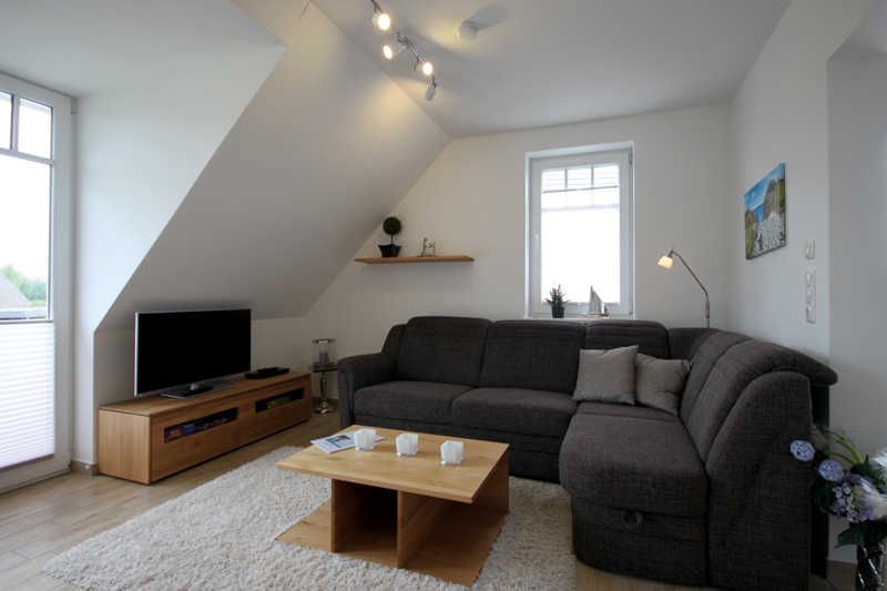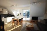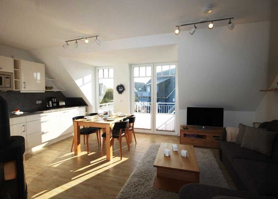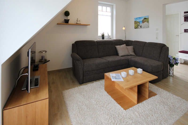 Die familienfreundliche Drei-Zimmer-Maisonetten-Wohnung im Obergeschoss ist nur wenige Schritte vom Meer gelegen.