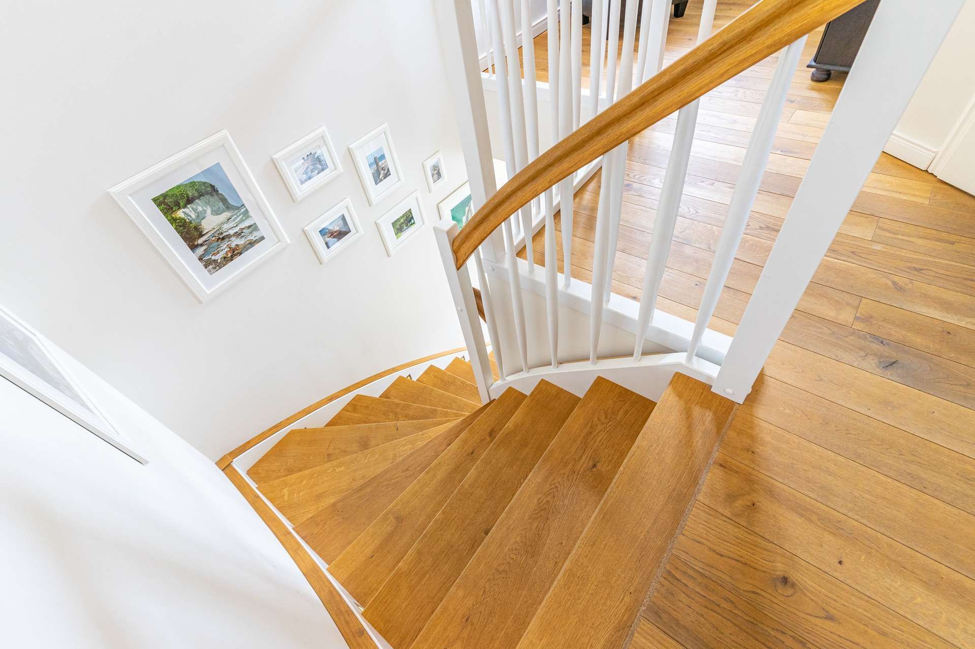 2 Schlafzimmer und 1 großes Badezimmer im Obergeschoss und 1 Gäste-WC im Erdgeschoss.