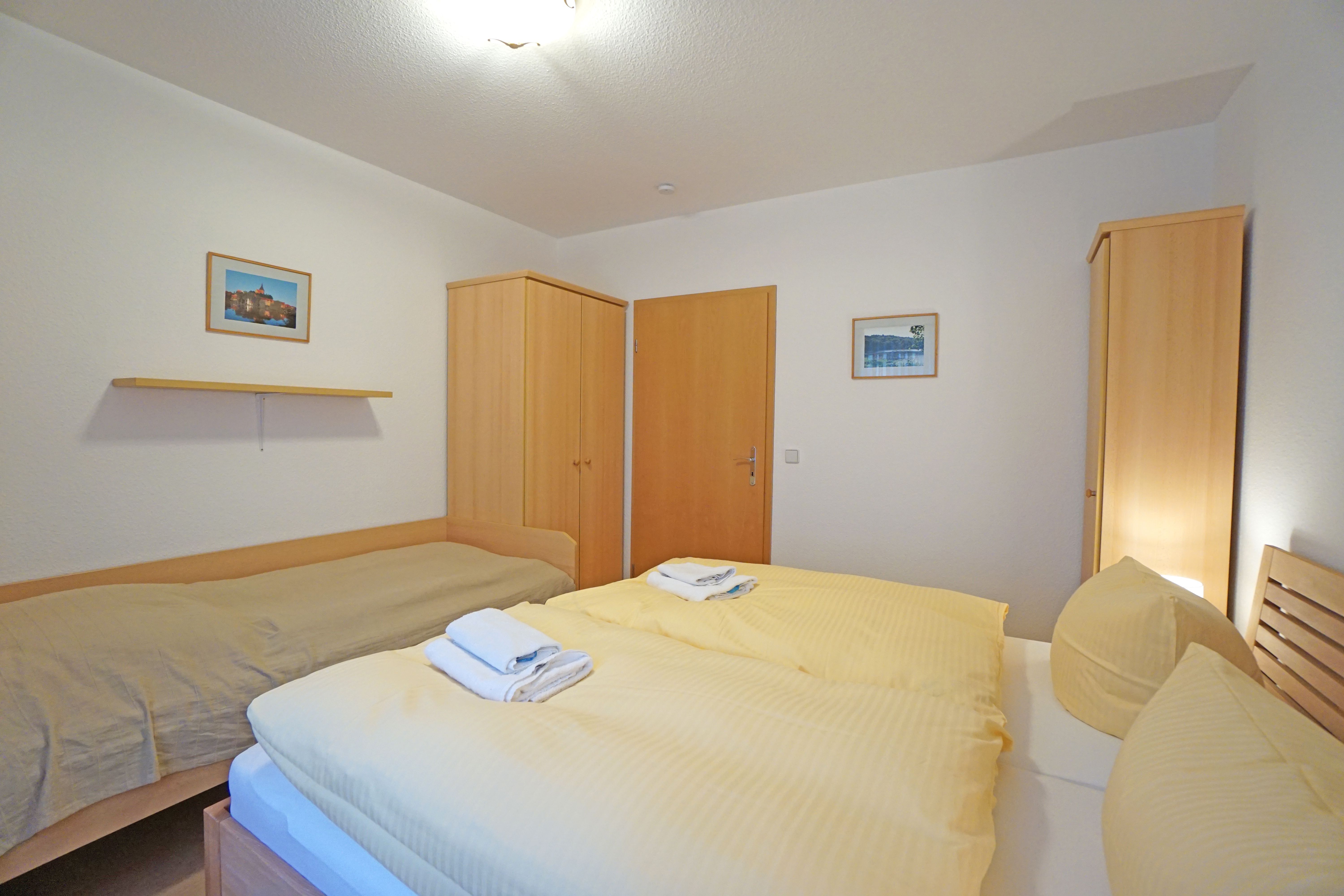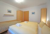 Die hochwertig eingerichtete 2-Zimmer-Ferienwohnung verfügt über ein komfortabel eingerichtetes Wohnzimmer (Flachbildfernseher, DVD-Player, etc.) mit einer komplett ausgestatteten Küchenzeile (Geschirrspüler, Mikrowelle, etc.). Im Erkerbereich des Wohnzimmers befindet sich der Esstisch. Das Schlafzimmer ist mit einem Doppelbett sowie einem Einzelbett ausgestattet (neues Doppelbett 2025). Für Raucher gibt es eine Miniterrasse vor dem Wohnzimmer.