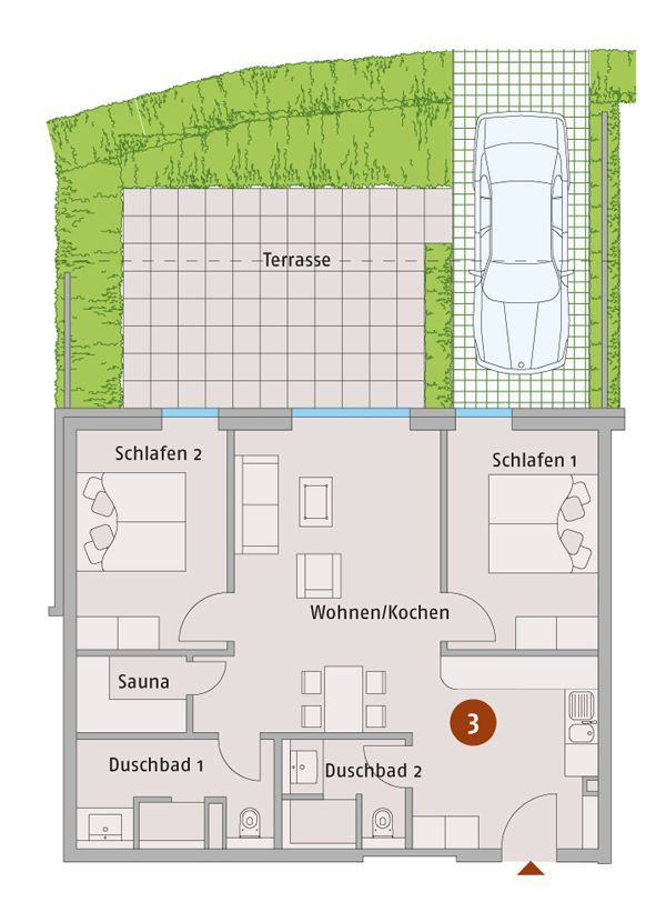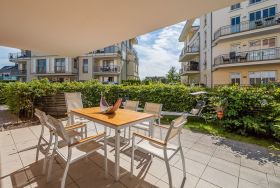 Strandnahe 3-Raumwohnung für max. 5 Personen (4 Erwachsene, ein Kind bis 14 Jahre) mit eigener Sauna und Terrasse im EG.