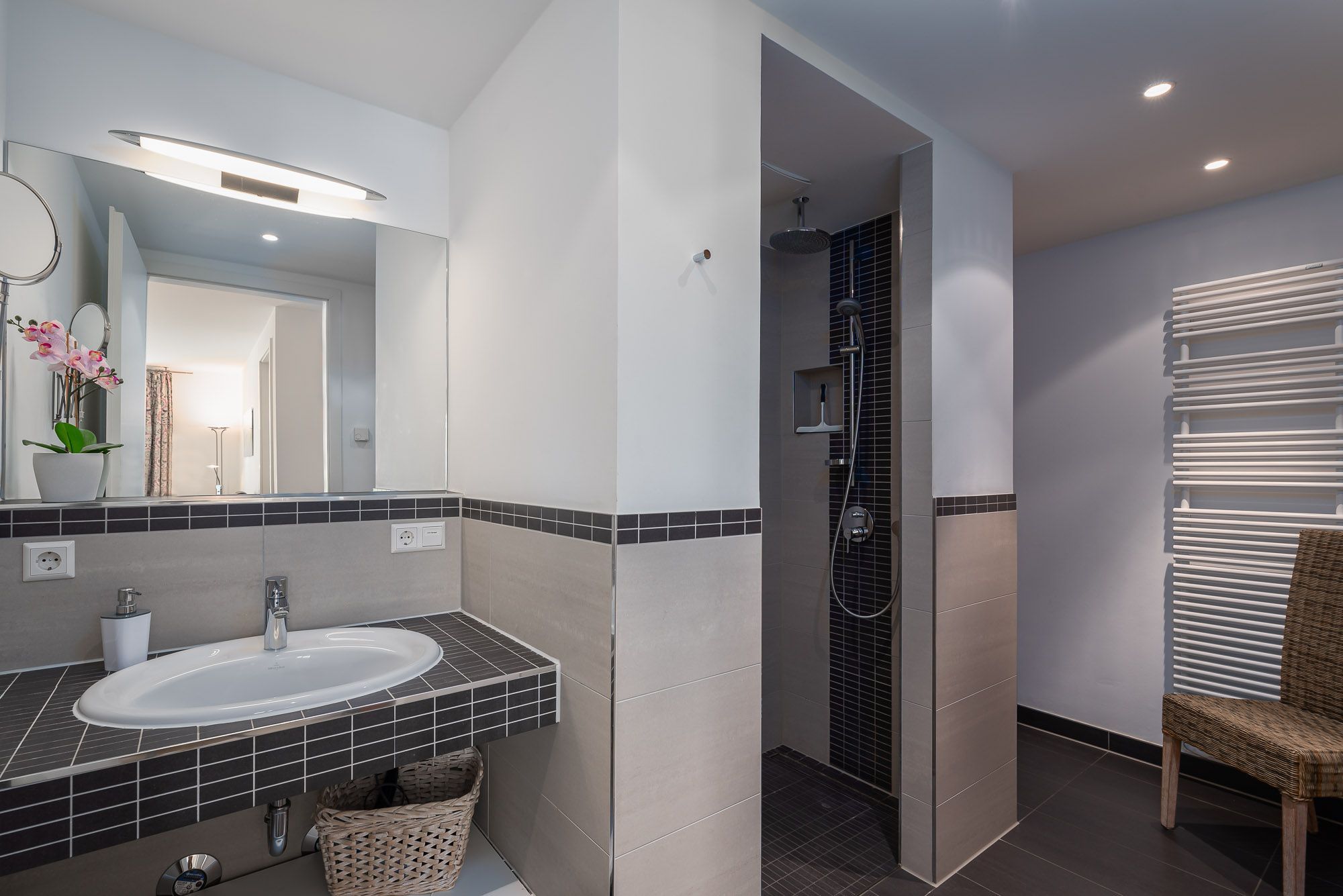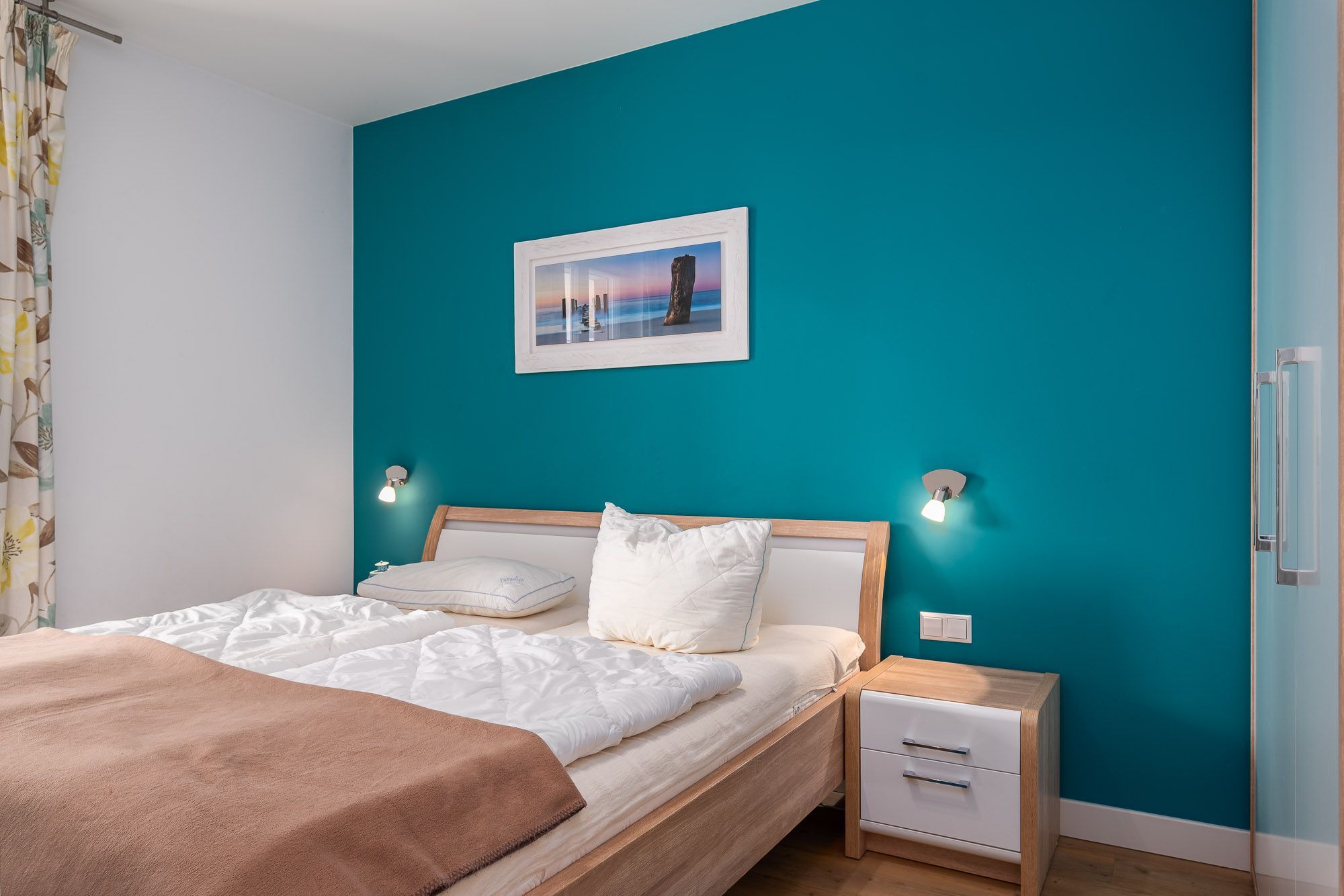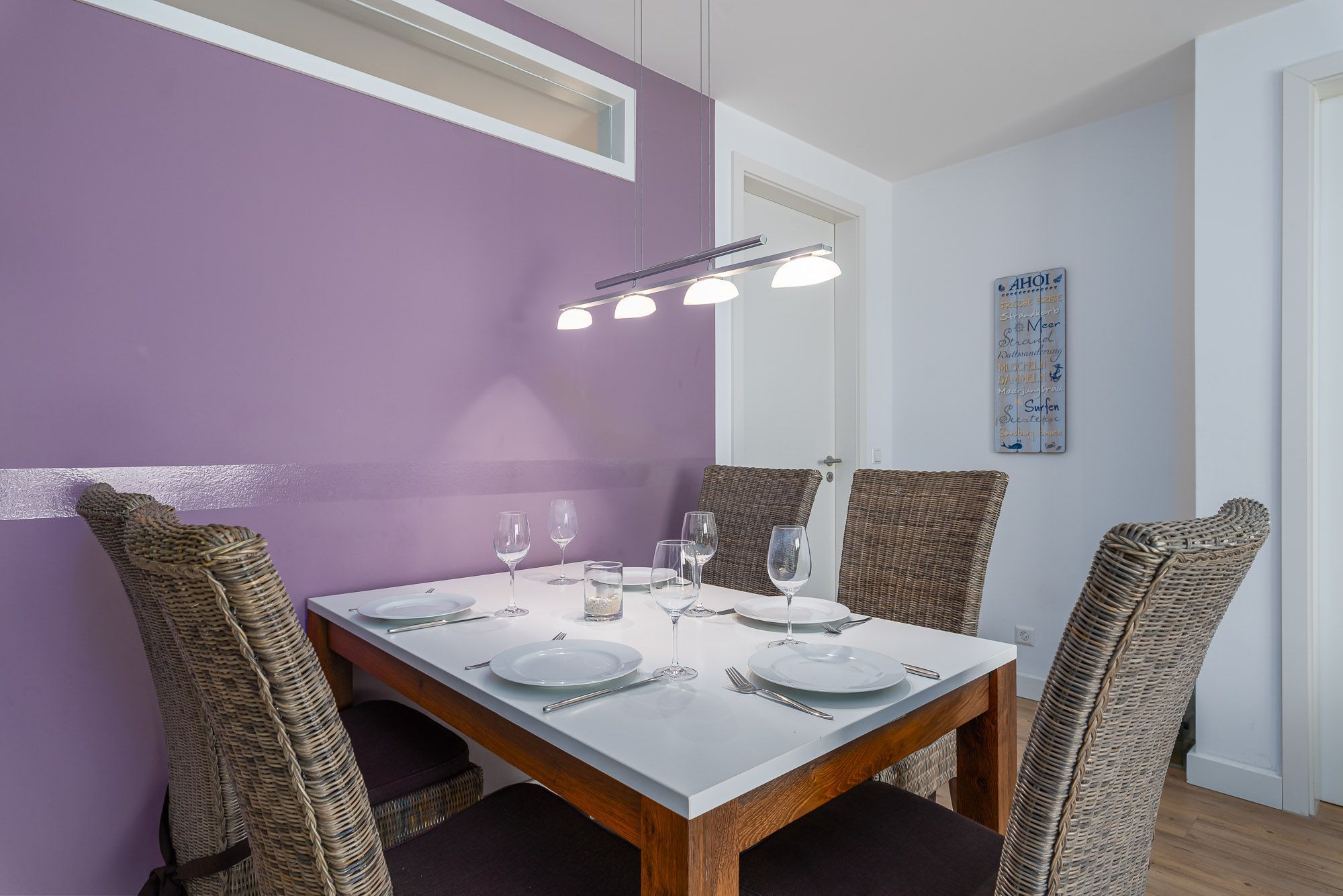 Diese moderne Ferienwohnung ist für max. fünf Erwachsene (ab dritter Person Aufpreis) und ein Kind (bis 14 Jahre) eingerichtet. Es stehen Ihnen zwei Schlafzimmer mit großen, bequemen Doppelbetten zur Verfügung. Beide Boxspringbetten sind mit angenehm weichen Matratzen belegt worden. In beiden Schlafräumen haben Sie jeweils einen Flatscreen-TV, ein CD-Radio und einen geräumigen Kleiderschrank. Auch ein tragbares Ausziehbett (Liege) ist bei Bedarf vorhanden. Im Wohnraum können Sie zusätzlich noch eine L-förmige Schlafcouch nutzen. Zur Unterhaltung gibt es dort einen großen Flatscreen-TV inklusive Blu-ray-Player sowie eine separate Stereoanlage. Die Terrasse können Sie direkt von beiden Schlafzimmern und dem Wohnbereich aus betreten. Sie liegt in Süd-West- Richtung. Natürlich inklusive moderner Gartenmöbel. Im offenen Küchen -und Wohnbereich finden Sie einen ausziehbaren Esstisch mit sechs Rattanstühlen. Die Küche ist, neben der Standardausstattung, mit Mikrowelle, Backofen, Cerankochfeld, Geschirrspüler und Kühlschrank mit eingebautem Gefrierfach ausgestattet. Der Sanitärbereich verfügt über zwei Bäder. Beide ausgestattet mit bodengleichen Duschen, Waschtischen und Spiegel. In einem der Bäder finden Sie eine Sauna. Diese wird über einen Münzautomaten betrieben. An der Wohnung befindet sich ein kostenfreier Pkw-Stellplatz, direkt neben der Terrasse. Für geliehene oder mitgebrachte Fahrräder wurde ein abschließbarer Fahrradraum in der Tiefgarage eingerichtet. Und noch einige Hinweise: Es steht ein Kinderhochstuhl kostenlos bereit. Wäschesets und ein Kinderreisebett können kostenpflichtig dazugebucht werden. Waschmaschine und Trockner sind im Erdgeschoss, Waschraum, des Objekts vorhanden. (Münzautomaten mit 50 Cent Münzen Einwurf). Die Wohnung ist eine Nichtraucherwohnung. Und es sind hier keine Haustiere gestattet. Die kostenfreie WLAN-Verbindung in dieser Unterkunft ist ausschließlich für die Verwendung von Social- Mediakanälen sowie den Austausch von Bildern mit Familie und Freunden gedacht. Eine Nutzung zum Streamen, z.B. von Filmen, ist nicht vorgesehen. Ab der dritten Person und drittem Lebensjahr, wird ein Aufpreis in Höhe von 10,00 €/ ÜN pro Person berechnet. Sichern Sie sich den Anspruch auf einen der begehrten Strandkörbe (Anfang Mai - Ende August) und buchen Sie jetzt zu besonderen Konditionen (12,00 € pro Tag oder 75,00 € pro Woche.)