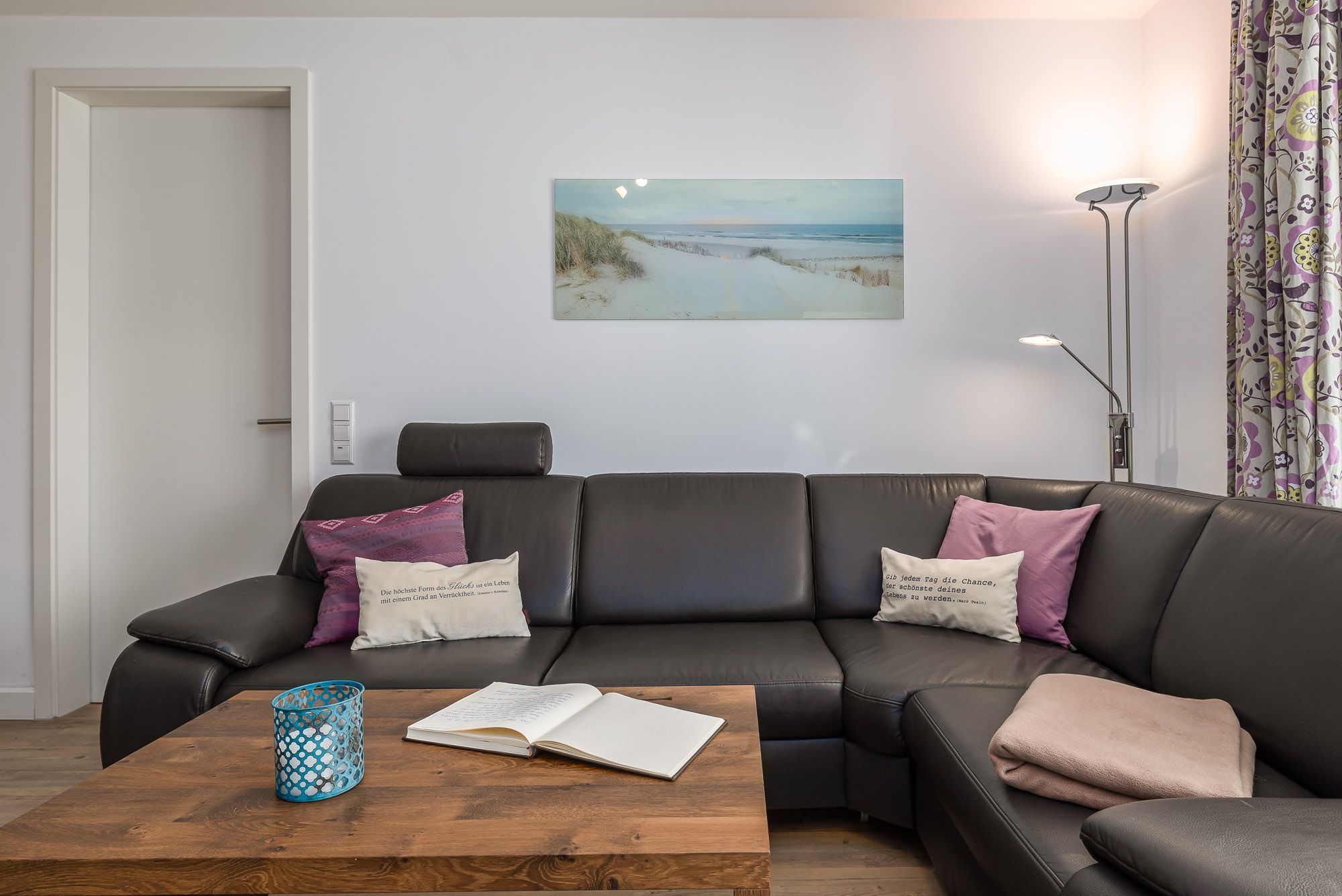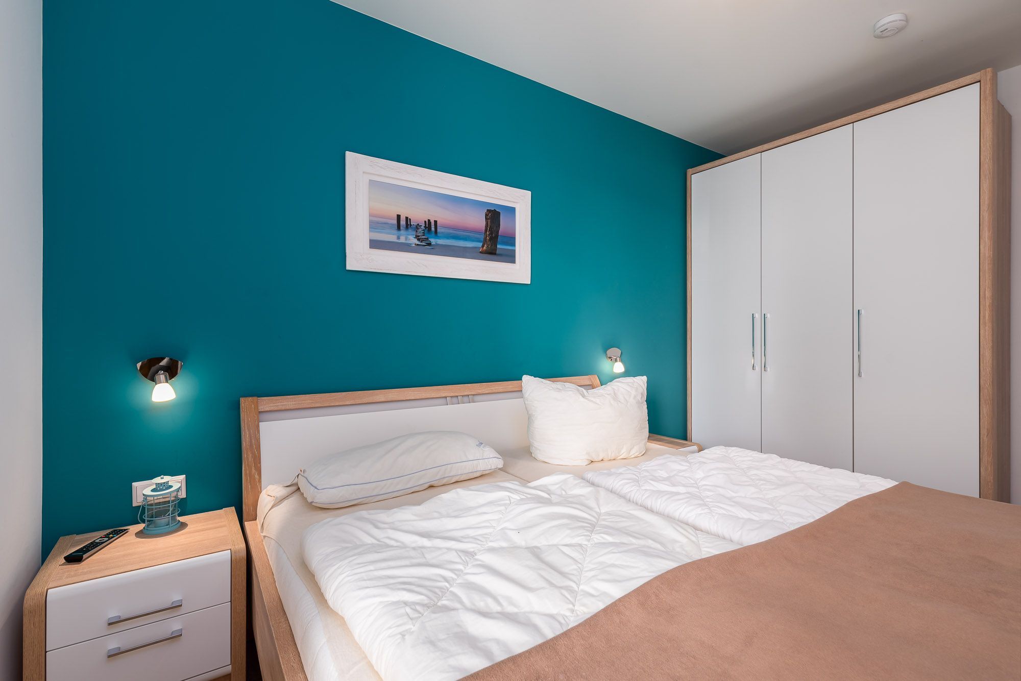 Diese moderne Ferienwohnung ist für max. fünf Erwachsene (ab dritter Person Aufpreis) und ein Kind (bis 14 Jahre) eingerichtet. Es stehen Ihnen zwei Schlafzimmer mit großen, bequemen Doppelbetten zur Verfügung. Beide Boxspringbetten sind mit angenehm weichen Matratzen belegt worden. In beiden Schlafräumen haben Sie jeweils einen Flatscreen-TV, ein CD-Radio und einen geräumigen Kleiderschrank. Auch ein tragbares Ausziehbett (Liege) ist bei Bedarf vorhanden. Im Wohnraum können Sie zusätzlich noch eine L-förmige Schlafcouch nutzen. Zur Unterhaltung gibt es dort einen großen Flatscreen-TV inklusive Blu-ray-Player sowie eine separate Stereoanlage. Die Terrasse können Sie direkt von beiden Schlafzimmern und dem Wohnbereich aus betreten. Sie liegt in Süd-West- Richtung. Natürlich inklusive moderner Gartenmöbel. Im offenen Küchen -und Wohnbereich finden Sie einen ausziehbaren Esstisch mit sechs Rattanstühlen. Die Küche ist, neben der Standardausstattung, mit Mikrowelle, Backofen, Cerankochfeld, Geschirrspüler und Kühlschrank mit eingebautem Gefrierfach ausgestattet. Der Sanitärbereich verfügt über zwei Bäder. Beide ausgestattet mit bodengleichen Duschen, Waschtischen und Spiegel. In einem der Bäder finden Sie eine Sauna. Diese wird über einen Münzautomaten betrieben. An der Wohnung befindet sich ein kostenfreier Pkw-Stellplatz, direkt neben der Terrasse. Für geliehene oder mitgebrachte Fahrräder wurde ein abschließbarer Fahrradraum in der Tiefgarage eingerichtet. Und noch einige Hinweise: Es steht ein Kinderhochstuhl kostenlos bereit. Wäschesets und ein Kinderreisebett können kostenpflichtig dazugebucht werden. Waschmaschine und Trockner sind im Erdgeschoss, Waschraum, des Objekts vorhanden. (Münzautomaten mit 50 Cent Münzen Einwurf). Die Wohnung ist eine Nichtraucherwohnung. Und es sind hier keine Haustiere gestattet. Die kostenfreie WLAN-Verbindung in dieser Unterkunft ist ausschließlich für die Verwendung von Social- Mediakanälen sowie den Austausch von Bildern mit Familie und Freunden gedacht. Eine Nutzung zum Streamen, z.B. von Filmen, ist nicht vorgesehen. Ab der dritten Person und drittem Lebensjahr, wird ein Aufpreis in Höhe von 10,00 Euro/ ÜN pro Person berechnet. Sichern Sie sich den Anspruch auf einen der begehrten Strandkörbe (Anfang Mai - Ende August) und buchen Sie jetzt zu besonderen Konditionen (12,00 Euro pro Tag oder 75,00 Euro pro Woche.)