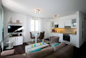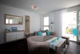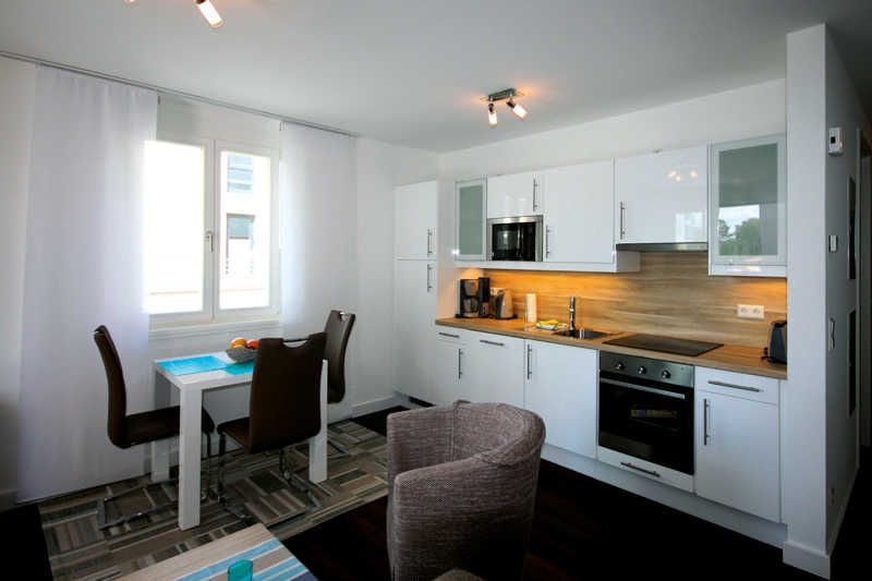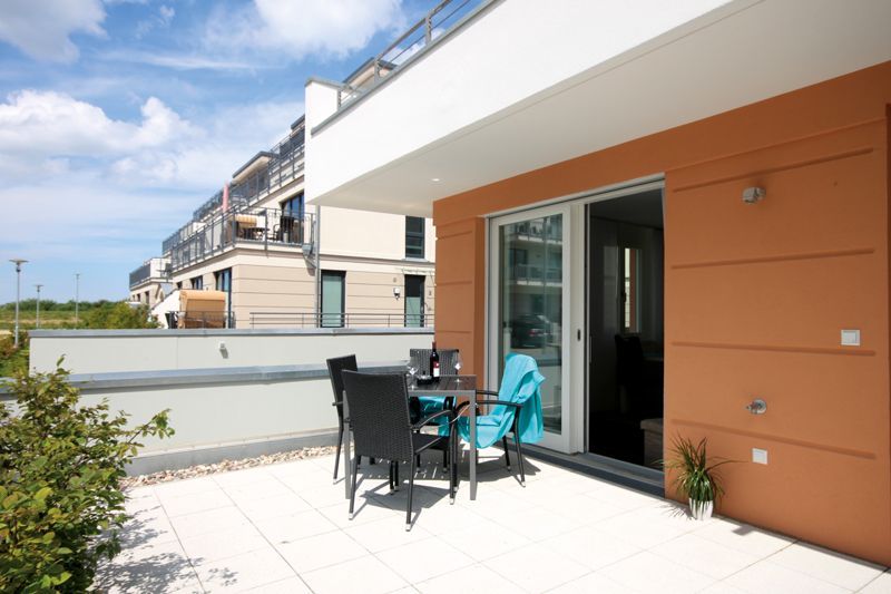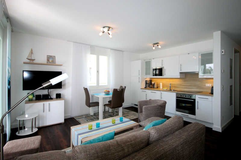 Die modern eingerichtete Zwei-Raumwohnung ist für max. zwei Erwachsene und ein Kind (bis 12 Jahre) ausgestattet. Der zur Küche hin offene Wohnbereich empfängt Sie mit einer großen Schlafcouch. Von dieser aus können Sie Sie sich News, Filme oder andere Sendungen im TV- Gerät anschauen. Oder Sie nutzen den vorhandenen DVD- Player und die Stereoanlage für weitere Unterhaltung. Zum Essen oder einem großen Spieleabend steht ein Esstisch mit vier Swing-Stühlen zur Verfügung. Die Küche selbst bietet, außer den Standardgeräten, ein Cerankochfeld (4 Platten), einen Backofen, eine Mikrowelle und einen Kühlschrank, inklusive Gefrierfach. So lässt sich auch mal das Lieblingsessen im Urlaub zubereiten. Für den erholsamen Urlaubsschlaf steht im Schlafraum ein Boxspringbett (durchgehende Matratze) zur Verfügung. Auch ein weiteres TV- Gerät ist hier vorhanden. Und für genügend Stauraum und knitterfreie Wäsche, sorgt der geräumige Kleiderschrank. Die gewohnte Dusche am Morgen können Sie in der Dusche mit fußbodengleichem Einstieg ausgiebig erledigen. Für die Pflege nach der Dusche steht im Duschbad ein moderner Waschtisch mit breitem Spiegel zur Verfügung. Zum Tagesabschluss geht es dann in die Sauna. Diese befindet sich gleich neben dem Schlafraum. Da die Sauna mit einem Münzautomaten betrieben wird, halten Sie bitte 1,00 EURO Münzen bereit. Für die Entspannung nach dem Strandtag sorgt eine Terrasse. Diese ist nach Süd-West ausgerichtet. Ein Terrassentisch mit vier entsprechenden Stühlen bietet genug Platz für eine Flasche Wein und etwas zum Naschen. Auf die Terrasse selbst gelangt man aus dem Wohnraum. Die Wohnung ist eine Nichtraucherwohnung. Haustiere sind nicht gestattet. Die kostenfreie WLAN-Verbindung in dieser Unterkunft ist ausschließlich für die Verwendung von Social Mediakanälen sowie den Austausch von Bildern mit Familie und Freunden gedacht. Eine Nutzung zum Streamen, z.B. von Filmen, ist nicht vorgesehen. Wäscheset, Kinderreisebett und Kinderhochstuhl können kostenpflichtig zugebucht werden. Eine Waschmaschine und Trockner stehen im Waschraum, der sich im Erdgeschoss befindet. Beide Geräte sind kostenpflichtig. Hier benötigen Sie 50 Cent Münzen. Zur Ferienwohnung gehört ein kostenfreier Tiefgaragenstellplatz. Bitte beachten Sie die Durchfahrtshöhe von max. 1,90 m. Überschreitet Ihr Fahrzeug die maximale Durchfahrtshöhe, können Sie auf einen kostenpflichtigen Parkplatz in unmittelbarer Nähe ausweichen. Außerdem befindet sich in der Tiefgarage ein abschließbarer Fahrradabstellraum. Und noch einen Hinweis: Sichern Sie sich zusätzlich den Anspruch auf einen der begehrten Strandkörbe nur ein paar Meter entfernt von den rauschenden Wellen der Ostsee (Anfang Mai - Ende August) und buchen Sie jetzt zu besonderen Konditionen (12,00 Euro pro Tag oder 75,00 Euro pro Woche.)