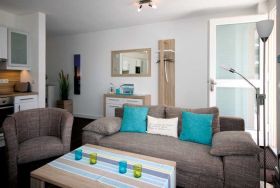 Strandnahe Zwei-Raumwohnung für max. drei Personen (zwei Erwachsene, ein Kind bis 12 Jahre) mit eigener Sauna und Terrasse im EG.