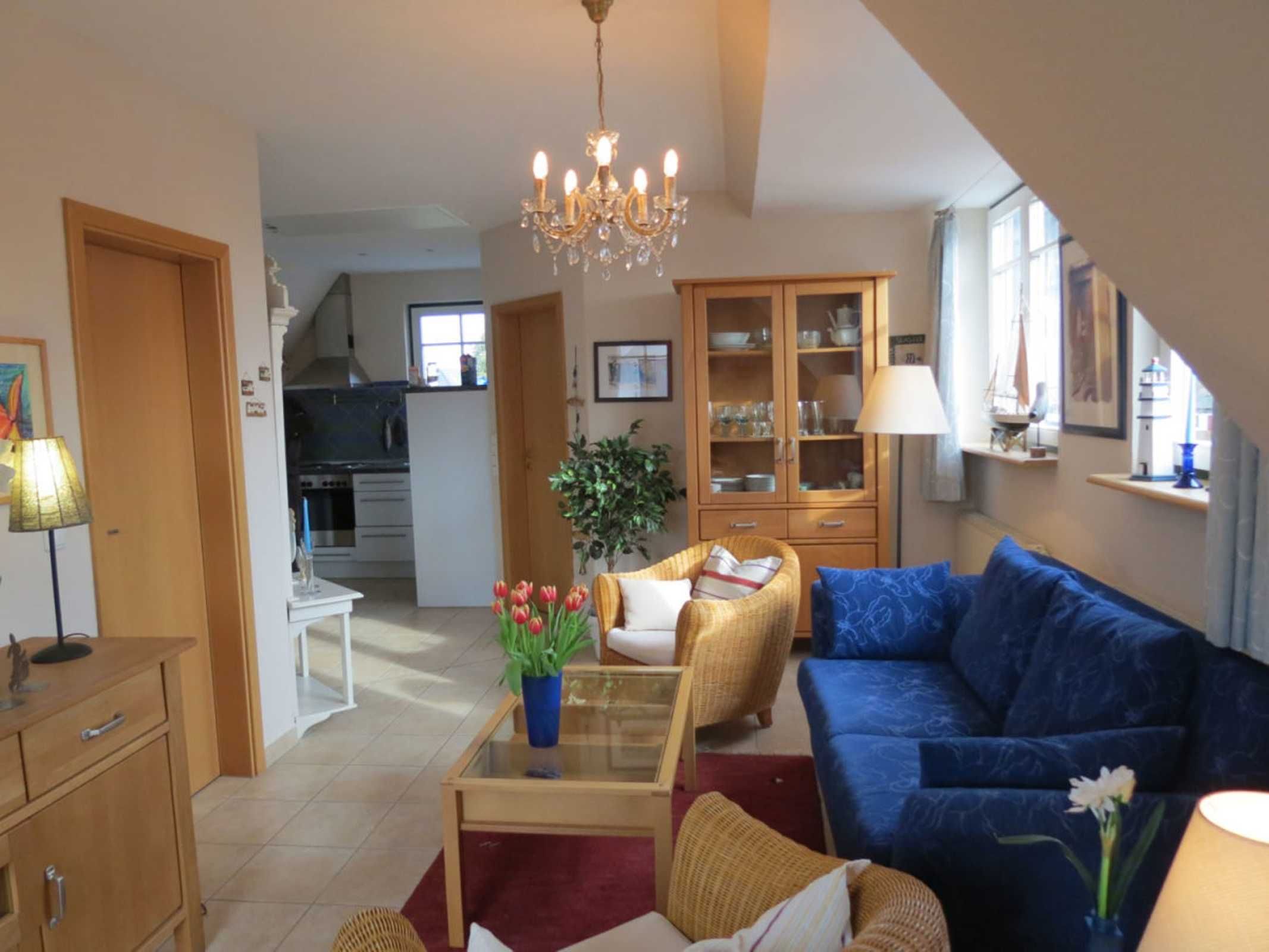 Für unsere kleinen Gäste halten wir kostenfrei ein Kinderbett und einen Hochstuhl bereit. Die Wohnung liegt nach Südwesten und hat eine Innenloggia mit Balkonmöbeln. Die Wohnung ist gefliest, im Schlafzimmer liegt Teppichboden. Zur Ortsmitte und zum Bäcker sind es ca. 500m. Ein großer Handwagen für Ihr Gepäck und Einkäufe gehört zur Wohnung. Die Wohnung ist eine Nichtraucherwohnung.