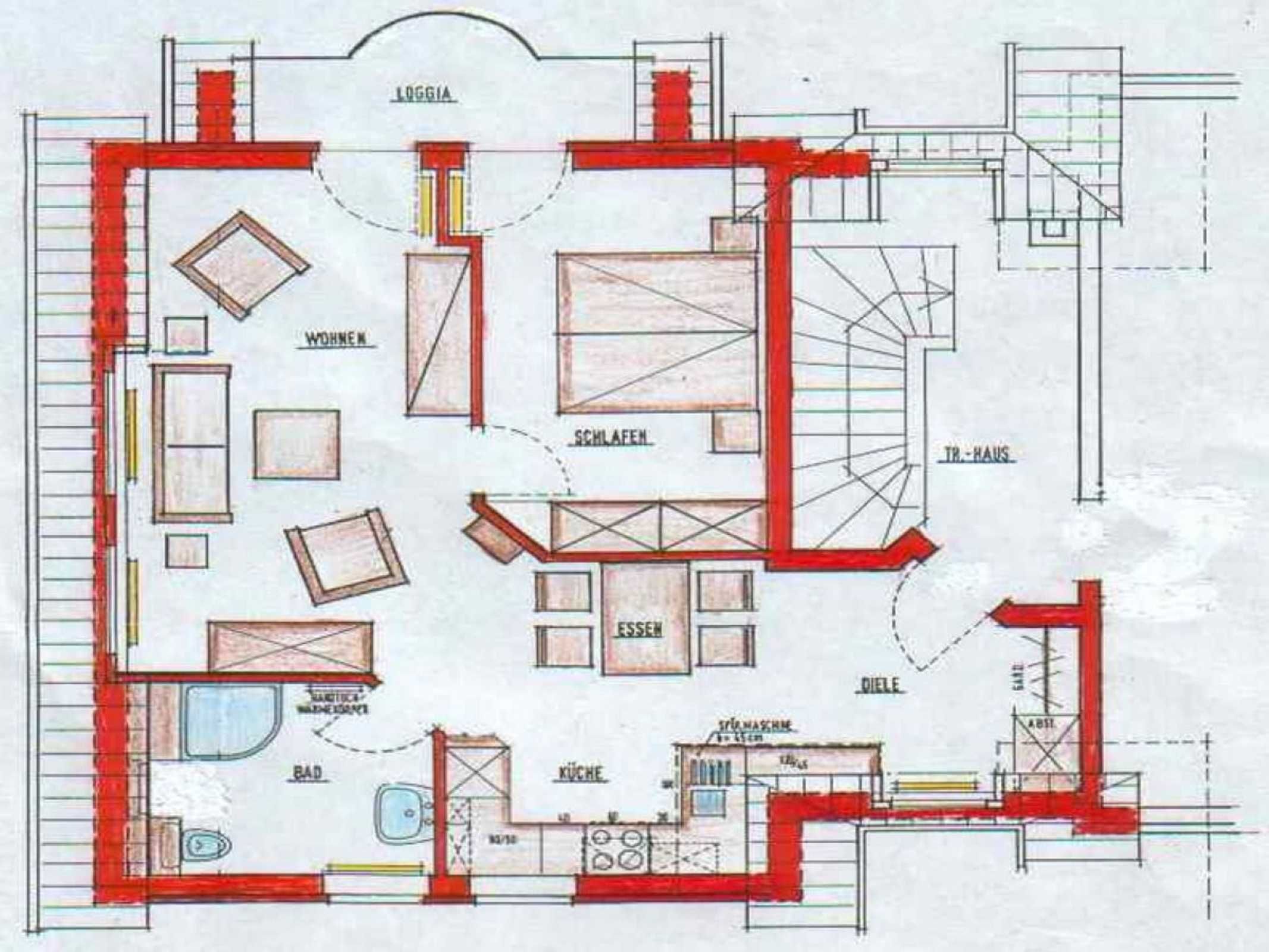 Die Wohnung liegt im 1. Obergeschoss, und ist ca. 50 qm groß. Es steht Ihnen ein Schlafzimmer, ein Bad mit Dusche und WC sowie ein großzügiger Wohnraum mit Essplatz zur Verfügung.