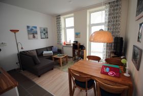 Die komfortable Ferienwohnung „Ostseeblick“ mit eigenem Eingangsbereich ist 47m² groß, bietet Platz für 2 Personen und befindet sich in der ersten Etage des Appartementhauses.