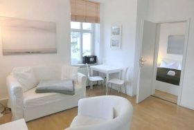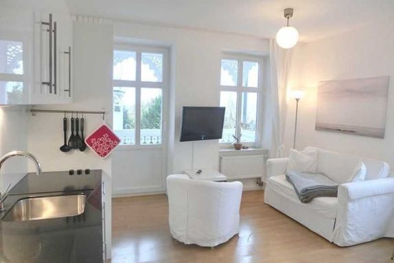 Das 2-Raum-Appartement ist ca. 30 qm groß und verfügt über einent Balkon mit teilweise Blick über die Dächer der Altstadt auf die Ostsee.