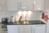 * offene Küche mit einer komplett ausgestatteten Küchenzeile