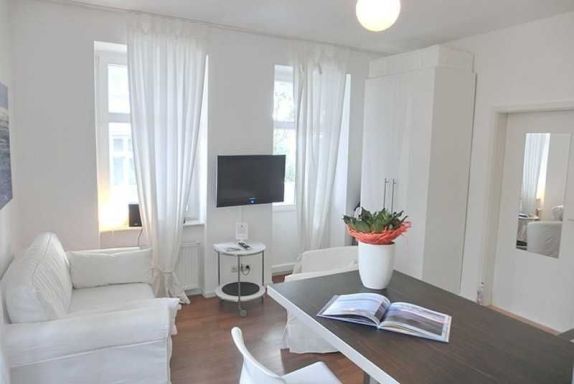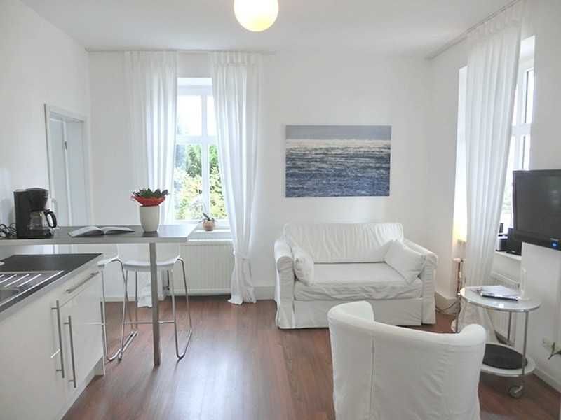 Das 2-Raum-Appartement ist ca. 30 qm groß und verfügt über einent Balkon mit teilweise Blick über die Dächer der Altstadt auf die Ostsee.