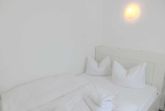 * ein separates Schlafzimmer mit Doppelbett und Kleiderschrank