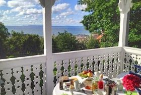 Die Villa, liebevoll restauriert und eingerichtet, beherbergt sechs gemütliche Appartements (23–60 m²), alle mit eigenem Balkon und traumhaftem Blick auf die Ostsee über die Dächer der Altstadt hinweg.