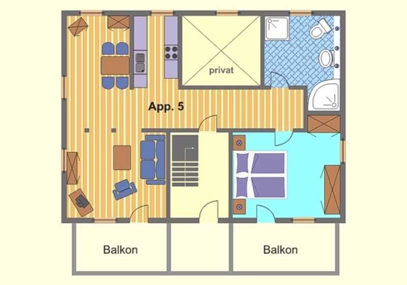 Das Appartement für 2-6 Personen ist mit einem großzügigen Wohnzimmer mit Aufbettung und Esszimmer, Sitzecke, Flat-TV, Stereoanlage ein Südbalkon mit herrlichem Seeblick ausgestattet.