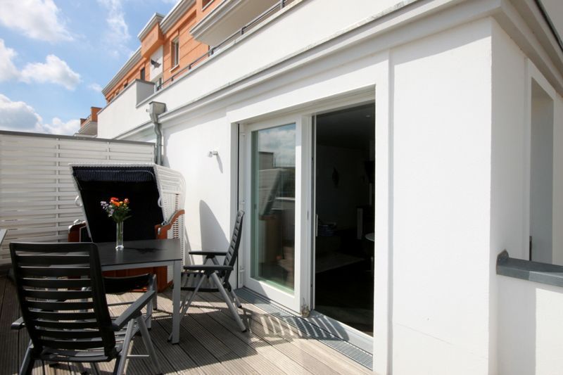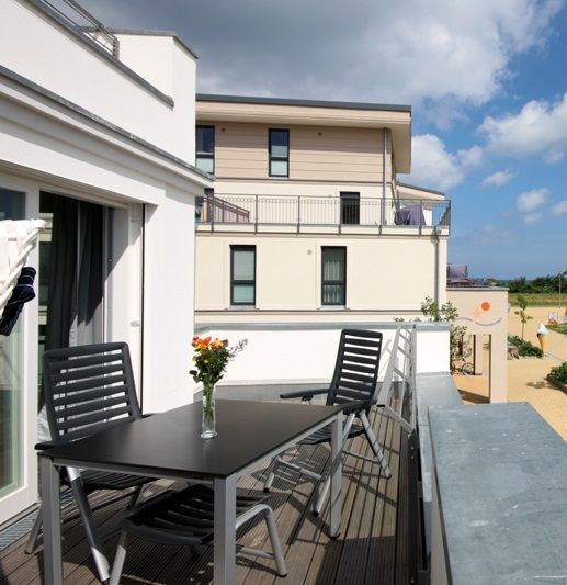 Strandnahe Zwei-Raumwohnung für max. zwei Personen mit Strandkorb, Balkon im 1. OG.