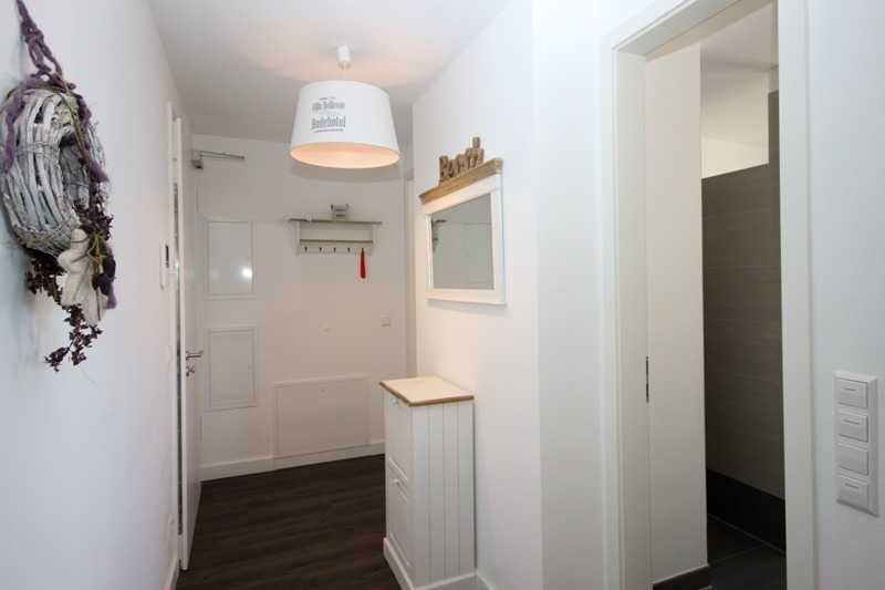 Diese hochwertige Ferienwohnung besteht aus einem Wohn- und Essbereich, einem Schlafraum sowie Balkon. Im Wohnbereich finden Sie eine bequeme Zweisitzer-Couch und einen Flatscreen-TV. Das Schlafzimmer bietet Ihnen ein großes Boxspringbett mit einer durchgehenden und angenehm weichen Matratze. Für weitere Bequemlichkeit sorgt hier ein begehbarer Kleiderschrank. Die offene Küche- mit rundem Esstisch und zwei bequemen Stühlen, lädt natürlich zum Essen oder zu einem Spieleabend ein. Die Küchenzeile überzeugt mit Geschirrspüler, Mikrowelle, Backofen, Cerankochfeld und Kühlschrank, inklusive Gefrierfach. Das großzügige Duschbad verfügt über eine bodengleiche Dusche, einen Handtuchwärmer, einen kompakten Waschtisch und einen Fön. Im Strandkorb auf dem eigenen Balkon in Nordausrichtung können Sie wunderbar relaxen. Für Ihr Fahrzeug steht ein kostenfreier Tiefgaragenplatz mit Aufzug bis zur Wohnungsetage bereit. Bitte beachten Sie die Durchfahrtshöhe von max. 1,90 m. Bei Überschreitung der maximalen Durchfahrtshöhe, besteht die Möglichkeit auf einen kostenpflichtigen Parkplatz in unmittelbarer Nähe auszuweichen. Ihre Fahrräder können im abschließbarer Fahrradraum der Tiefgarage im Gebäude sicher aufbewahrt werden. Noch einige Hinweise: Die Wohnung selbst ist eine Nichtraucherwohnung. Haustiere sind hier generell nicht erlaubt. Das kostenfreie WLAN in der Unterkunft ist ausschließlich für die Verwendung von Social Media und den Austausch von Bildern mit Familie und Freunden gedacht. Die Nutzung zum Streamen von Filmen ist nicht vorgesehen. Wäscheset, Kinderreisebett und Kinderhochstuhl können kostenpflichtig zugebucht werden. Eine Waschmaschine und ein Trockner stehen im Waschraum im Erdgeschoss des Objekts gegen Gebühr zur Verfügung (50 Cent- Münzen). Sichern Sie sich zusätzlich den Anspruch auf einen der begehrten Strandkörbe nur ein paar Meter entfernt von den rauschenden Wellen der Ostsee (Anfang Mai - Ende August) und buchen Sie jetzt zu besonderen Konditionen (12,00 Euro pro Tag oder 75,00 Euro pro Woche.)