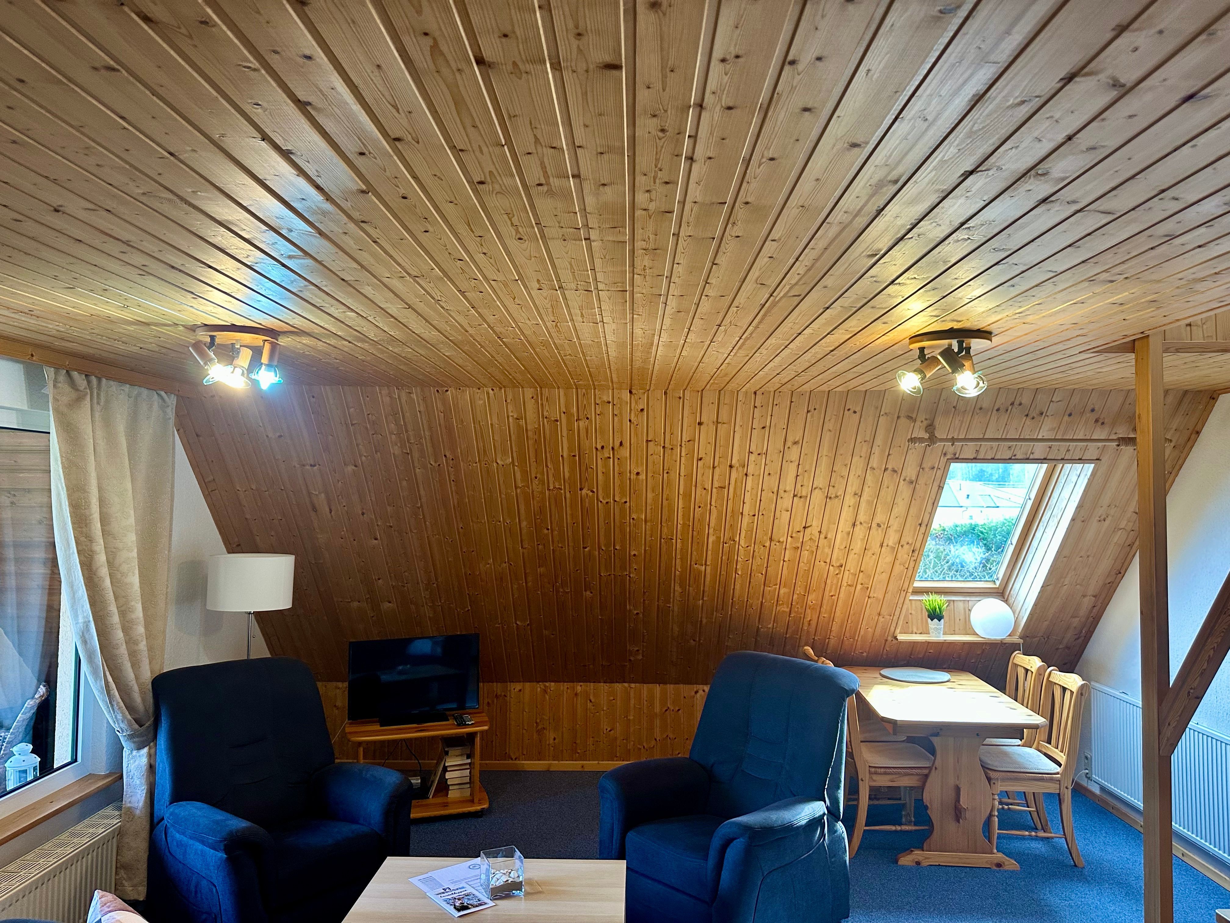 * Wohnzimmer mit offener Küche, gemütliche Sitzecke, SAT-V