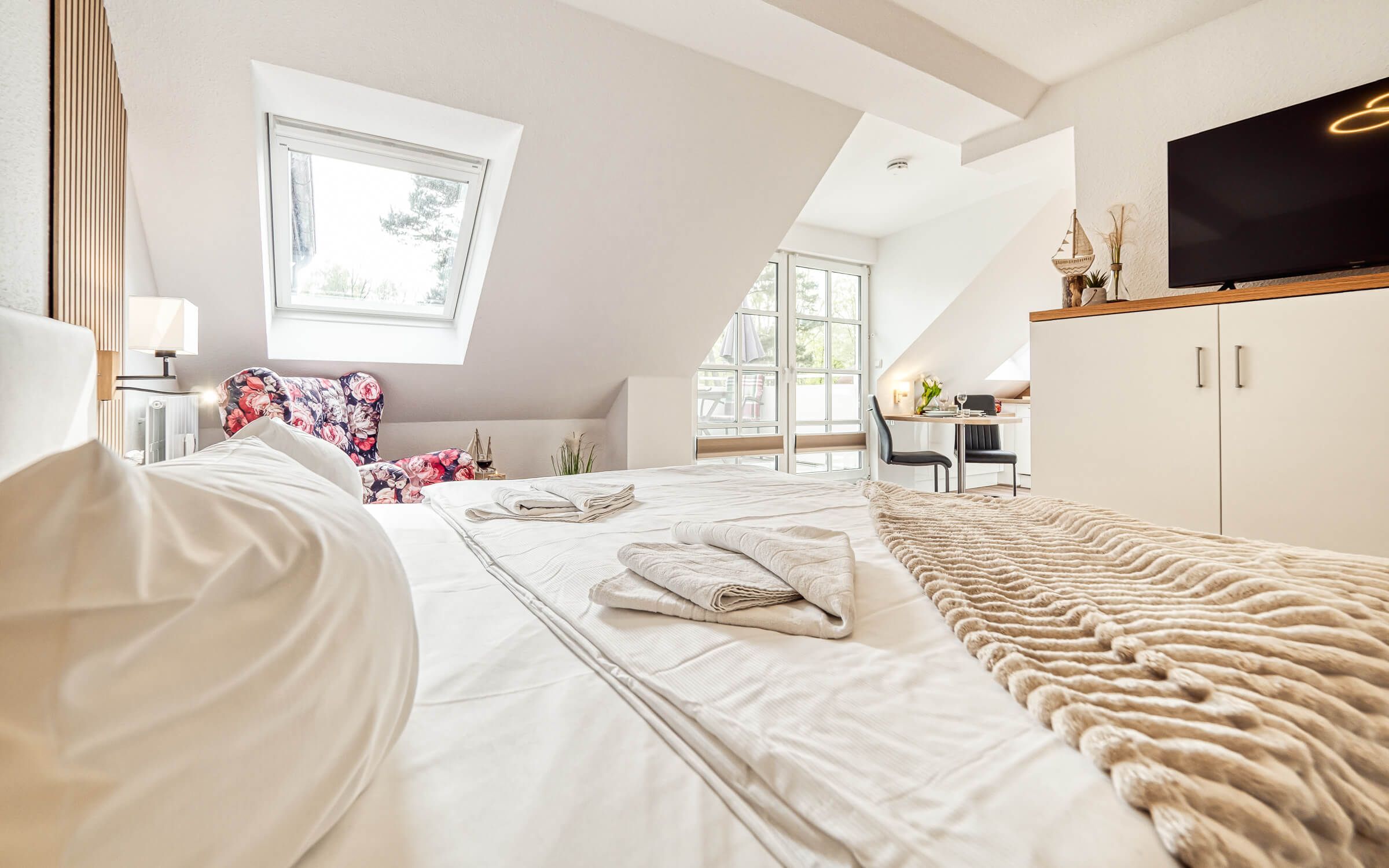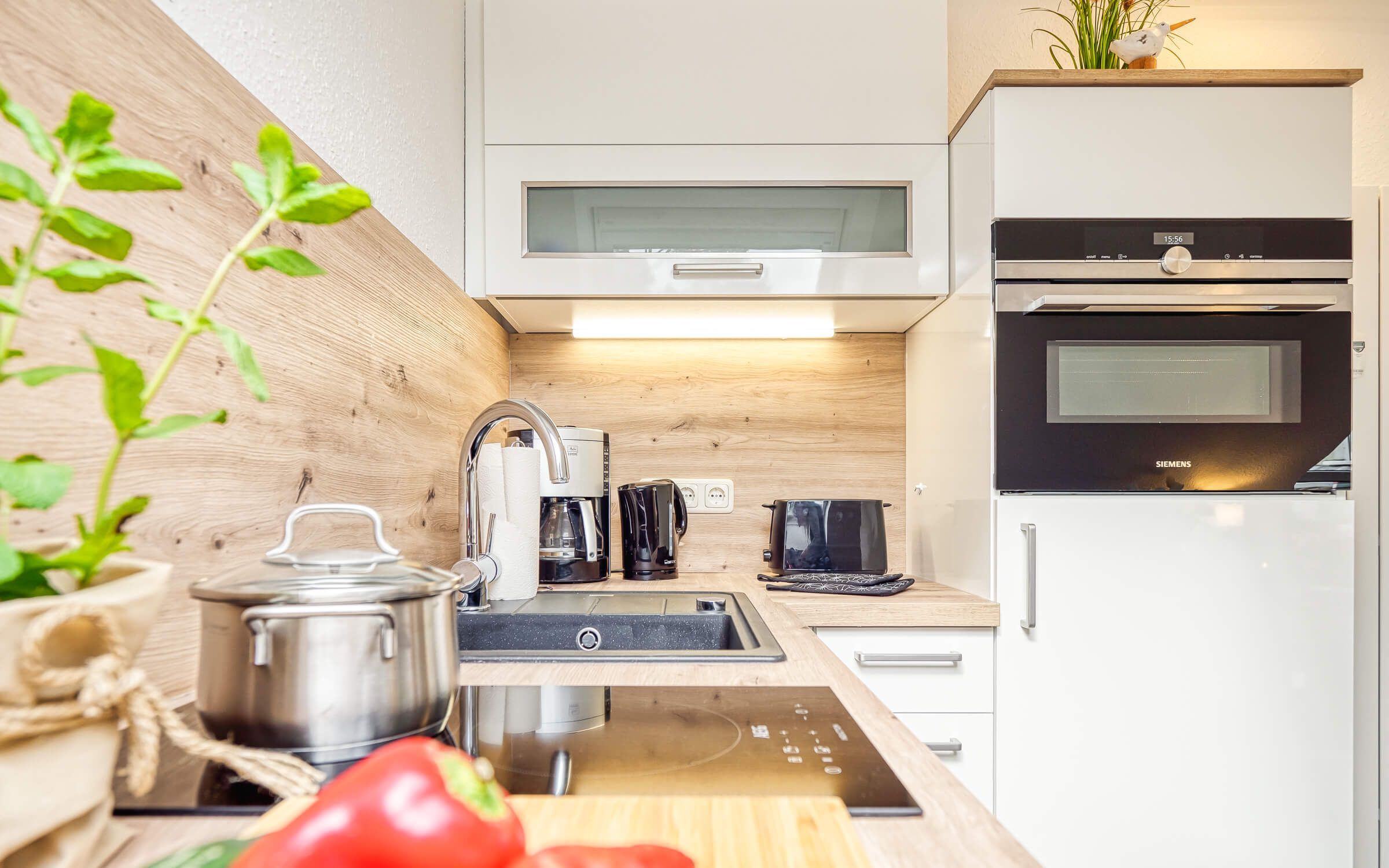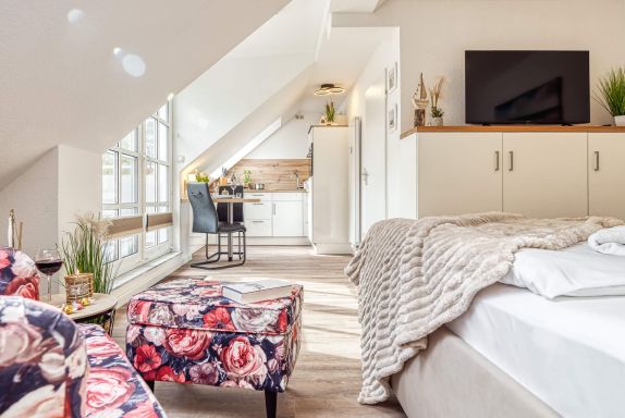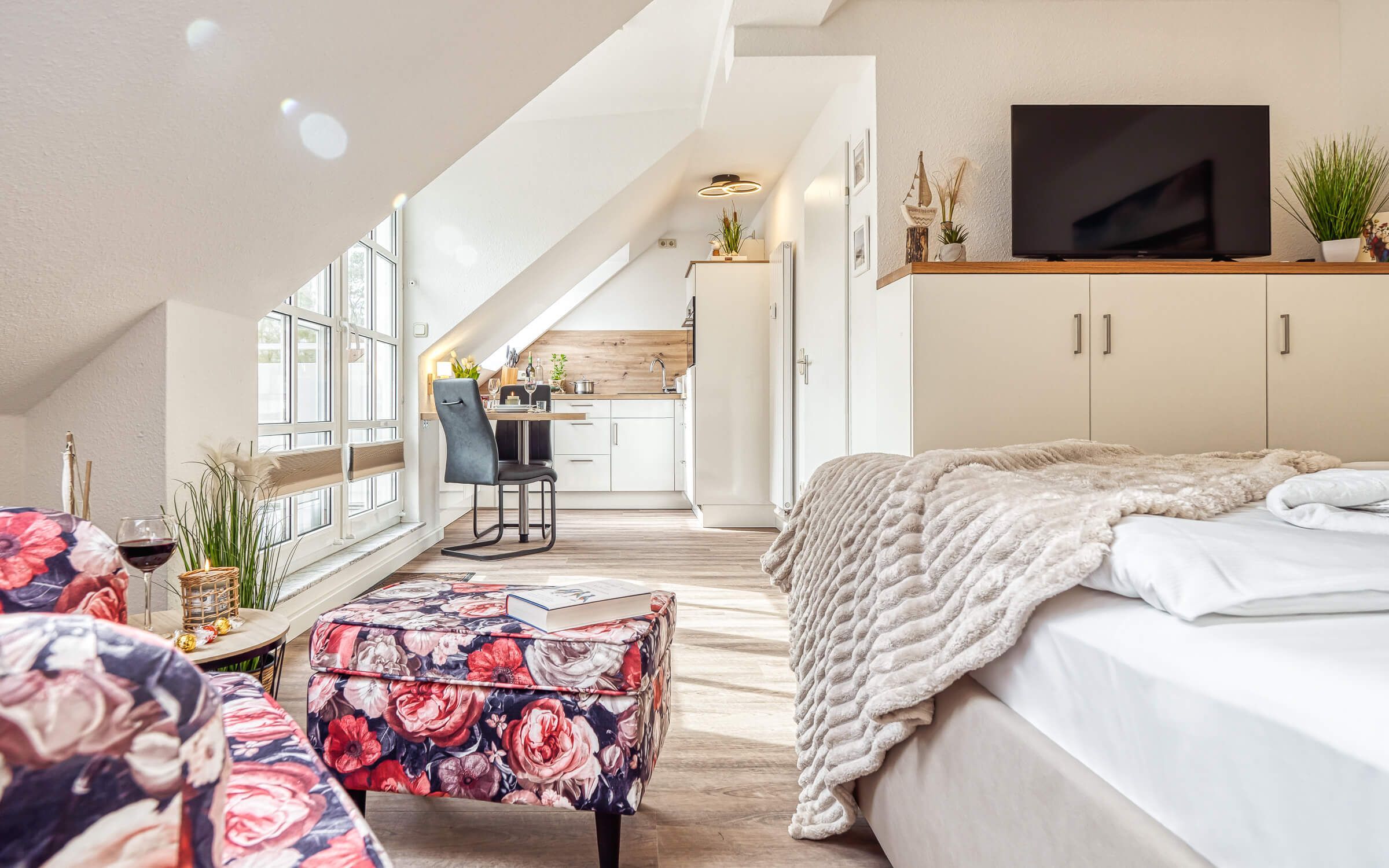 Die modern eingerichteten 1-Raum-Appartements dieser Kategorie sind für 2 Personen geeignet und ca. 30 qm groß. Sie verfügen über einen Wohn-/Schlafraum mit Doppelbett für 2 Personen. Alle unsere Wohnungen sind Nichtraucher-Wohnungen. Bei einigen Appartements können Sie Ihr Haustier mitbringen (s. Zimmerdaten). Ausstattung: Sat-TV, Radio, Küchenzeile, Dusche/WC, möblierte Terrasse oder Balkon. Bettwäsche und Handtücher als Erstausstattung.