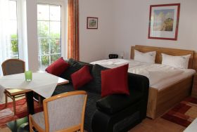 Die modern eingerichteten 1-Raum-Appartements dieser Kategorie sind für 2 Personen geeignet und ca. 30 qm groß. Sie verfügen über einen Wohn-/Schlafraum mit Doppelbett für 2 Personen. Alle unsere Wohnungen sind Nichtraucher-Wohnungen. Bei einigen Appartements können Sie Ihr Haustier mitbringen (s. Zimmerdaten). Ausstattung: Sat-TV, Radio, Küchenzeile, Dusche/WC, möblierte Terrasse oder Balkon. Bettwäsche und Handtücher als Erstausstattung.