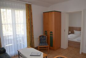 Die modern eingerichteten 2-Raum-Appartements dieser Kategorie sind für maximal 3 Personen geeignet und ca. 32 qm groß. Sie verfügen über einen Wohn-/Schlafraum mit Schlafcouch für 1 Person und ein separates Schlafzimmer (Doppelbett oder 2 Einzelbetten). Alle unsere Wohnungen sind Nichtraucher-Wohnungen. Bei einigen Appartements können Sie Ihr Haustier mitbringen (s. Zimmerdaten). Ausstattung: Sat-TV, Radio und teilweise Telefon, Küchenzeile, Dusche/WC, möblierte Terrasse oder Balkon. Bettwäsche und Handtücher als Erstausstattung.