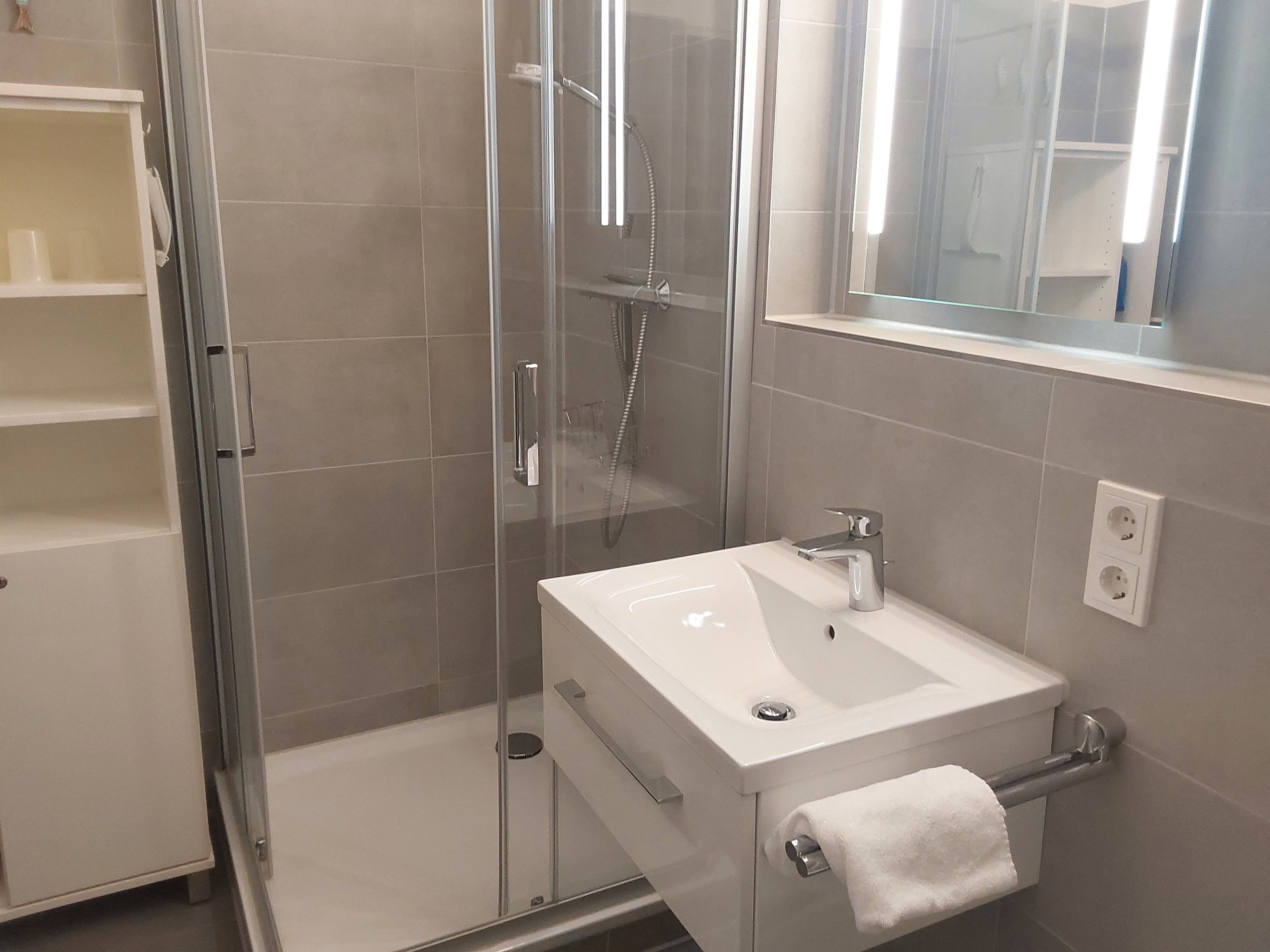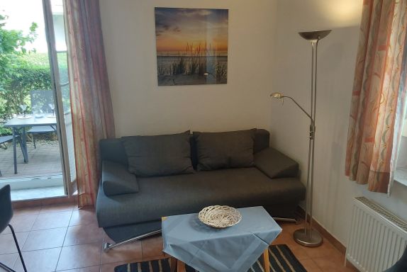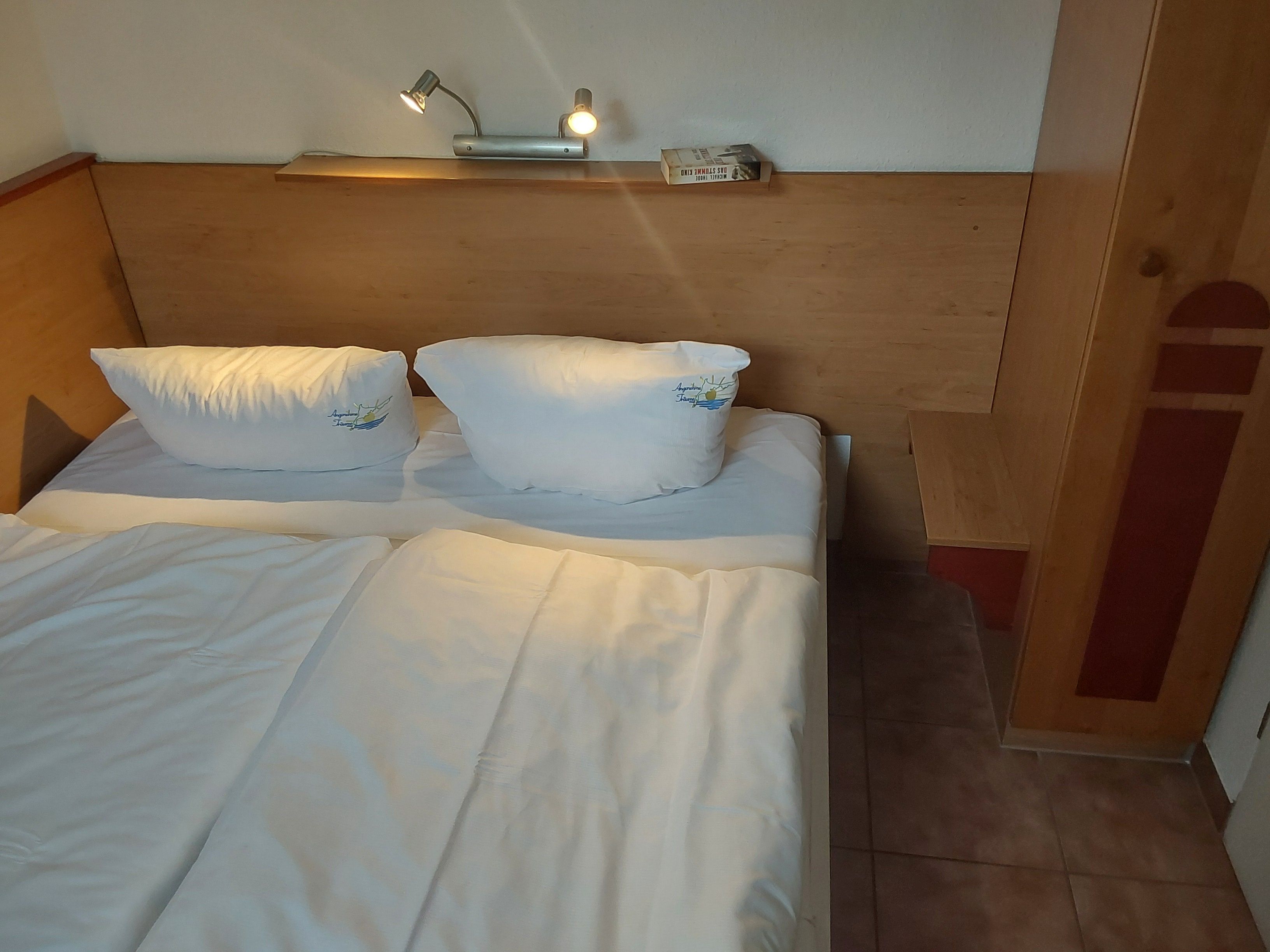 Die modern eingerichteten 2-Raum-Appartements dieser Kategorie sind für maximal 3 Personen geeignet und ca. 32 qm groß. Sie verfügen über einen Wohn-/Schlafraum mit Schlafcouch für 1 Person und ein separates Schlafzimmer (Doppelbett oder 2 Einzelbetten). Alle unsere Wohnungen sind Nichtraucher-Wohnungen. Bei einigen Appartements können Sie Ihr Haustier mitbringen (s. Zimmerdaten). Ausstattung: Sat-TV, Radio und teilweise Telefon, Küchenzeile, Dusche/WC, möblierte Terrasse oder Balkon. Bettwäsche und Handtücher als Erstausstattung.