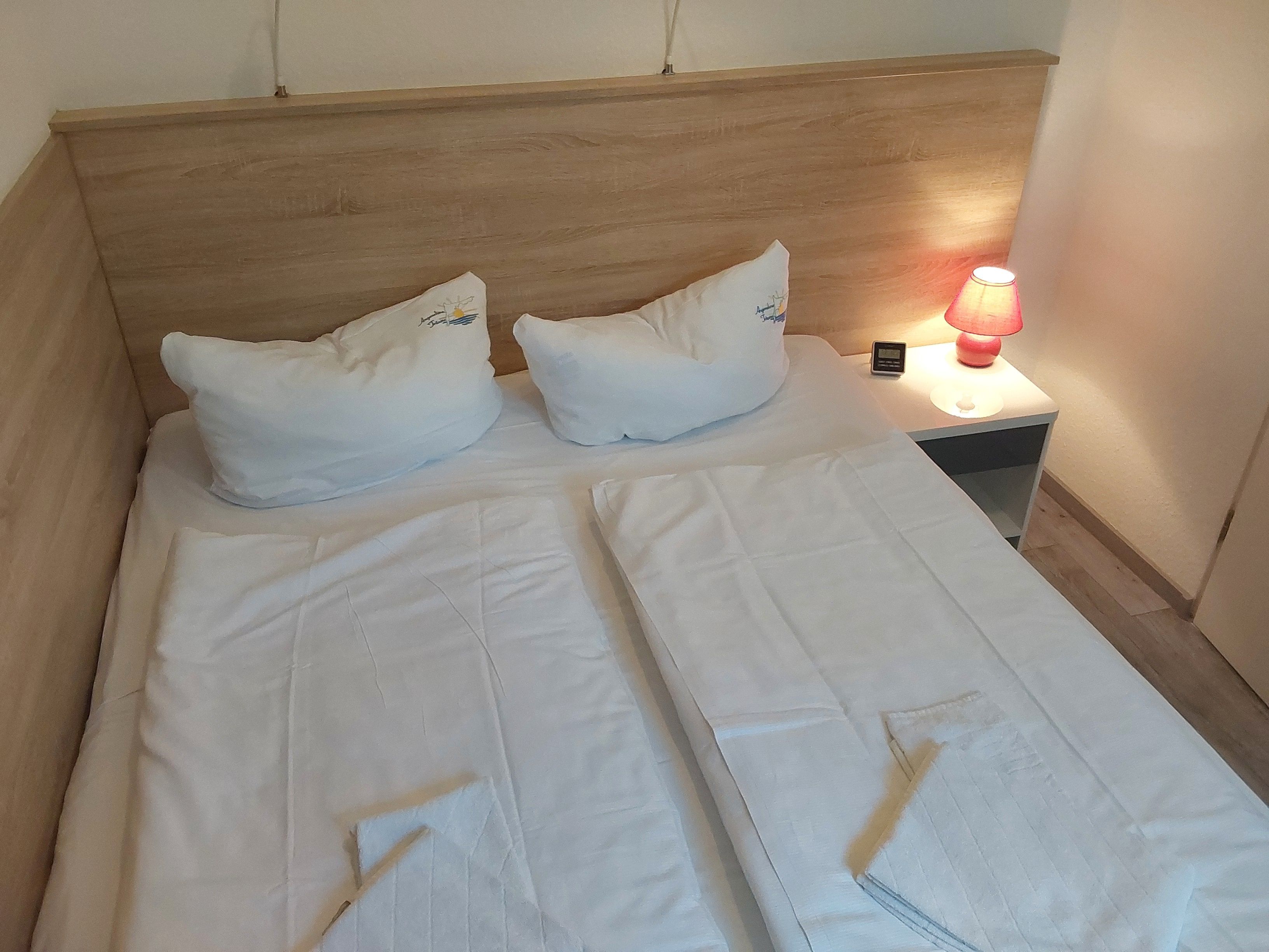 Die modern eingerichteten 2-Raum-Appartements dieser Kategorie sind für maximal 3 Personen geeignet und ca. 32 qm groß. Sie verfügen über einen Wohn-/Schlafraum mit Schlafcouch für 1 Person und ein separates Schlafzimmer (Doppelbett oder 2 Einzelbetten). Alle unsere Wohnungen sind Nichtraucher-Wohnungen. Bei einigen Appartements können Sie Ihr Haustier mitbringen (s. Zimmerdaten). Ausstattung: Sat-TV, Radio und teilweise Telefon, Küchenzeile, Dusche/WC, möblierte Terrasse oder Balkon. Bettwäsche und Handtücher als Erstausstattung.