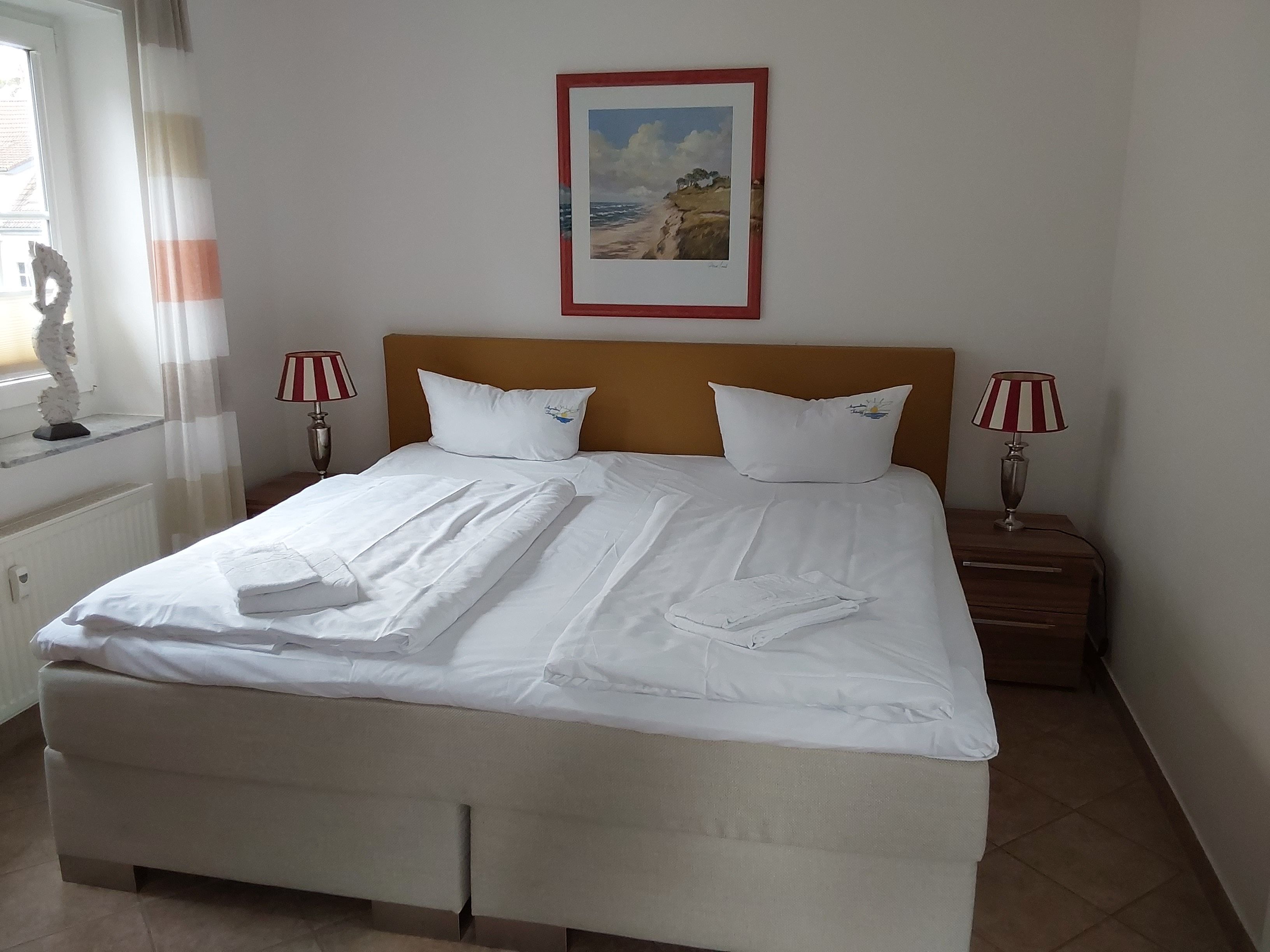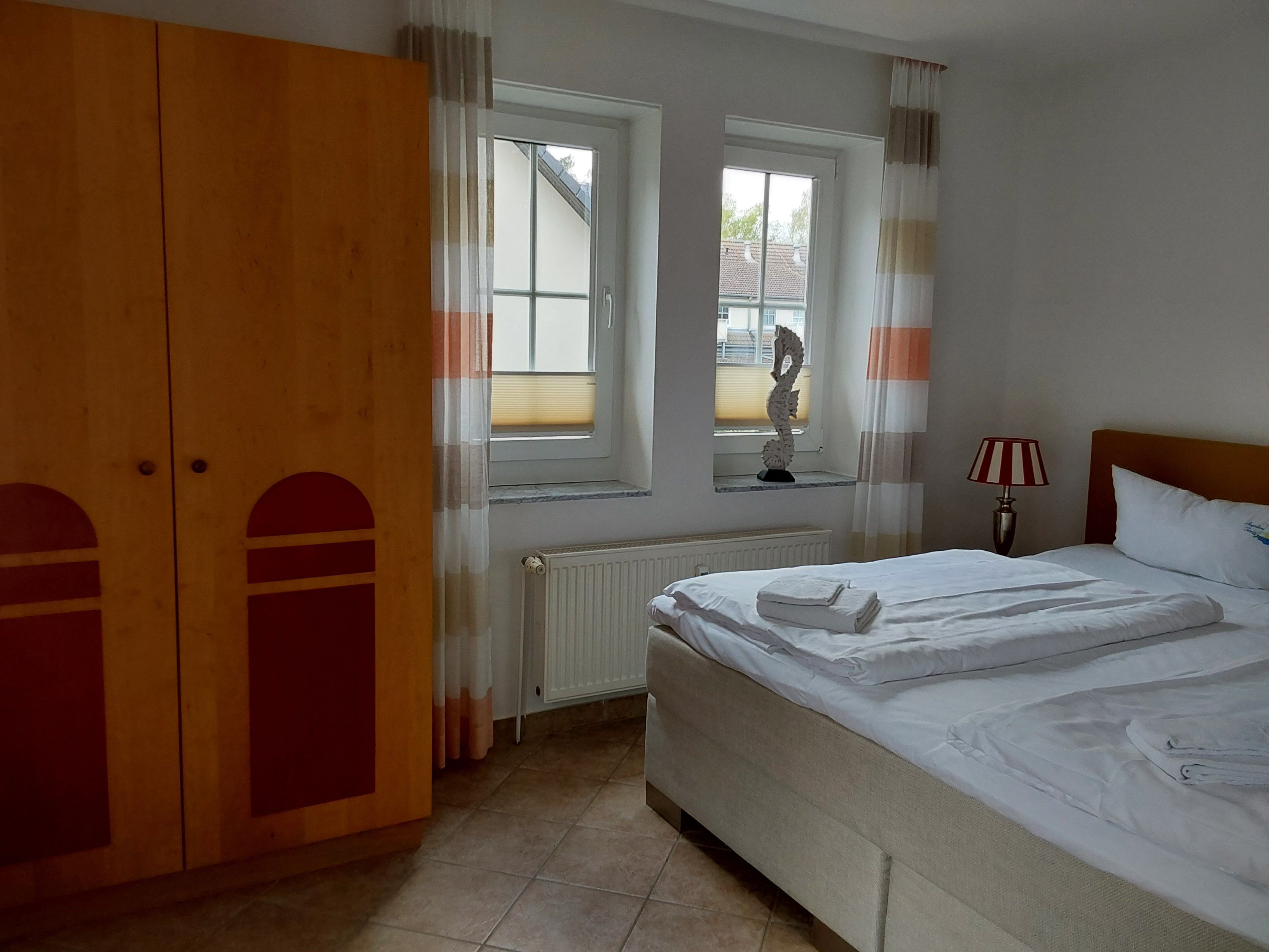 Die modern eingerichteten 2-Raum-Appartements dieser Kategorie sind für maximal 4 Personen geeignet und ca. 38 qm groß. Sie verfügen über einen Wohn-/Schlafraum mit Schlafcouch für 2 Personen und ein separates Schlafzimmer (Doppelbett oder 2 Einzelbetten). Alle unsere Wohnungen sind Nichtraucher-Wohnungen. Bei einigen Appartements können Sie Ihr Haustier mitbringen (s. Zimmerdaten). Ausstattung: Sat-TV, Radio, Küchenzeile, Dusche/WC, möblierte Terrasse oder Balkon. Bettwäsche und Handtücher als Erstausstattung.
