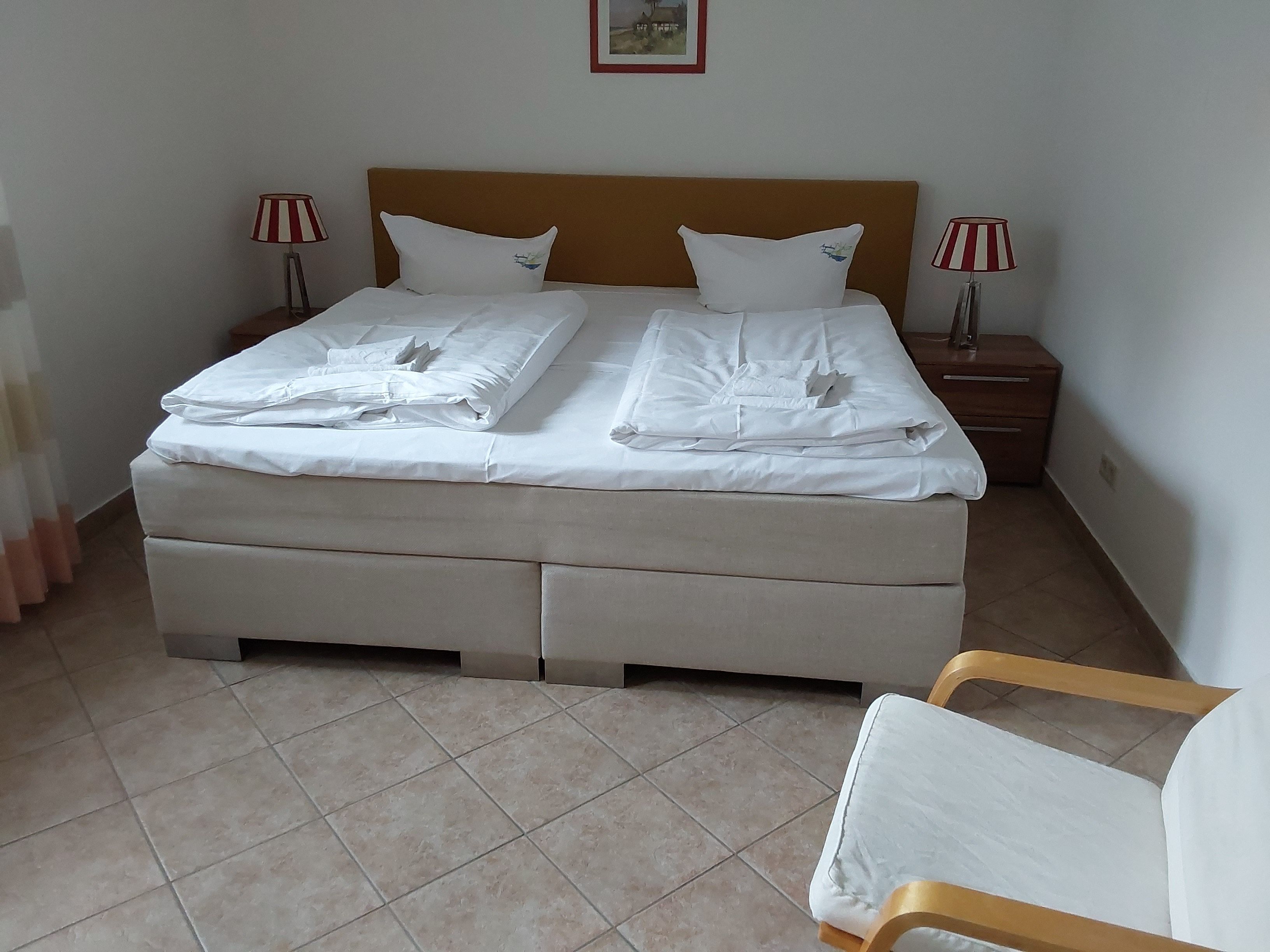 Die modern eingerichteten 2-Raum-Appartements dieser Kategorie sind für maximal 4 Personen geeignet und ca. 38 qm groß. Sie verfügen über einen Wohn-/Schlafraum mit Schlafcouch für 2 Personen und ein separates Schlafzimmer (Doppelbett oder 2 Einzelbetten). Alle unsere Wohnungen sind Nichtraucher-Wohnungen. Bei einigen Appartements können Sie Ihr Haustier mitbringen (s. Zimmerdaten). Ausstattung: Sat-TV, Radio, Küchenzeile, Dusche/WC, möblierte Terrasse oder Balkon. Bettwäsche und Handtücher als Erstausstattung.