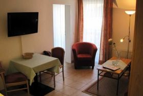 Die modern eingerichteten 2-Raum-Appartements dieser Kategorie sind für maximal 4 Personen geeignet und ca. 38 qm groß. Sie verfügen über einen Wohn-/Schlafraum mit Schlafcouch für 2 Personen und ein separates Schlafzimmer (Doppelbett oder 2 Einzelbetten). Alle unsere Wohnungen sind Nichtraucher-Wohnungen. Bei einigen Appartements können Sie Ihr Haustier mitbringen (s. Zimmerdaten). Ausstattung: Sat-TV, Radio, Küchenzeile, Dusche/WC, möblierte Terrasse oder Balkon. Bettwäsche und Handtücher als Erstausstattung.