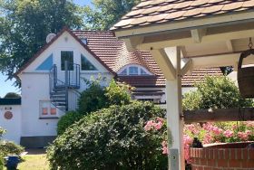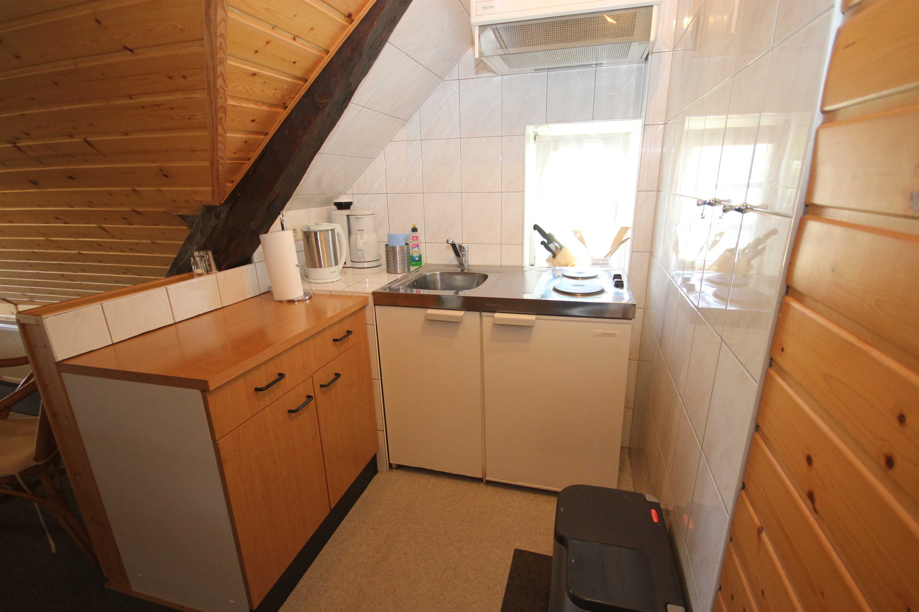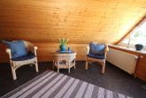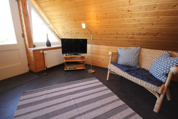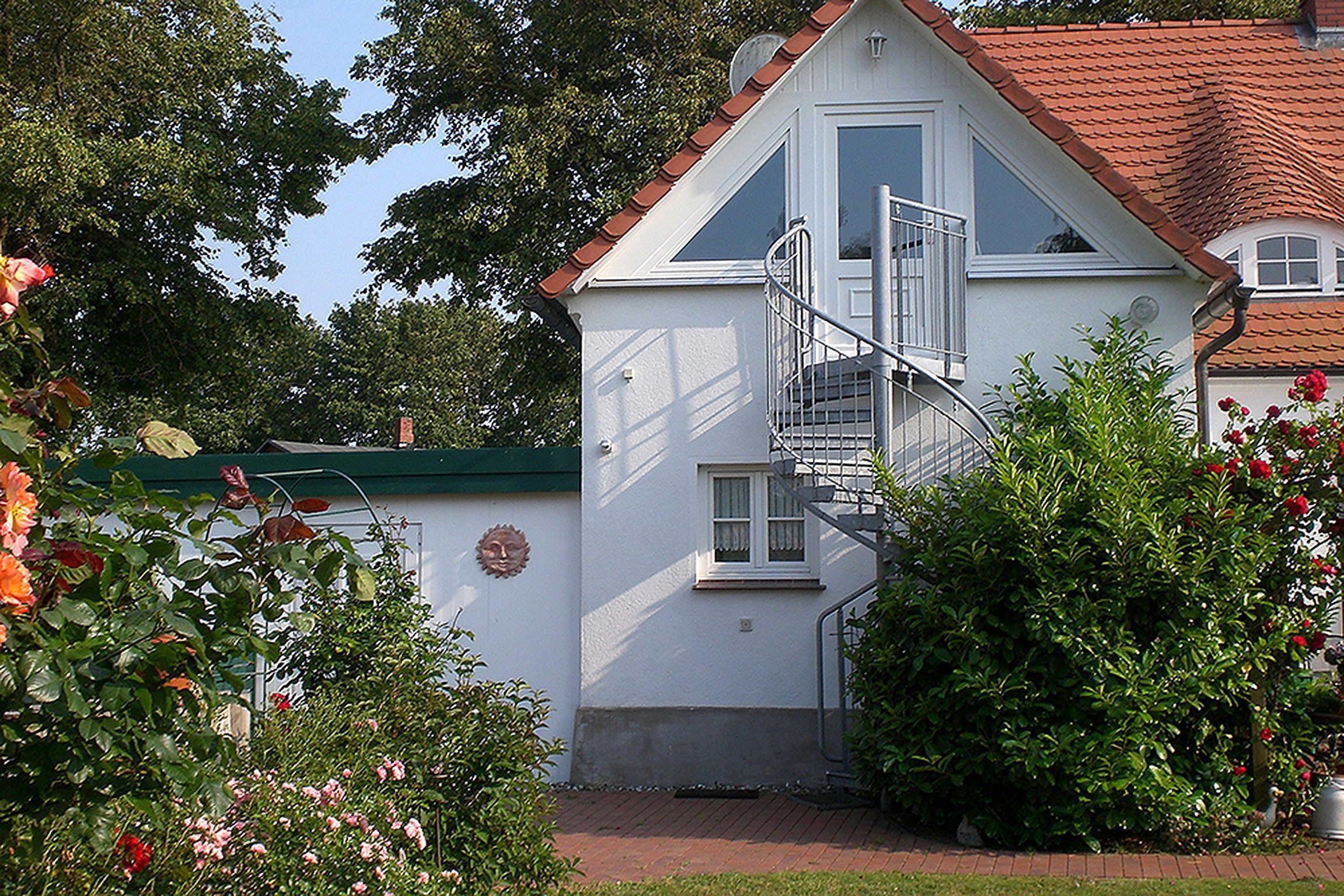 die Ferienwohnung im Obergeschoss mit separatem Eingang, in ruhiger Lage am Ortsrand ist über eine Aussentreppe erreichbar. Der Sitzplatz im Garten auf der separaten Terrasse lädt Sie zum verweilen und entspannen ein. An das offene Wohnzimmer mit kostenlosen WLAN- Gästezugang und SAT-TV, schließt sich die kleine Küchenzeile mit Essplatz an. Die Ferienwohnung verfügt über 2 - 1.Schlafzimmer mit Doppelbett 1,80 x 2,00 m (getrennte Matratzen) und das 2. Schlafzimmer ist über eine Raumspartreppe zur Schlafgalerie mit 2 Einzelbetten erreichbar 0,90 x 2,00 m. Die Wohnung wird inclusive Bettwäsche übergeben, Handtücher können in der Zimmervermittlung für 7,00 € pro Person (1 Badetuch, 1 Handtuch) dazugebucht werden. Das Rauchen in der Wohnung ist nicht gestattet. In der abgeschlossenen Garage ist Platz für 1 PKW. Der Strand ist in ca. 15 Gehminuten zu erreichen.