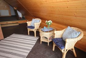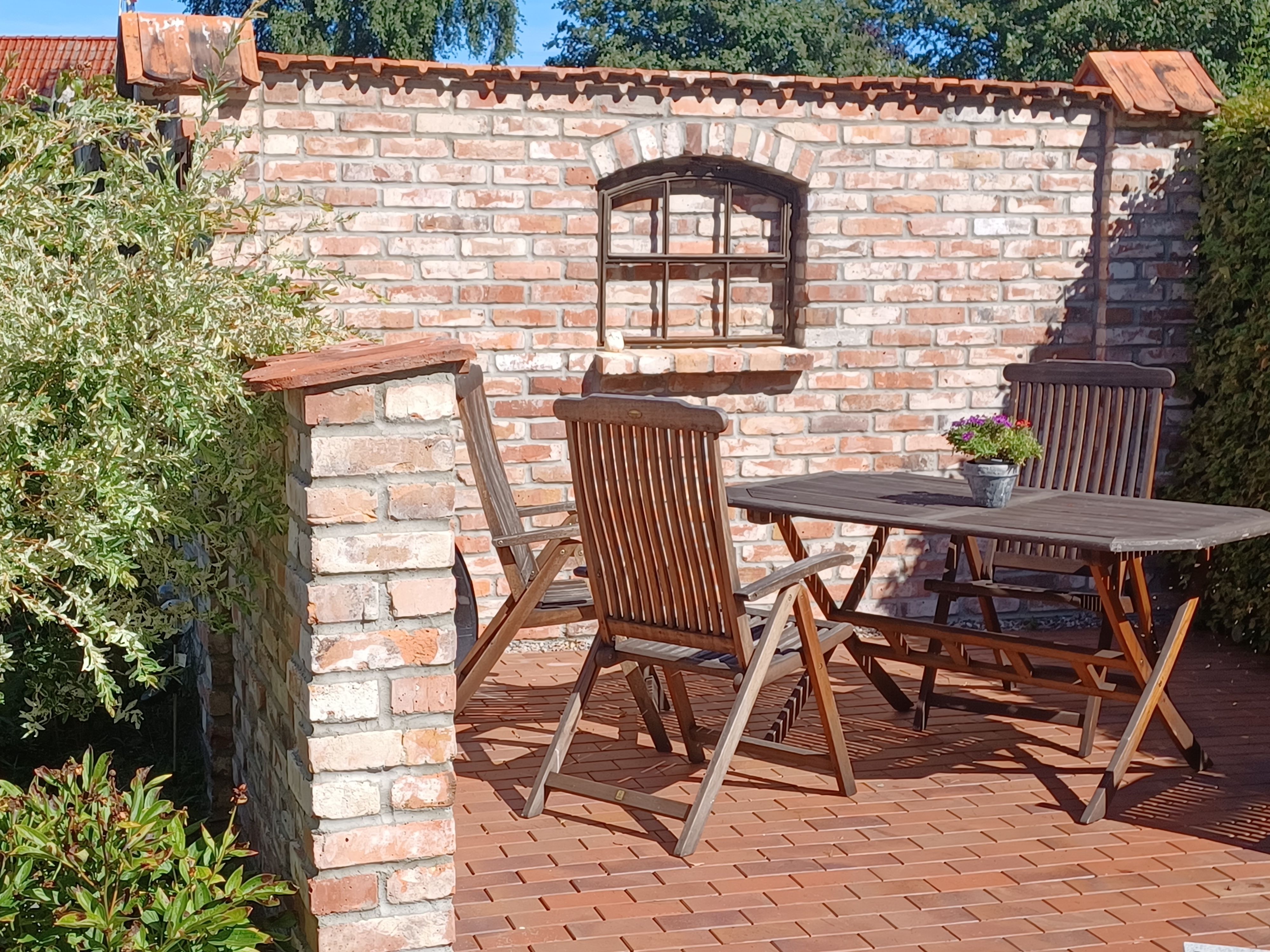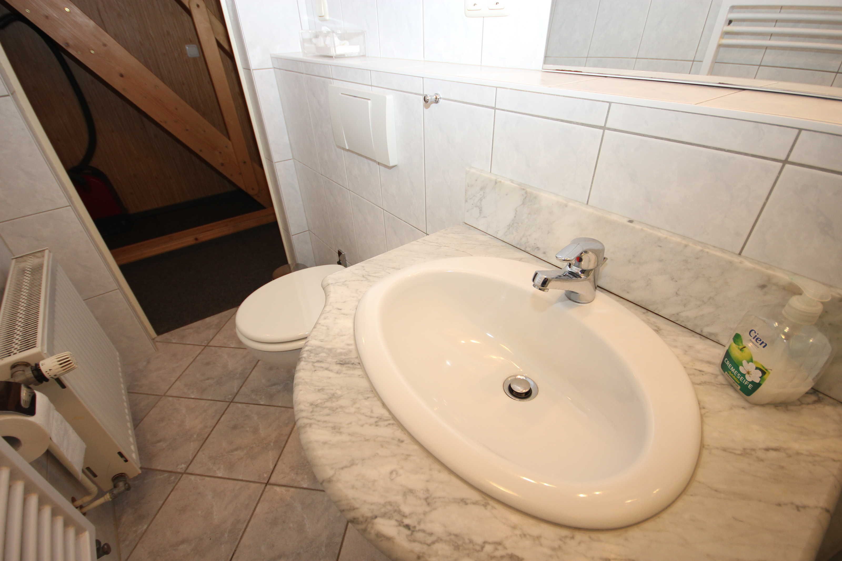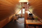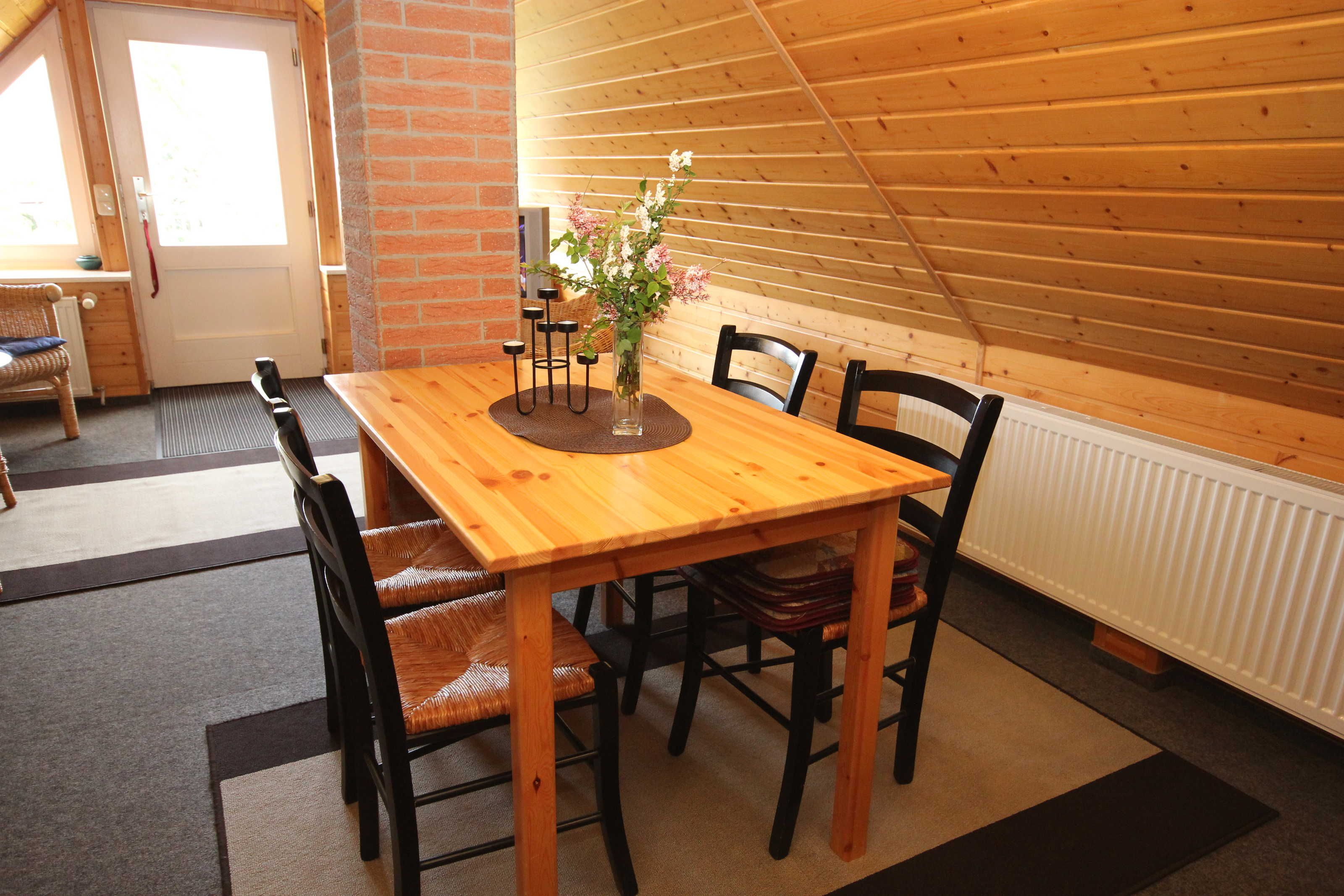 die Ferienwohnung im Obergeschoss mit separatem Eingang, in ruhiger Lage am Ortsrand ist über eine Aussentreppe erreichbar. Der Sitzplatz im Garten auf der separaten Terrasse lädt Sie zum verweilen und entspannen ein. An das offene Wohnzimmer mit kostenlosen WLAN- Gästezugang und SAT-TV, schließt sich die kleine Küchenzeile mit Essplatz an. Die Ferienwohnung verfügt über 2 - 1.Schlafzimmer mit Doppelbett 1,80 x 2,00 m (getrennte Matratzen) und das 2. Schlafzimmer ist über eine Raumspartreppe zur Schlafgalerie mit 2 Einzelbetten erreichbar 0,90 x 2,00 m. Die Wohnung wird inclusive Bettwäsche übergeben, Handtücher können in der Zimmervermittlung für 7,00 € pro Person (1 Badetuch, 1 Handtuch) dazugebucht werden. Das Rauchen in der Wohnung ist nicht gestattet. In der abgeschlossenen Garage ist Platz für 1 PKW. Der Strand ist in ca. 15 Gehminuten zu erreichen.