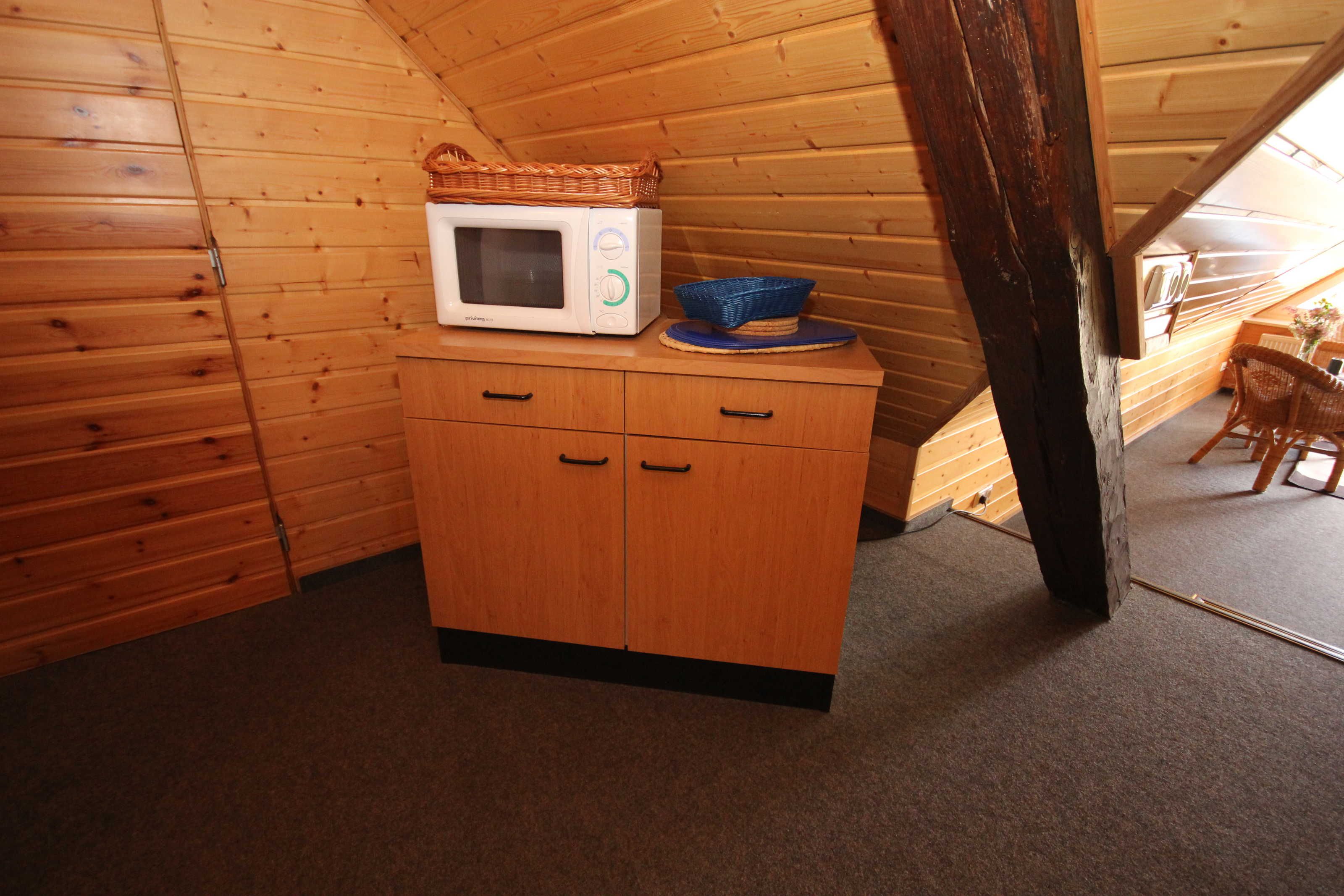 Ausstattung: Bad mit DU/WC: 1, Doppelbett: 1, Einzelbett: 2, Küchenzeile, Kühlschrank, Gefrierfach im Kühlschrank, Kaffeemaschine, Toaster, TV, Wasserkocher, Spüle, separater Eingang