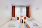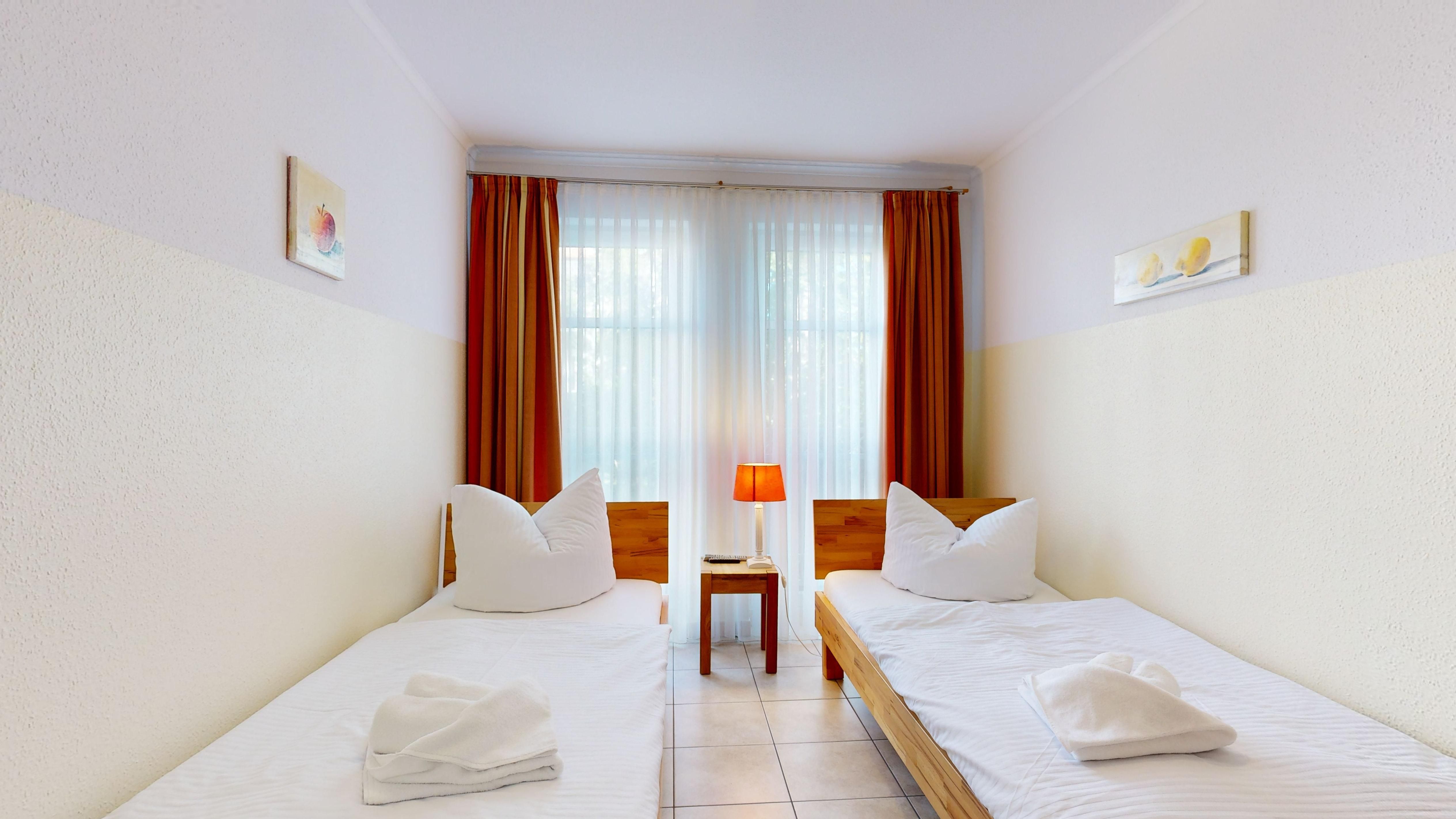 1 Schlafzimmer mit zwei Einzelbetten (je 90 x 200 cm), Schrank und TV