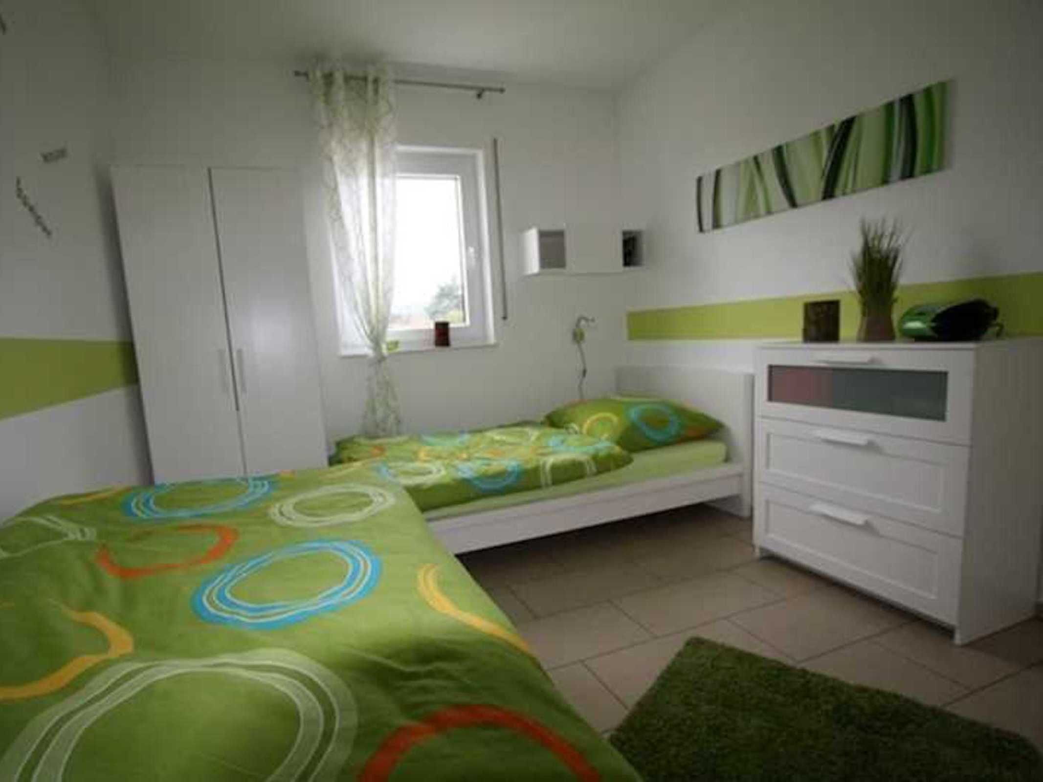 Die Ferienwohnung besitzt 2 Schlafzimmer, eines mit Doppelbett und direktem Zugang zum Garten und das andere mit zwei Einzelbetten. Somit bietet die Wohnung ausreichend Platz für 4 Personen. Ein Babybett und ein Hochstuhl werden auf Anfrage kostenlos zur Verfügung gestellt. Das Tageslichtbad ist mit Dusche, WC und Badewanne ausgestattet. Die offene voll ausgestattete Küche verfügt über einen Backofen, Kühl-Gefrier-Kombination, Geschirrspüler und Mikrowelle, sowie Kaffeemaschine, Wasserkocher und Toaster. In der Küche kann man es sich an dem großen Esstisch zusammen schmecken lassen. Auf der anderen Seite des Raums befindet sich das großzügige Sofa und die mit Dekosteinen verzierte Fernsehwand. Neben einem Flachbild-Fernseher und DVD-Player gibt es eine Musikanlage mit Dockingstation. In einem Schlafzimmer gibt es zusätzlich einen weiteren CD-Player. Vom Wohnzimmer aus gelangt man durch die große Doppeltür auf die Terrasse im Garten, wo sie von morgens bis abends in der Sonne baden und die Ruhe genießen können, während die Kinder im Garten spielen. Gartenmöbel mit Auflagen und ein Grill sind ebenfalls vorhanden.