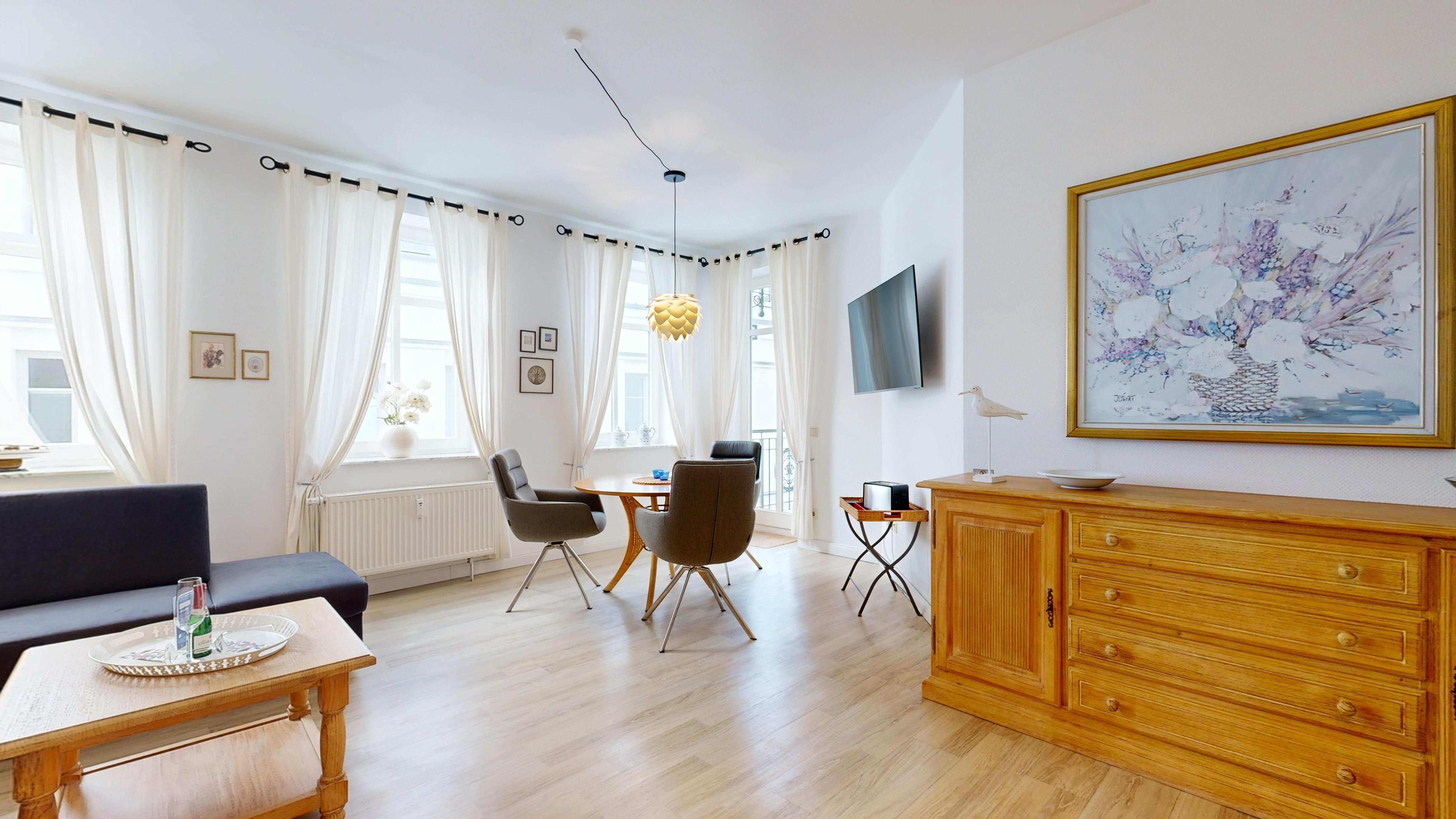 Sehr schöne Ferienwohnung in der 2. Etage (2 Zimmer / 50 m²) direkt an der Strandpromenade mit einem sonnigen Balkon mit Ostseeblick und Nachmittags- und Abendsonne