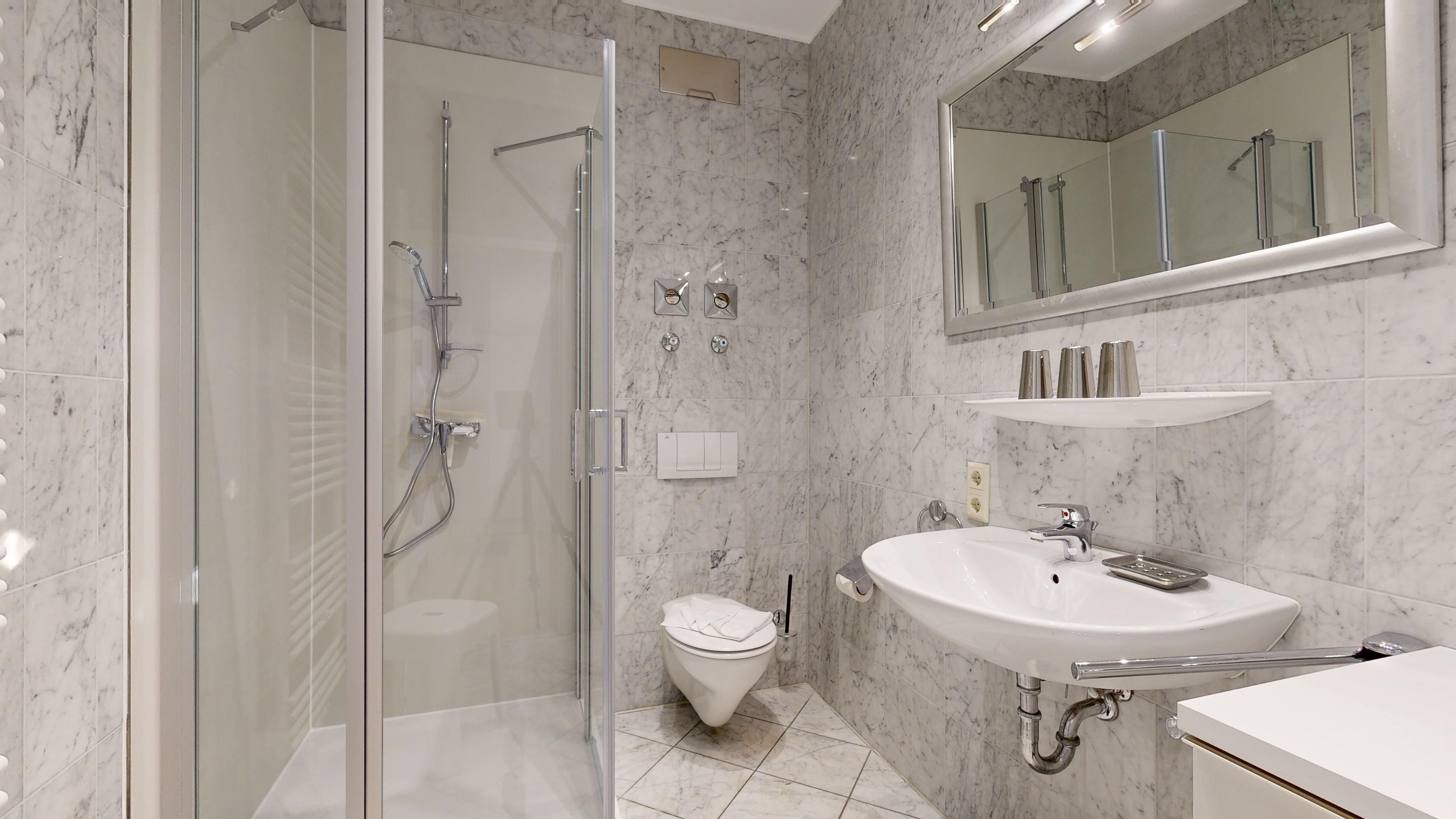 * 1 Badezimmer mit Dusche, WC und Föhn