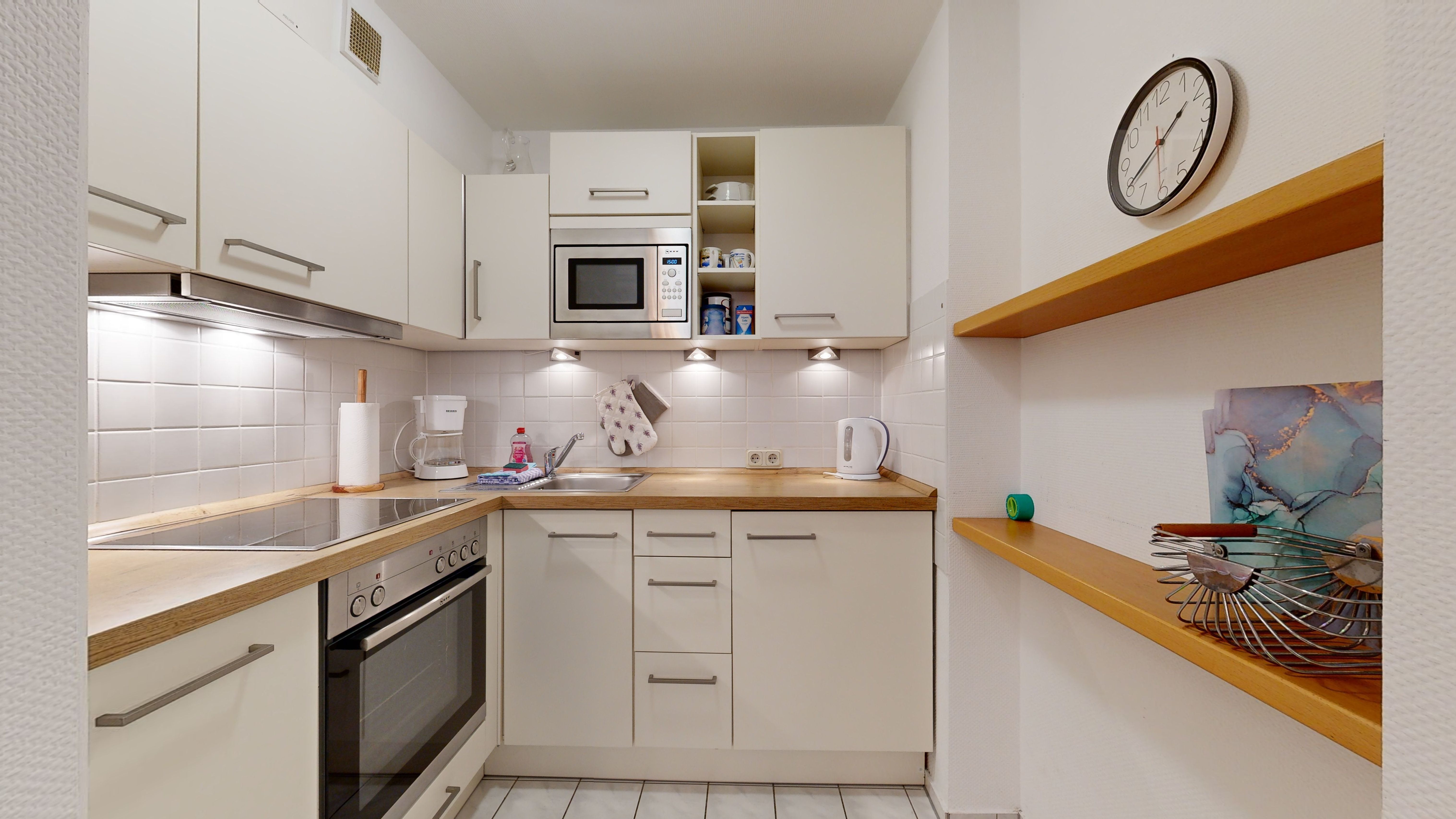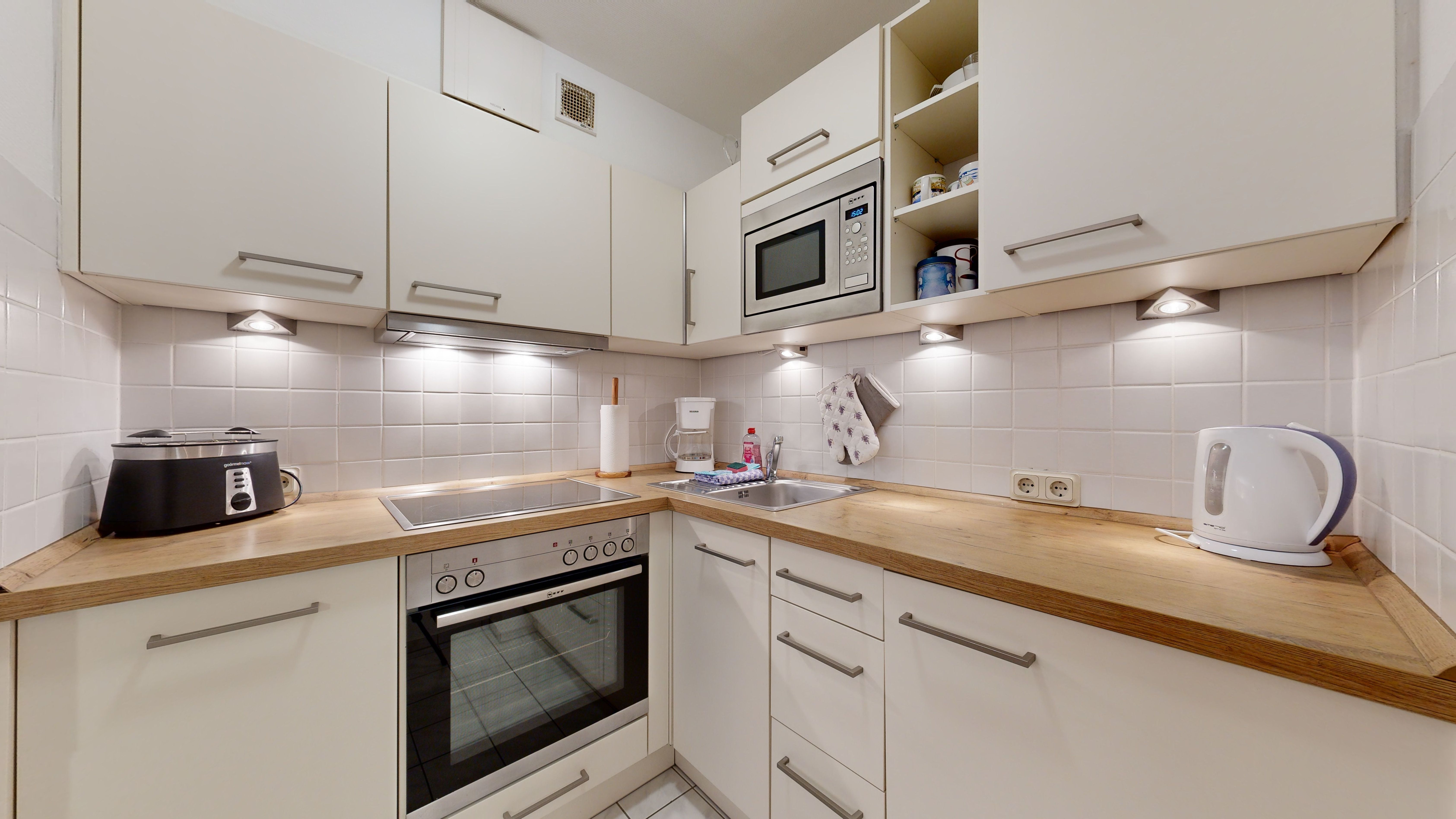 * Küche: Moderne Küchenzeile, E-Herd, Backofen, Spülmaschine, Mikrowelle, Wasserkocher, Kaffeemaschine, Toaster
