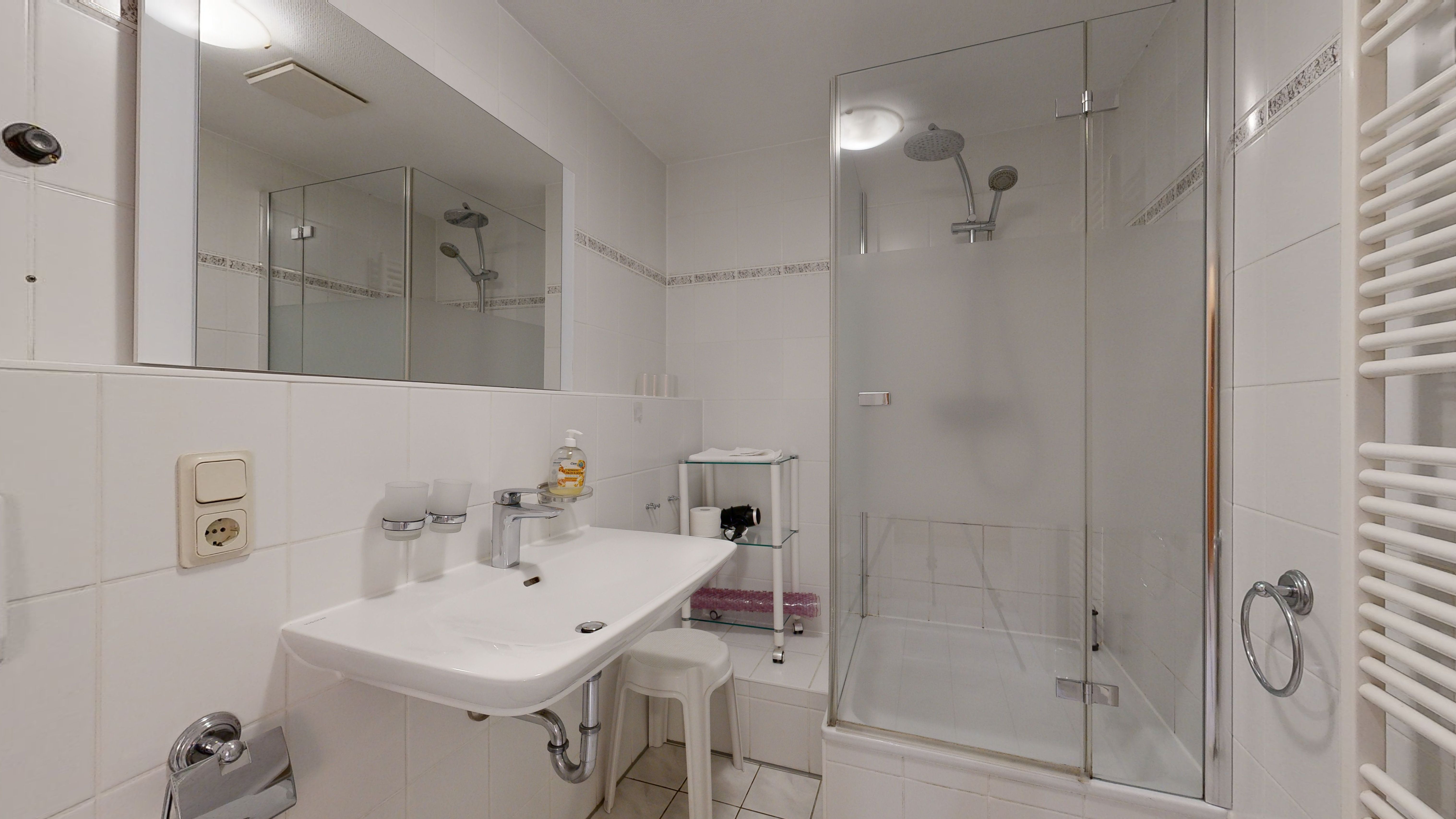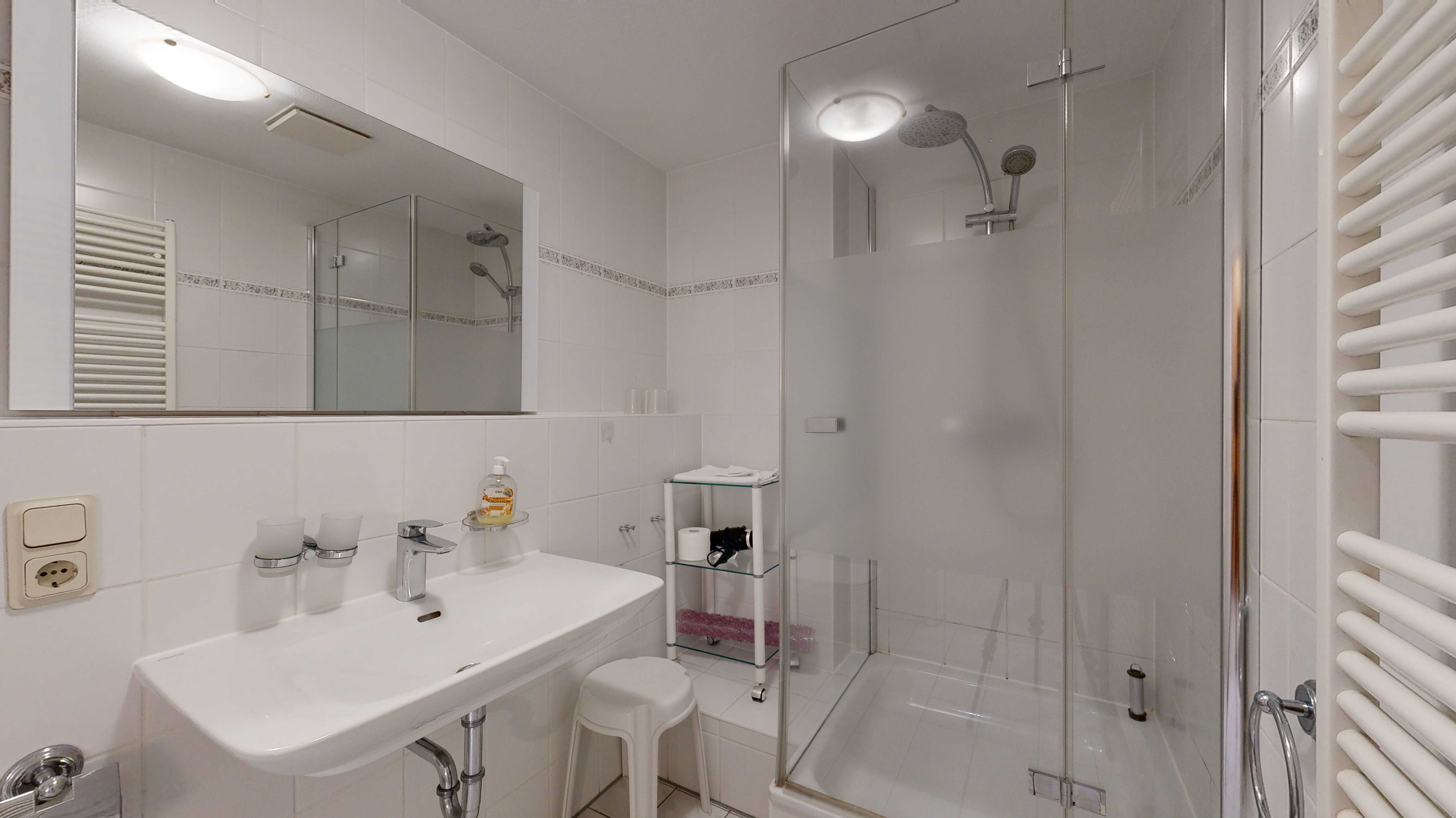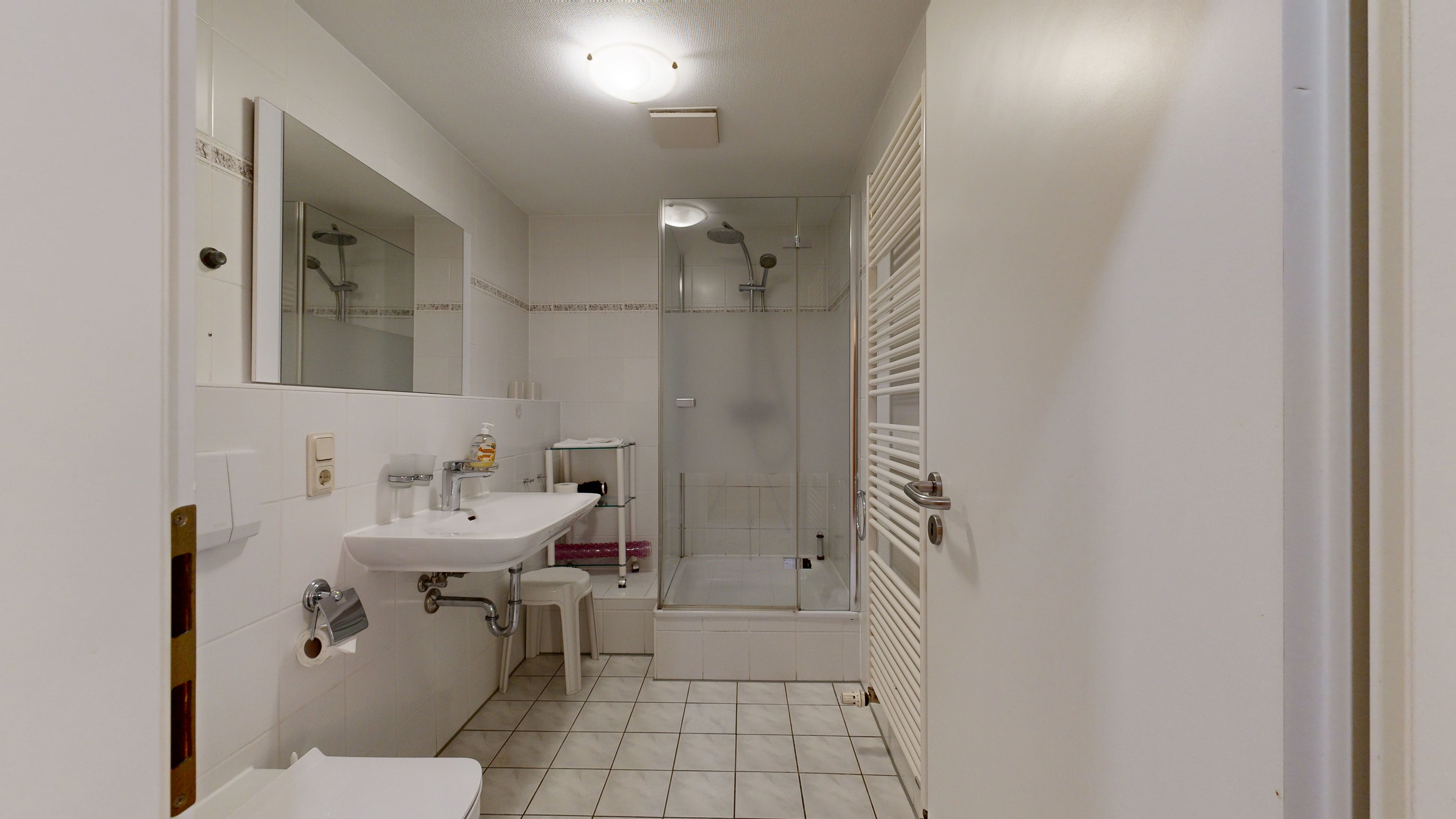 * 1 Badezimmer mit Dusche, WC und Föhn