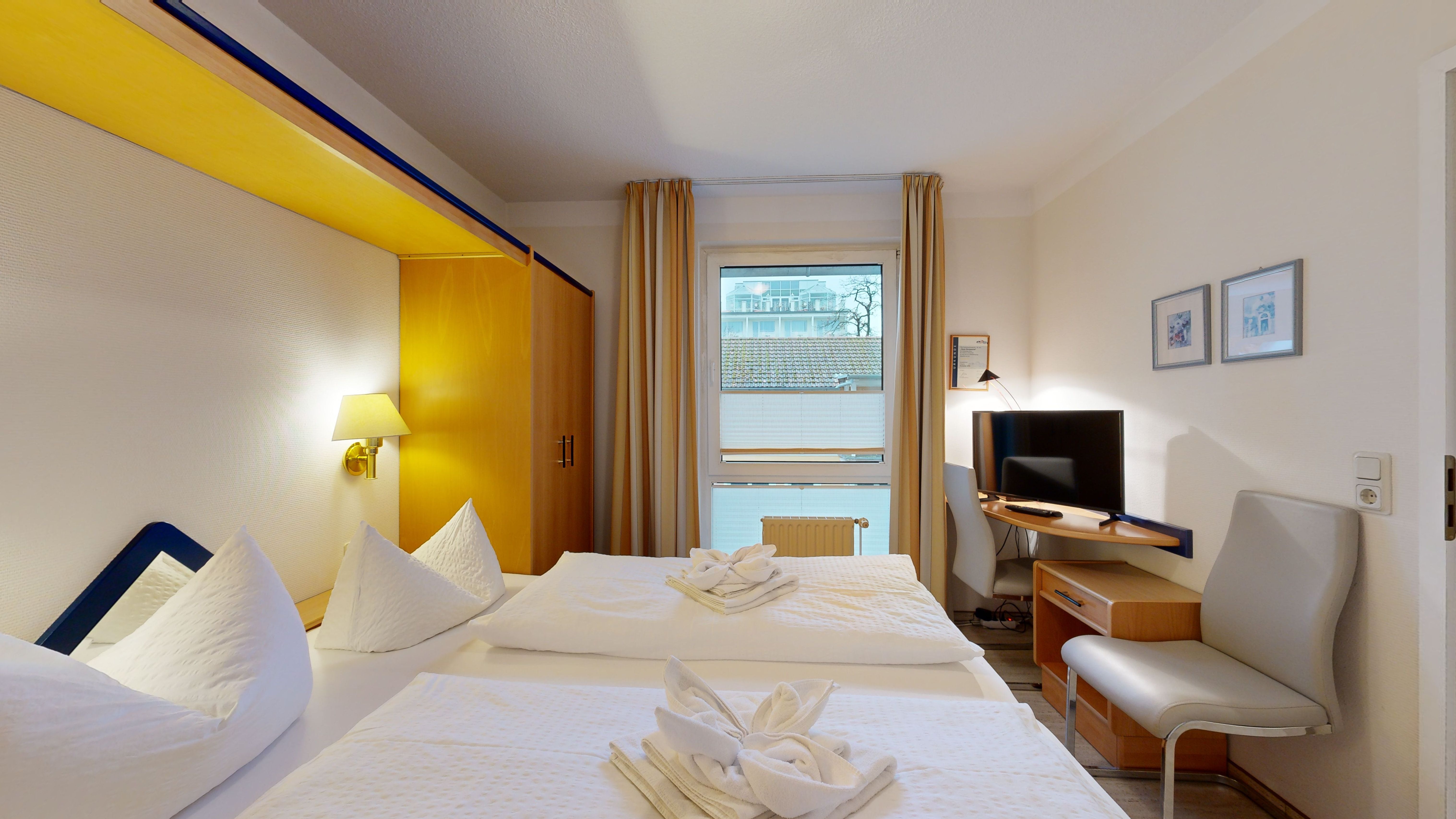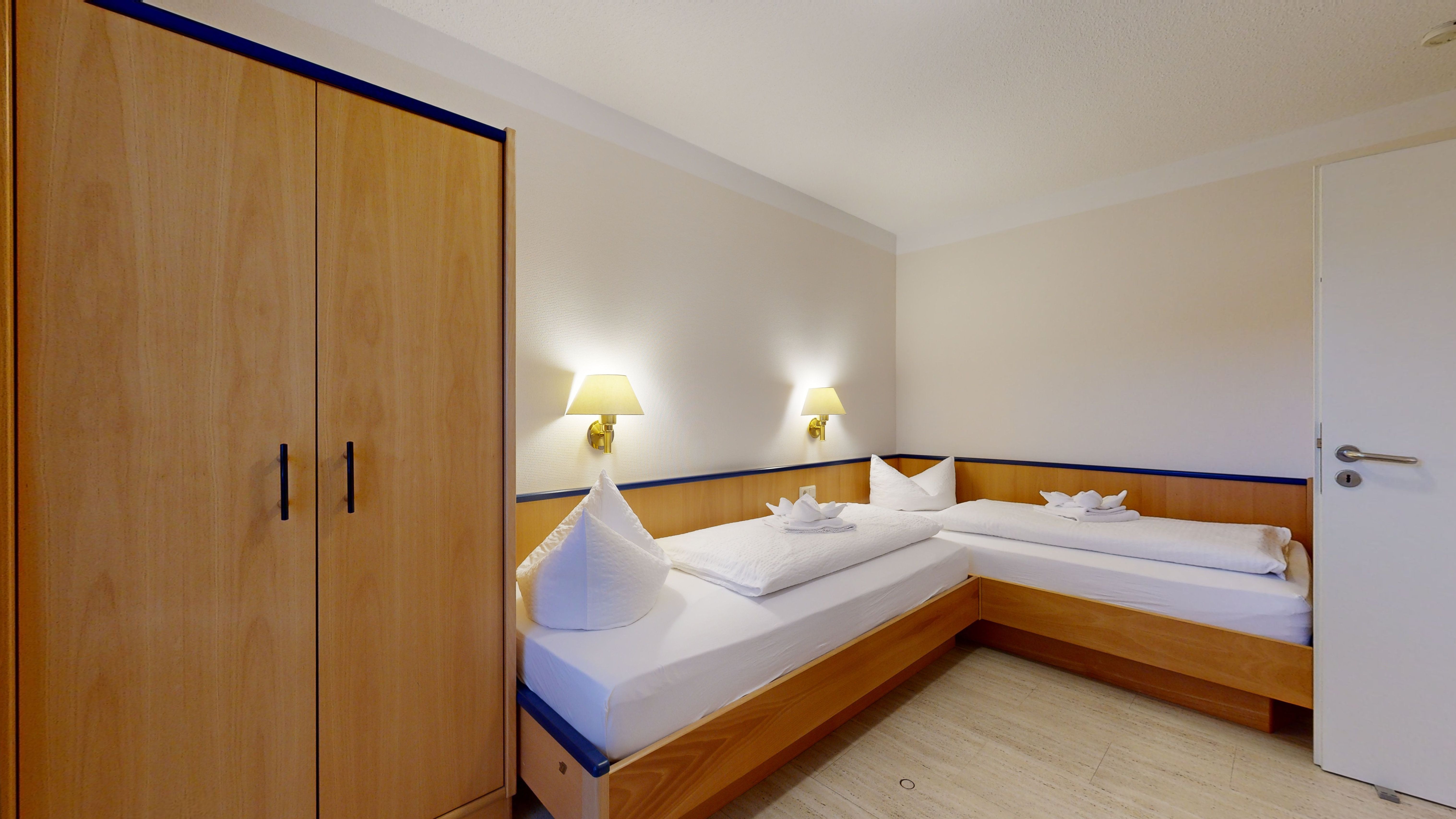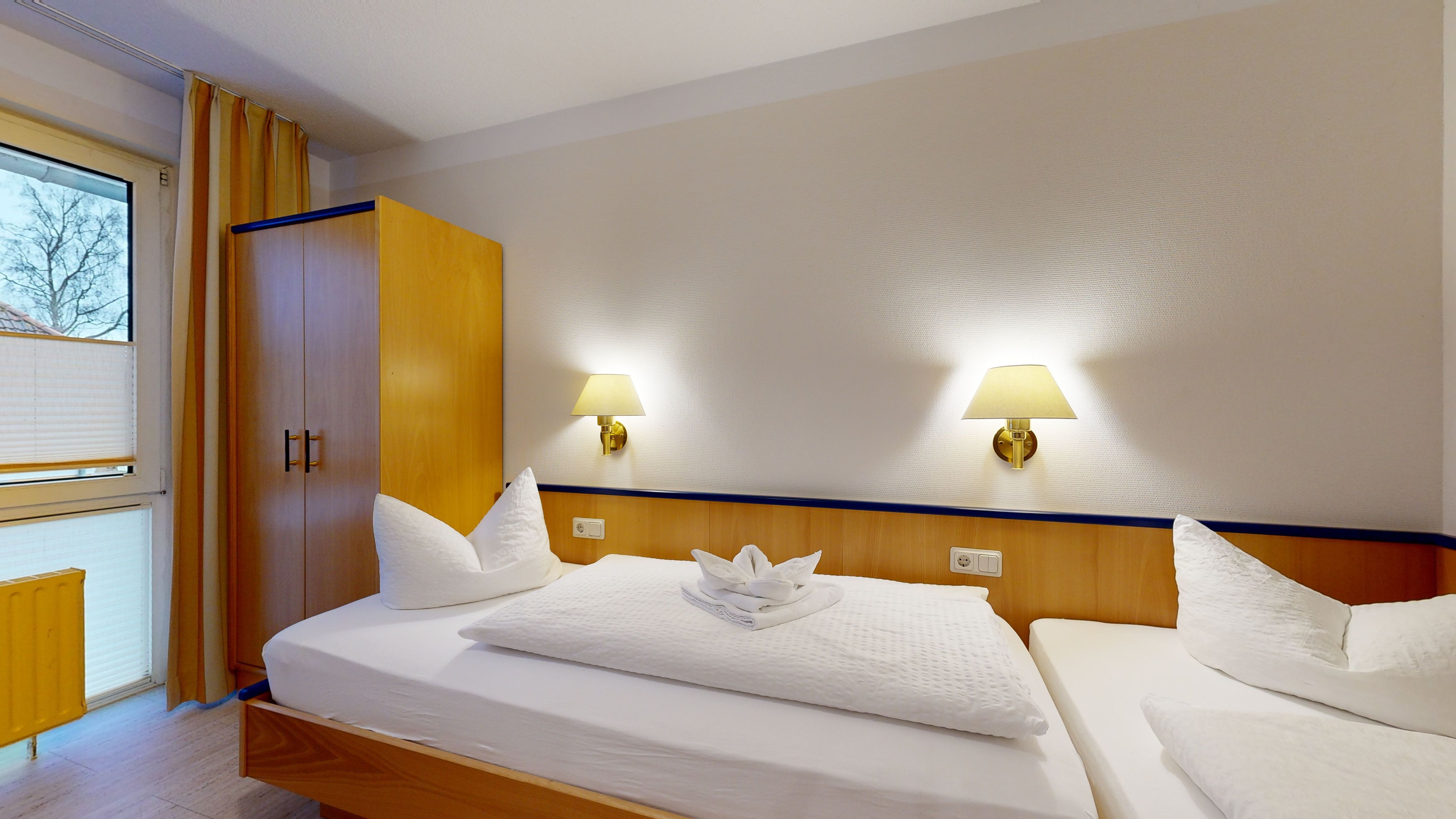 * 1 Schlafzimmer mit zwei Einzelbetten