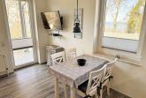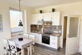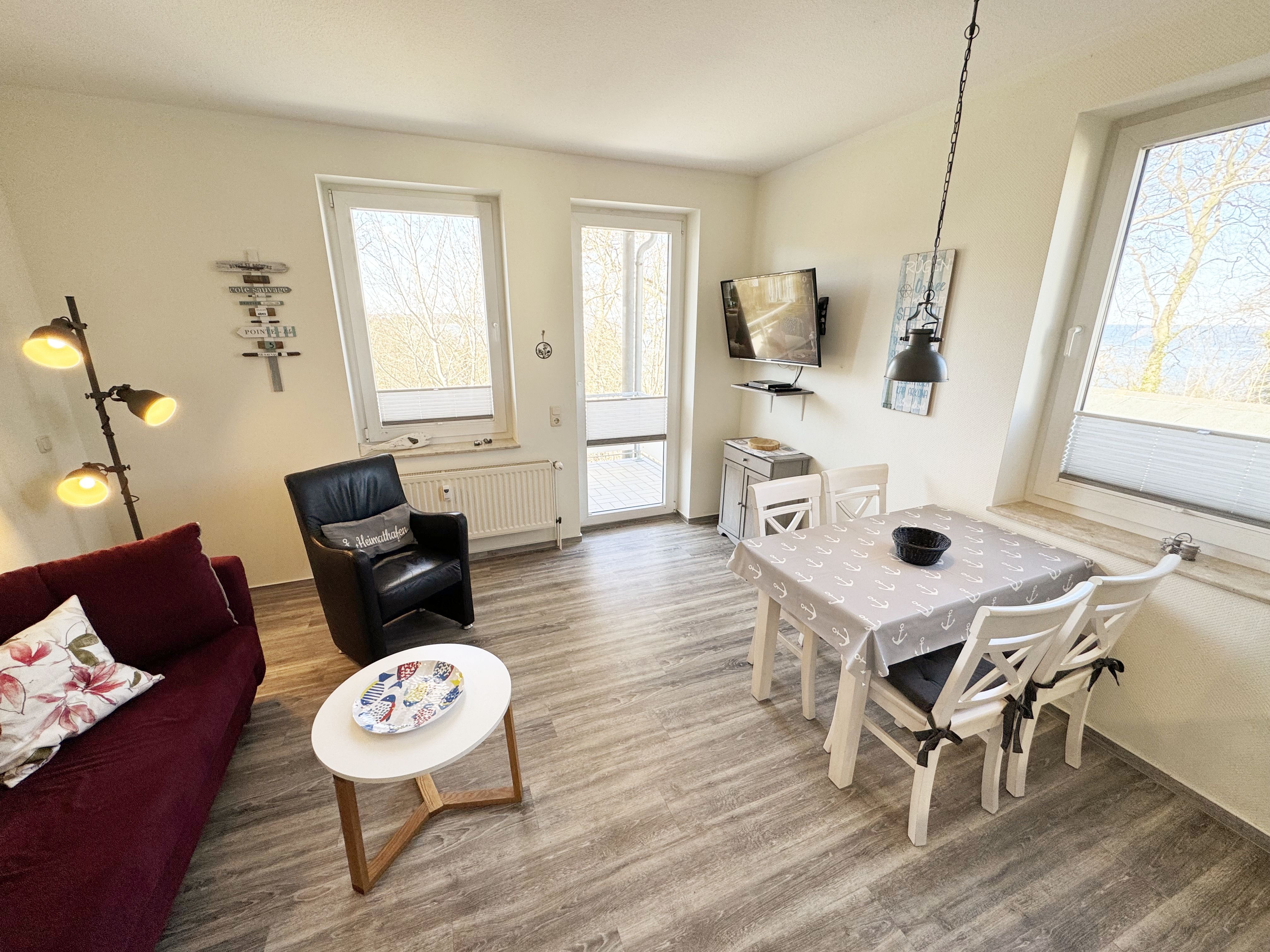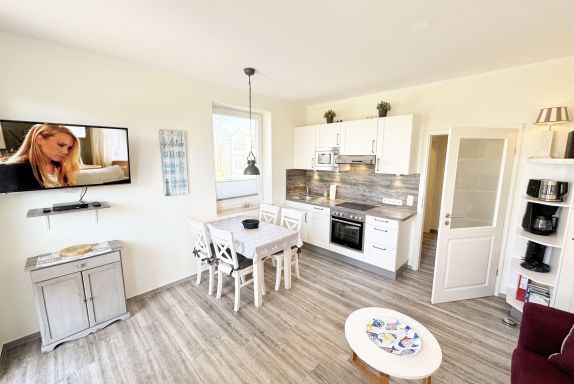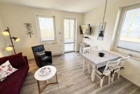 Die helle und freundliche 2-Raumferienwohnung im 2. Obergeschoss umfasst ca. 45 m² und ist eine Nichtraucherwohnung. Die Wohnung ist für max. 2 Erwachsene ausgestattet und ist bequem über das Treppenhaus oder den Aufzug zu erreichen. Sie verfügt über einen geräumigen Flurbereich sowie ein Wohn-/Esszimmer mit einer Couch, Sessel, Couchtisch, Esstisch und eine neue, sehr gut ausgestattete Einbauküche mit Backofen, Ceran-Kochfeld, Mikrowelle, Spülmaschine, Kühlschrank mit Gefrierfach, Kaffeemaschine, Senseo Pad-Maschine, Wasserkocher, Toaster, Eierkocher, Mixer sowie diverse Küchenutensilien. Der technische und der Unterhaltungsbereich wird durch einen Smart-TV, Blu-Ray-Player, Stereoanlage mit CD-Player und USB-Anschluss, eine Spielesammlung, eine kleine Auswahl an Büchern sowie einen kostenloser Internetanschluss (WLAN) abgerundet. Der großzügige und überdachte Balkon (Nord/West) mit Bestuhlung und Sonnenschirm lädt zum Entspannen ein und ist über das Wohn-/Esszimmer zu erreichen. Von hier haben Sie einen Blick ins Grüne, Richtung Ostsee, wo Sie das Wellenrauschen (natürlich bei ausreichend Wind) genießen können. Das Schlafzimmer ist mit einem Doppelbett (Härtegrad 2 und 3, Liegefläche 1,80 m x 2,00 m), verstellbare Lattenroste, Nachttischablagen, einem Herrendiener, einem Kleiderschrank, Smart-TV und Verdunklungsgardinen sowie Plissee ausgestattet. Das moderne und geflieste Bad mit WC, Waschtisch, Dusche, Badmöbeln, Kosmetikspiegel und Fön bietet ausreichend Komfort für Ihren Urlaubsaufenthalt. Im Wohn- & Schlafzimmer finden Sie zusätzlich ein Insektenschutzgitter. Der PKW-Stellplatz befindet sich direkt am Haus. Ein abschließbarer Gemeinschaftsabstellraum und Fahrradständer hinter dem hauseigenen Parkplatz sind ebenso nutzbar. Die Mitnahme eines Haustieres ist gegen eine Gebühr möglich. Die Erstausstattung eines Wäschepaketes (komplette Bettwäsche, 1 Duschhandtuch, 2 kleine Handtücher, 2 Geschirrhandtücher) können Sie bis 14 Tage vor Anreise gegen einen Aufpreis dazu buchen oder durch eigene ergänzen.