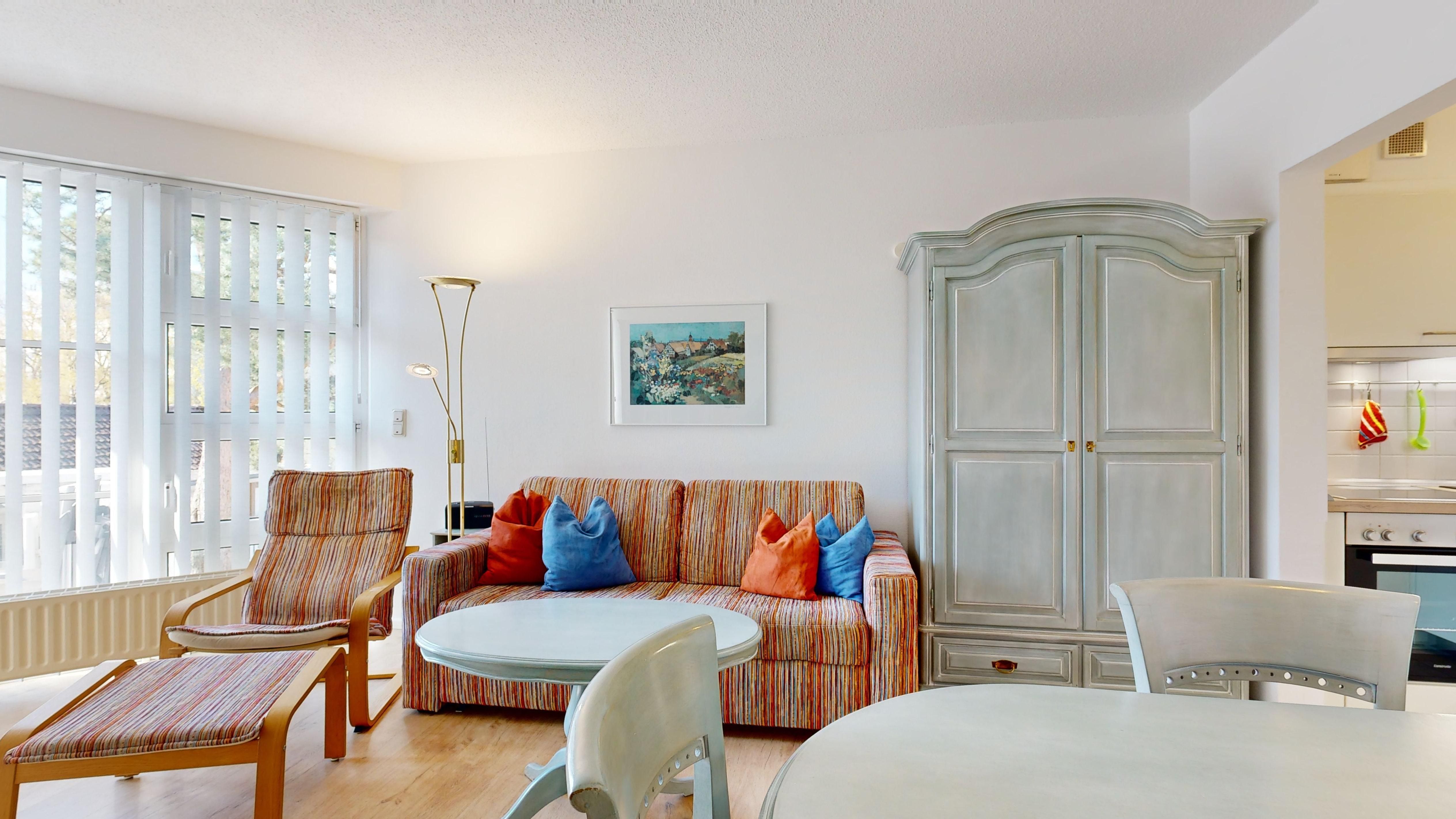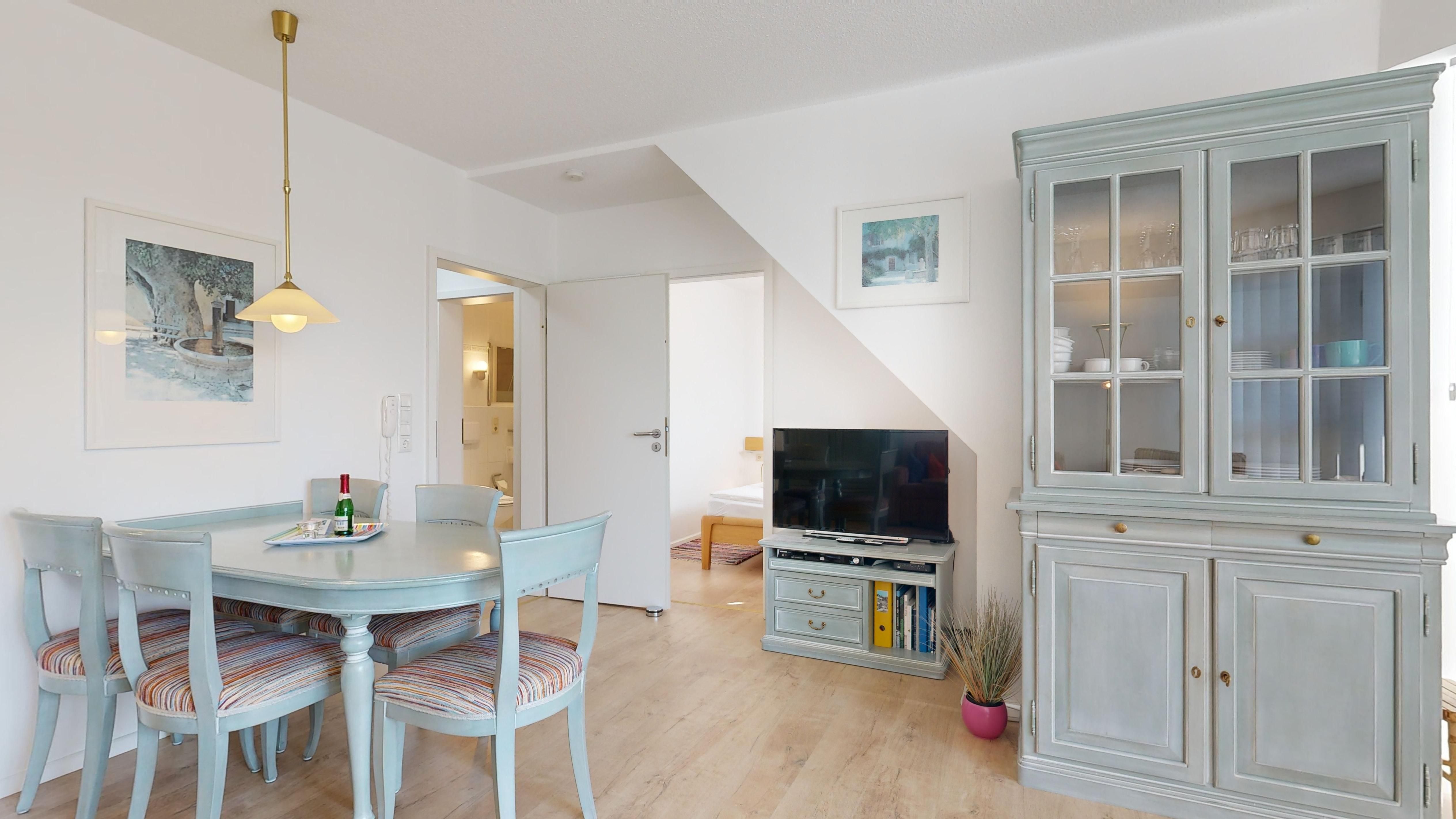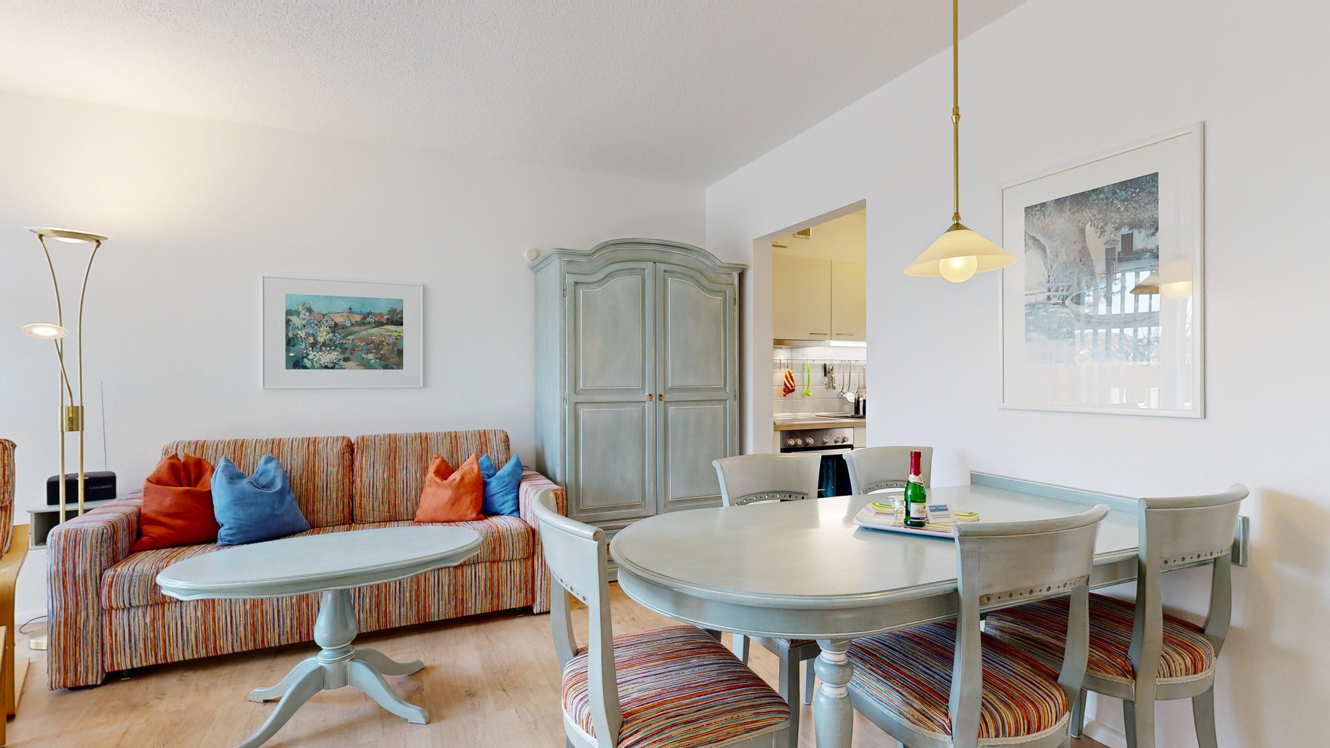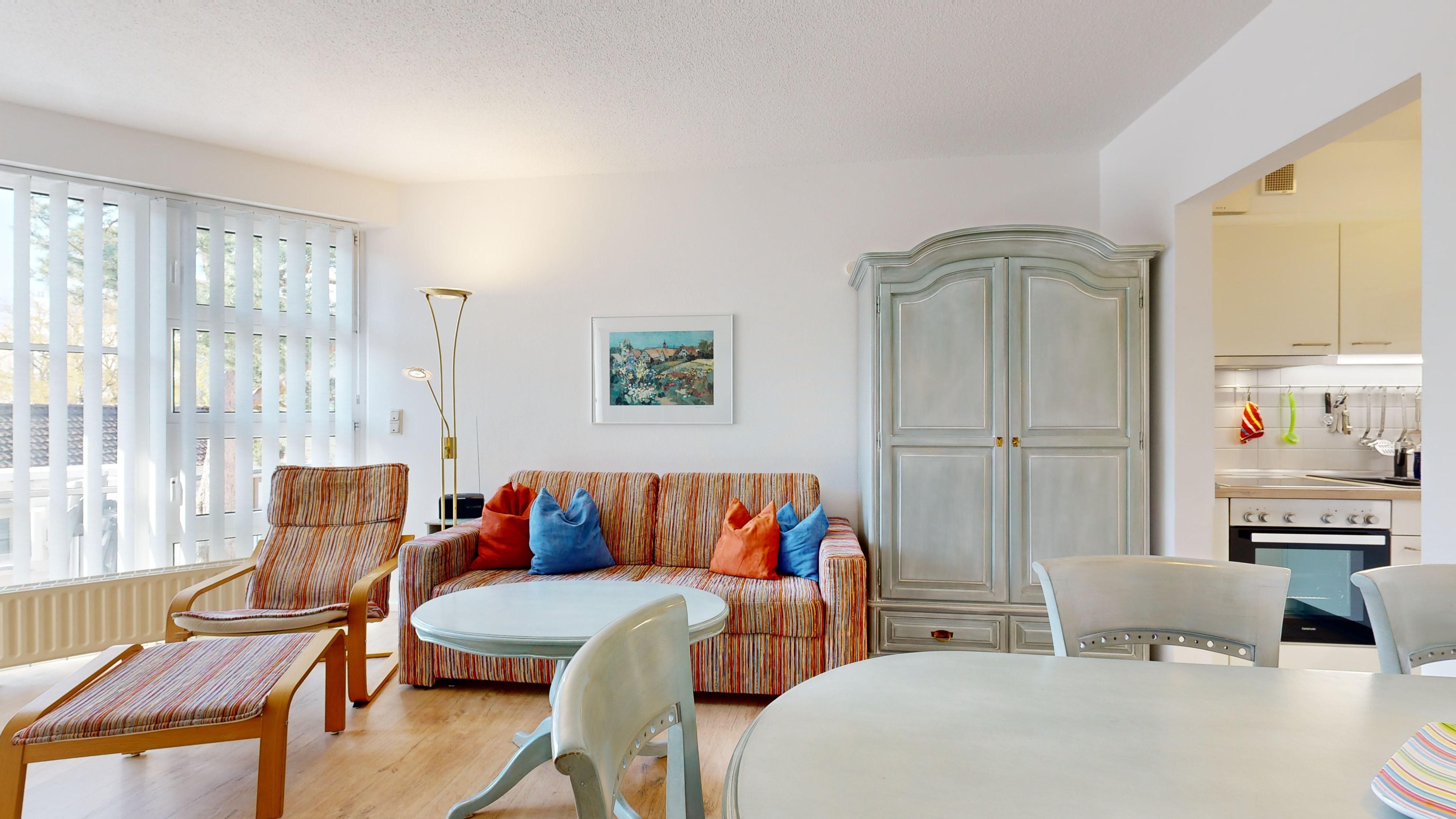 * Wohnzimmer: Couchgarnitur, Essplatz, Kabel-TV, Radio mit CD, DVD, Internetzugang (WLAN oder Kabel möglich)