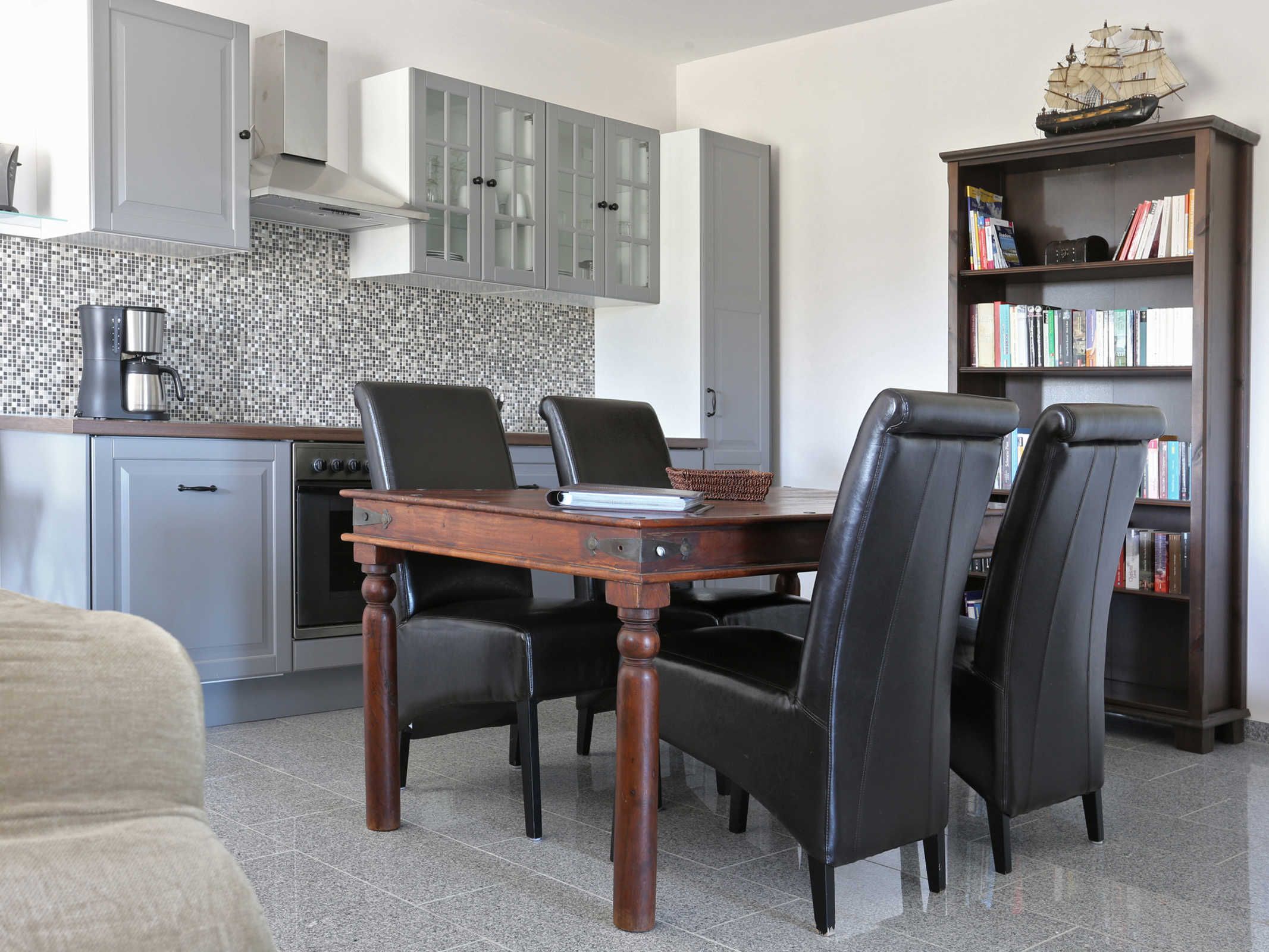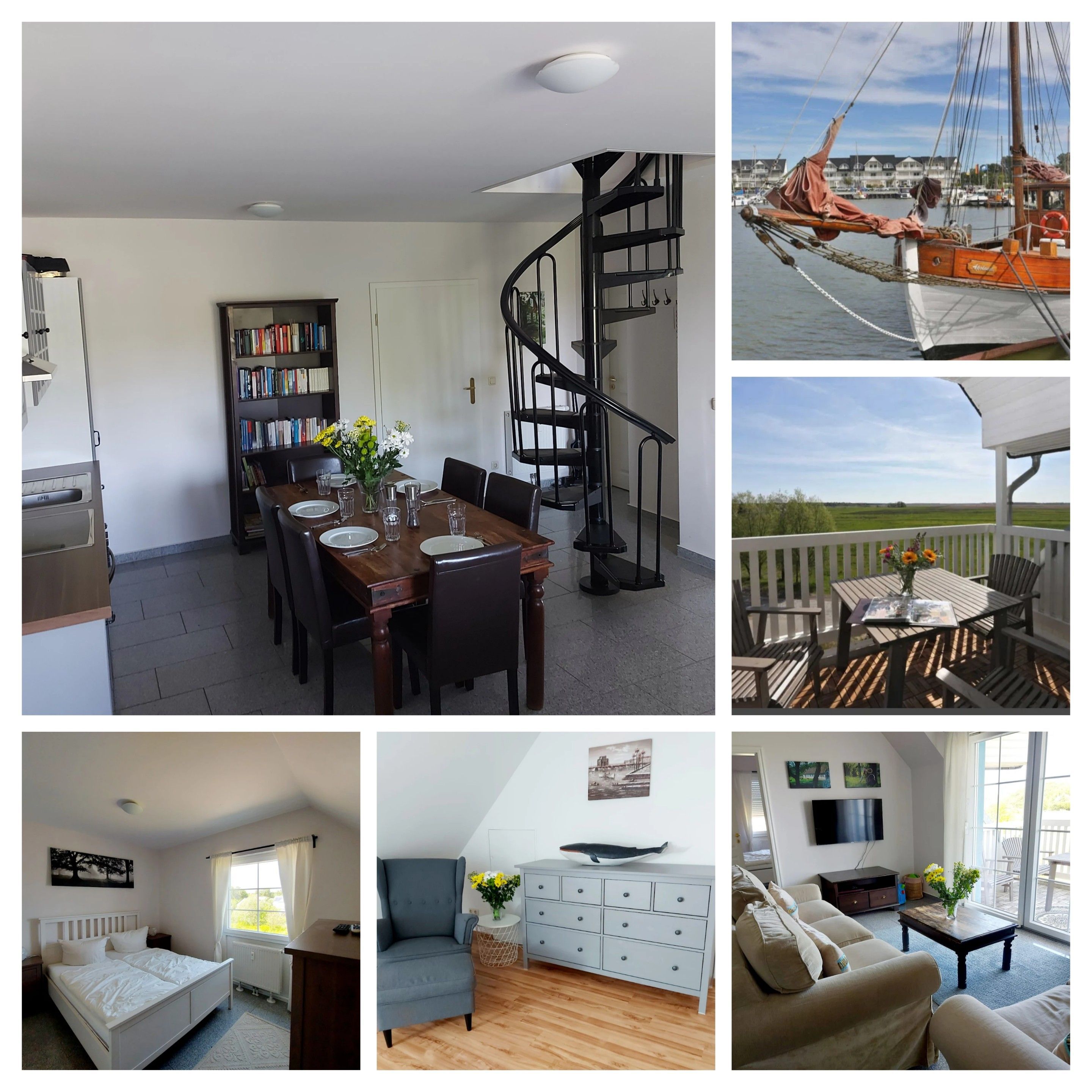 Direkt am Yachthafen gelegene, großzügige und hochwertig ausgestattete Ferienwohnung. Die Maisonettewohnung verfügt über einen Balkon mit Panoramablick, einen offenen Wohn- und Küchenbereich mit großem Esstisch und einer gut ausgestatteten Küche mit Geschirrspüler, Ceranfeld, Backofen, Kühlschrank, Kaffeemaschine, Mikrowelle, Wasserkocher, Saftpresse und Toaster. Ein Elektrogrill steht zur Verfügung zum Grillen auf dem Balkon.