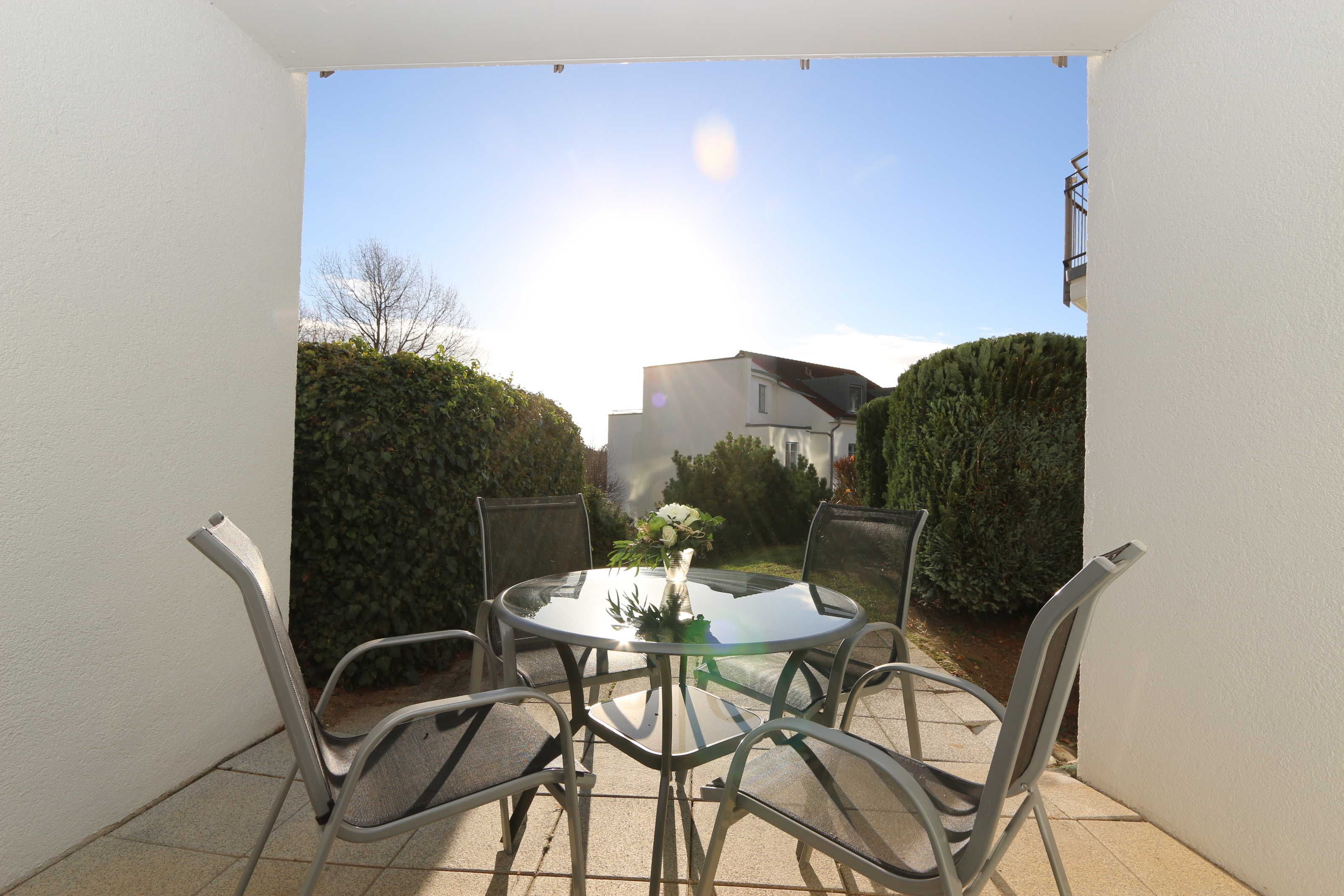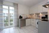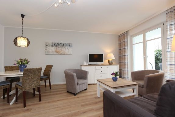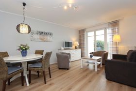 Ferienwohnung (Nr. 33) für bis zu 4 Personen inkl. einem Kleinkind (ca. 56 m²) im EG mit Wohn- und Esszimmer mit offener Küche, 1 Schlafzimmer, 1 Bad und 1 Terrasse;