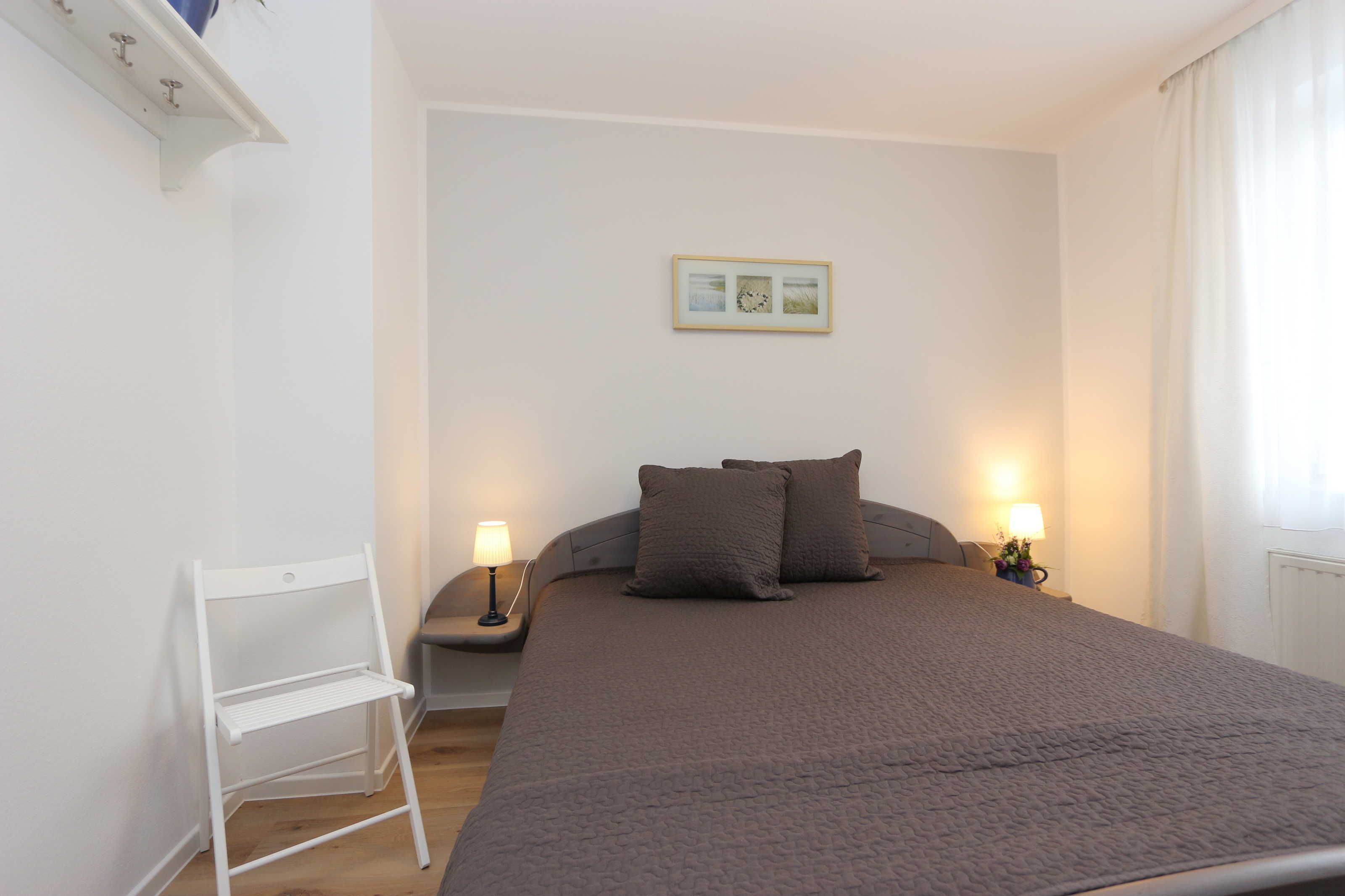 • Schlafzimmer mit Doppelbett (ca. 180 x 200 cm) für 2 Personen und Kleiderschrank;