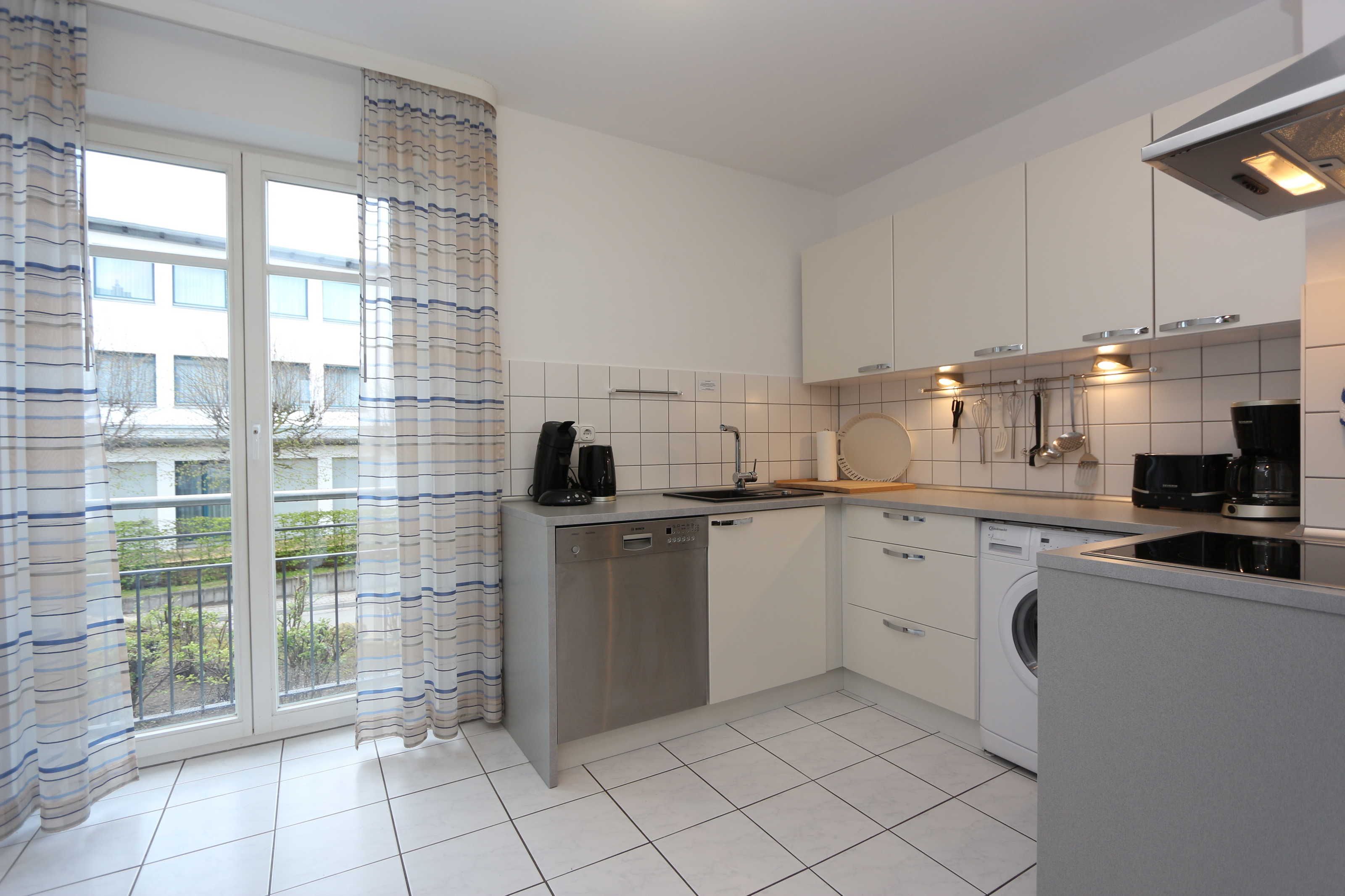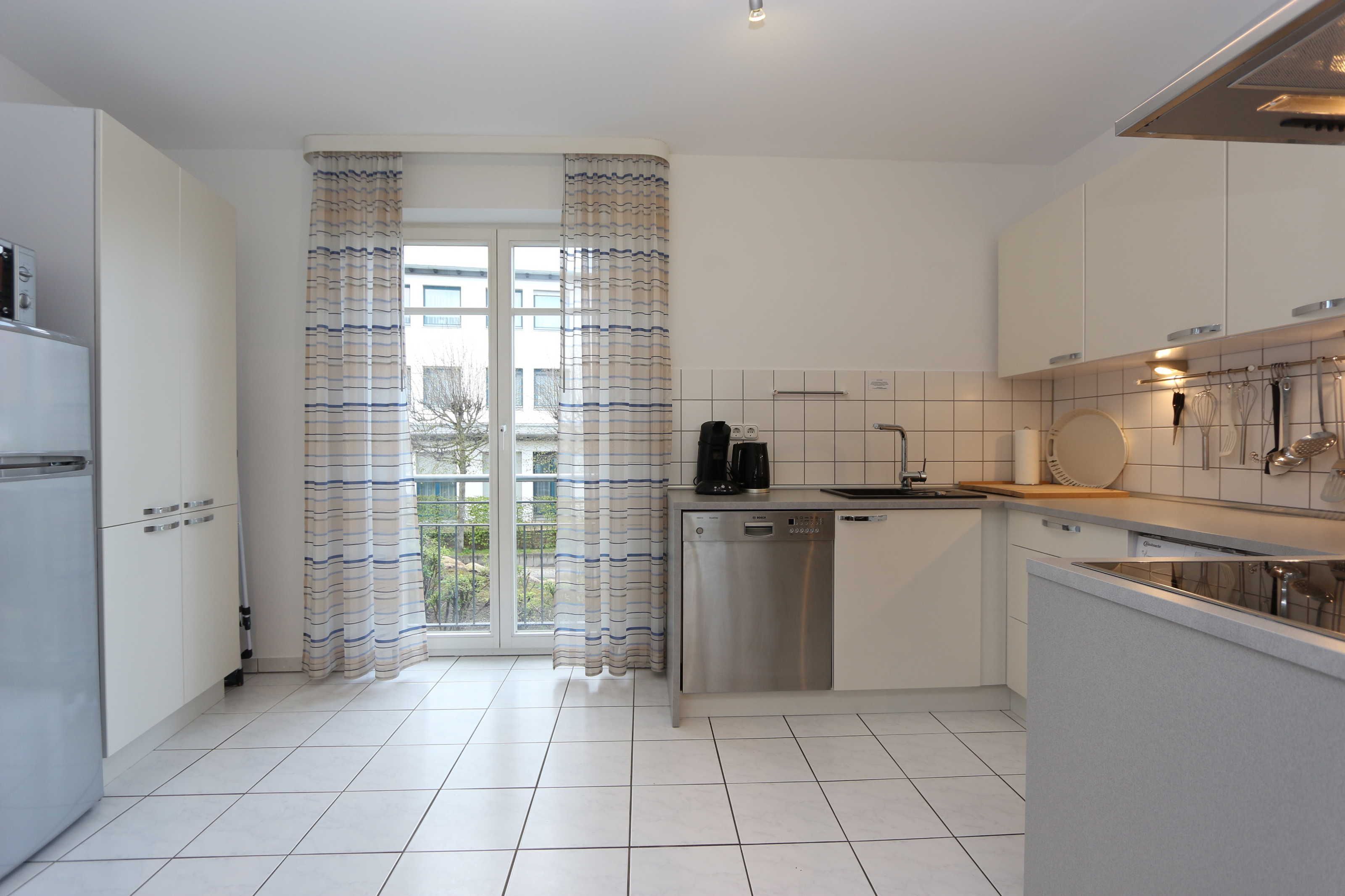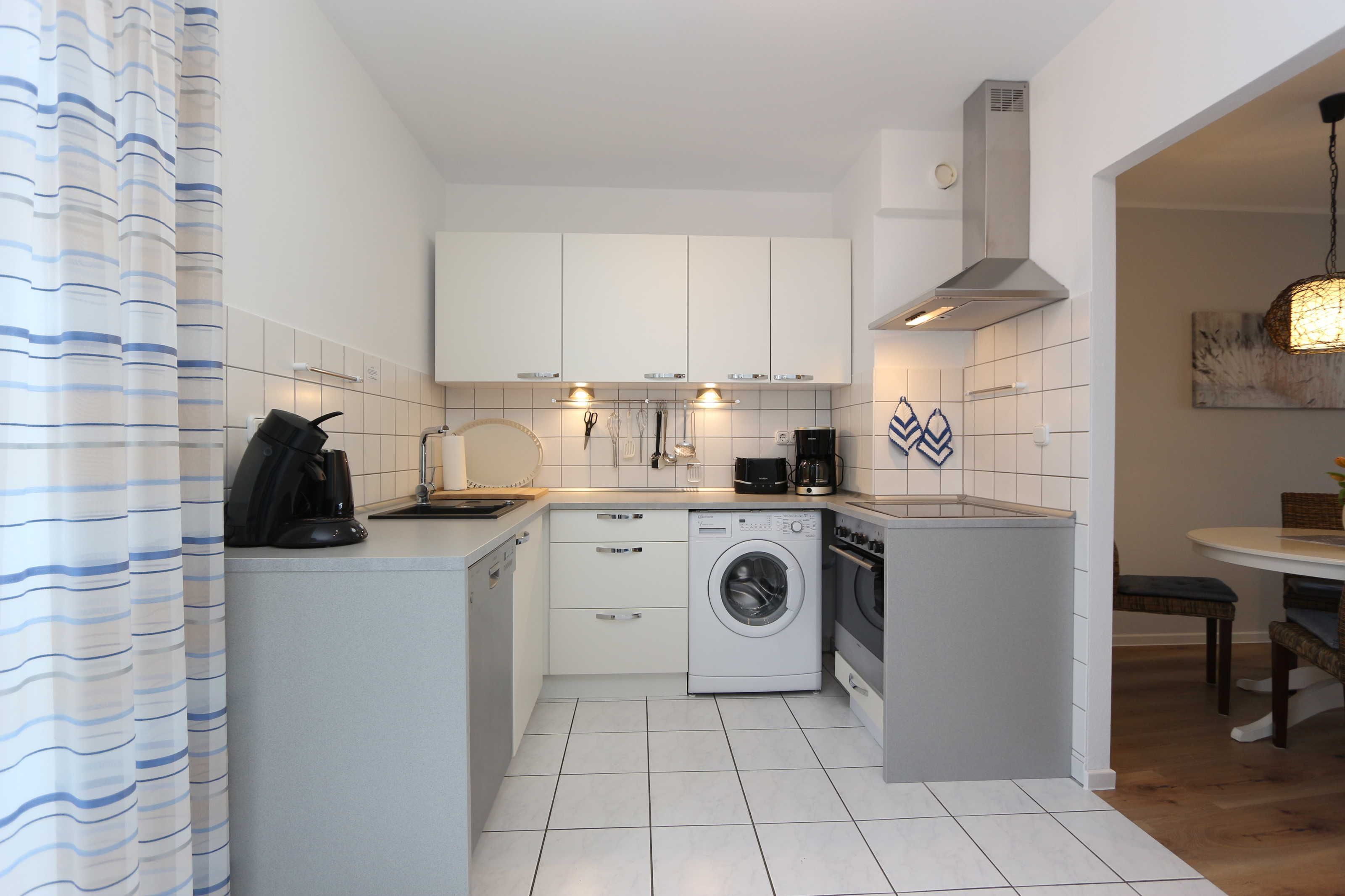 • Küche mit Einbauküche inkl. Herd, Mikrowelle, Eierkocher, Toaster, Spülmaschine, Wasserkocher, Kühlschrank, reichlich Geschirr.