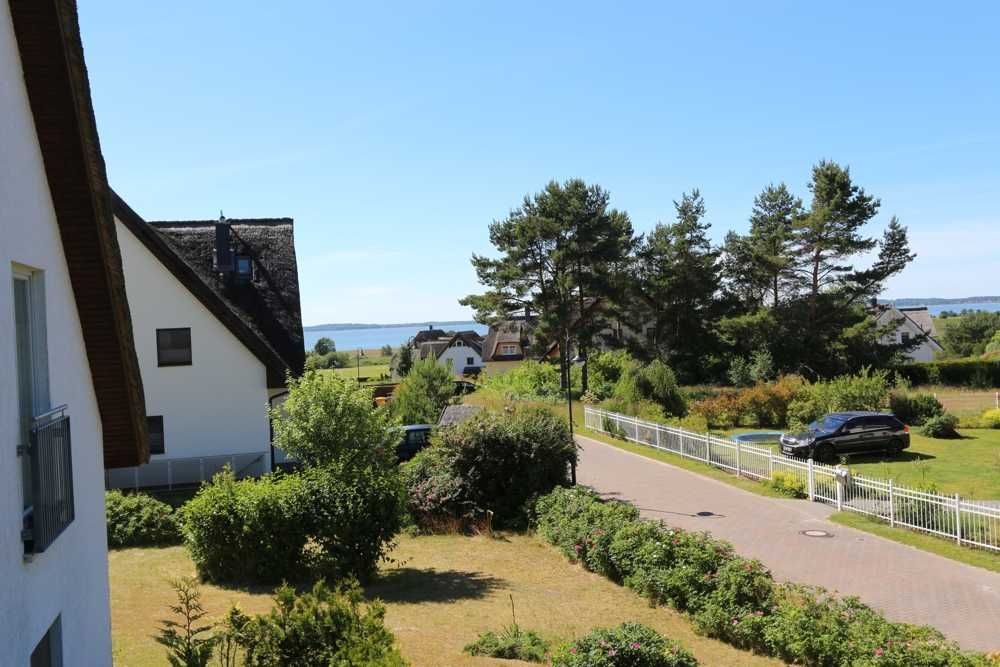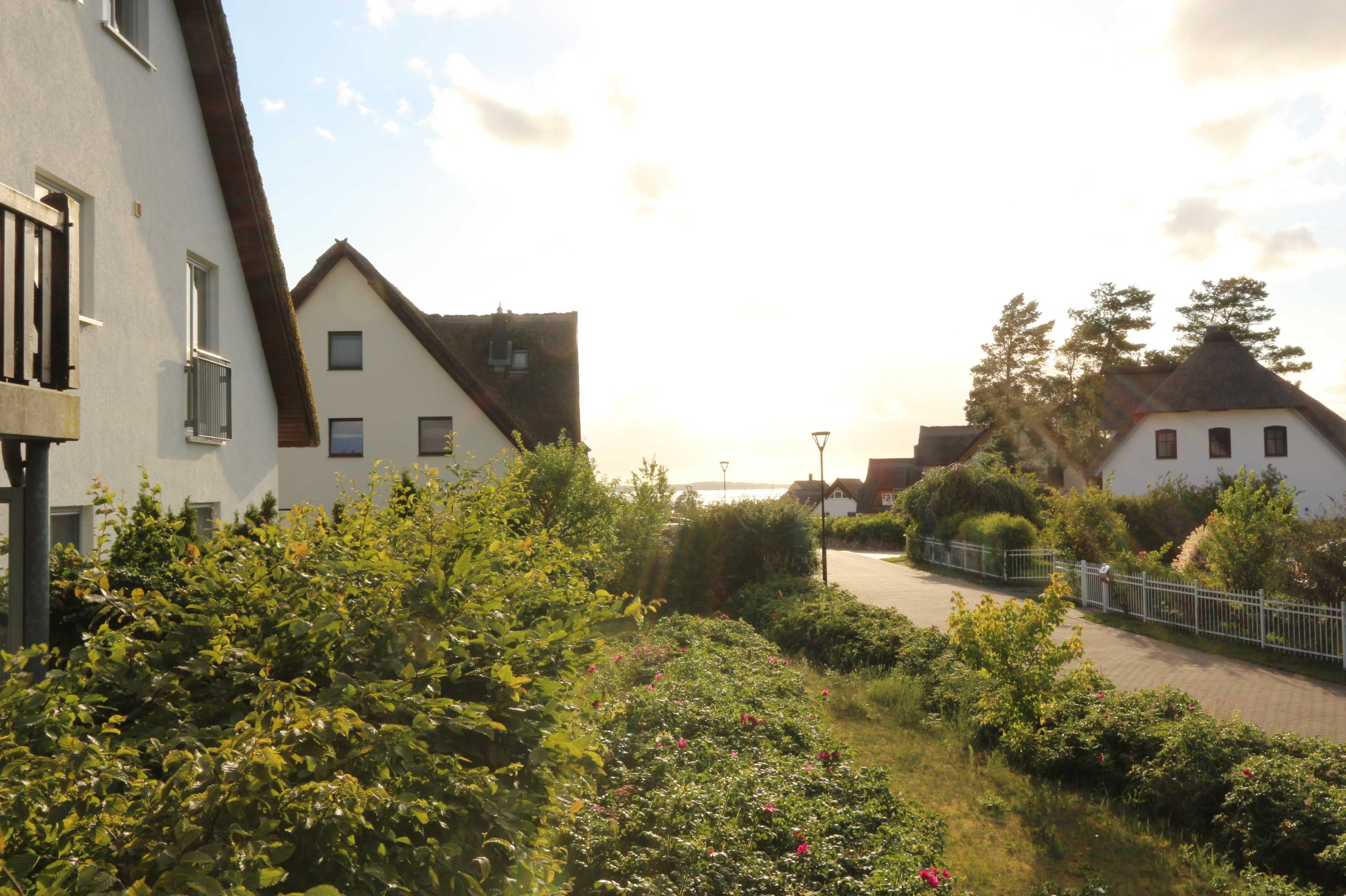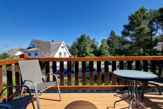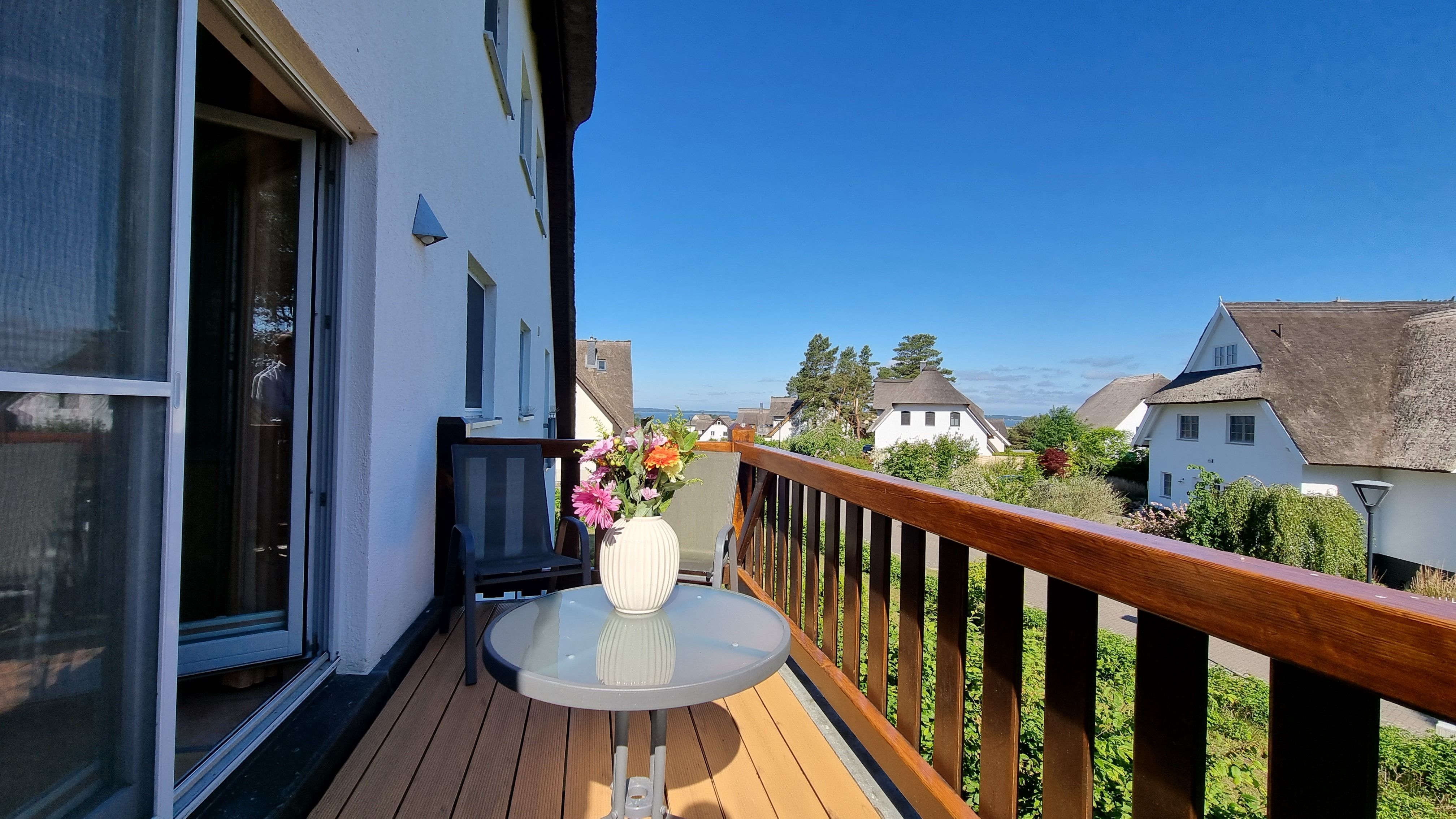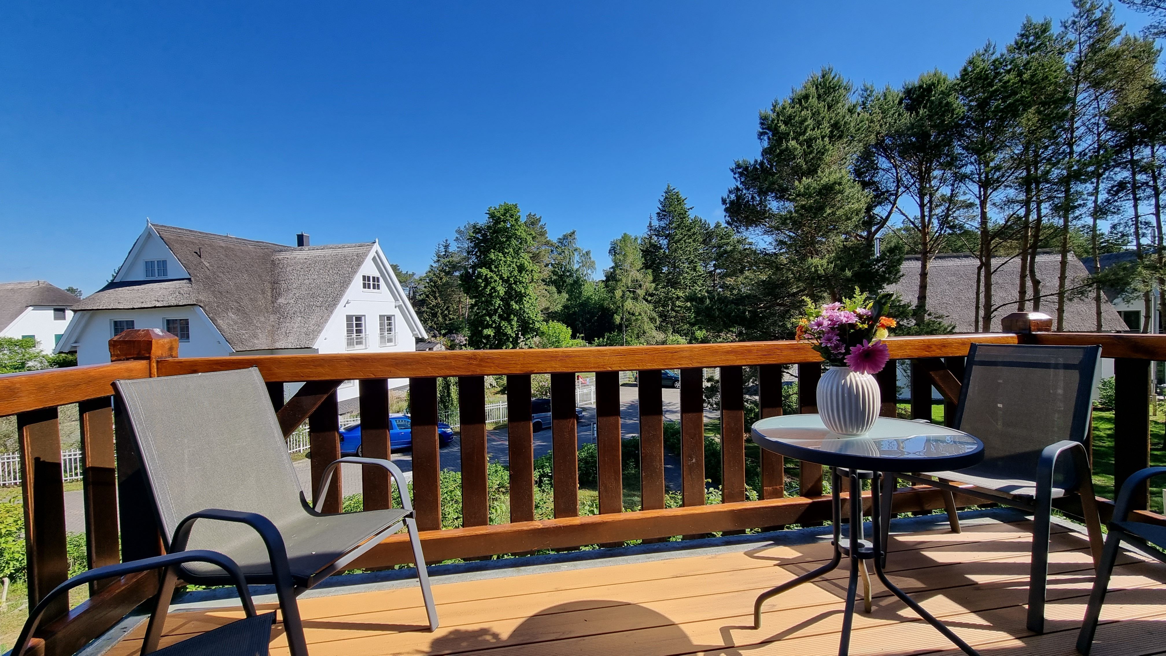 • Balkon mit Tisch und 4 Stühlen und einem herrlichen Ausblick auf das Achterwasser.