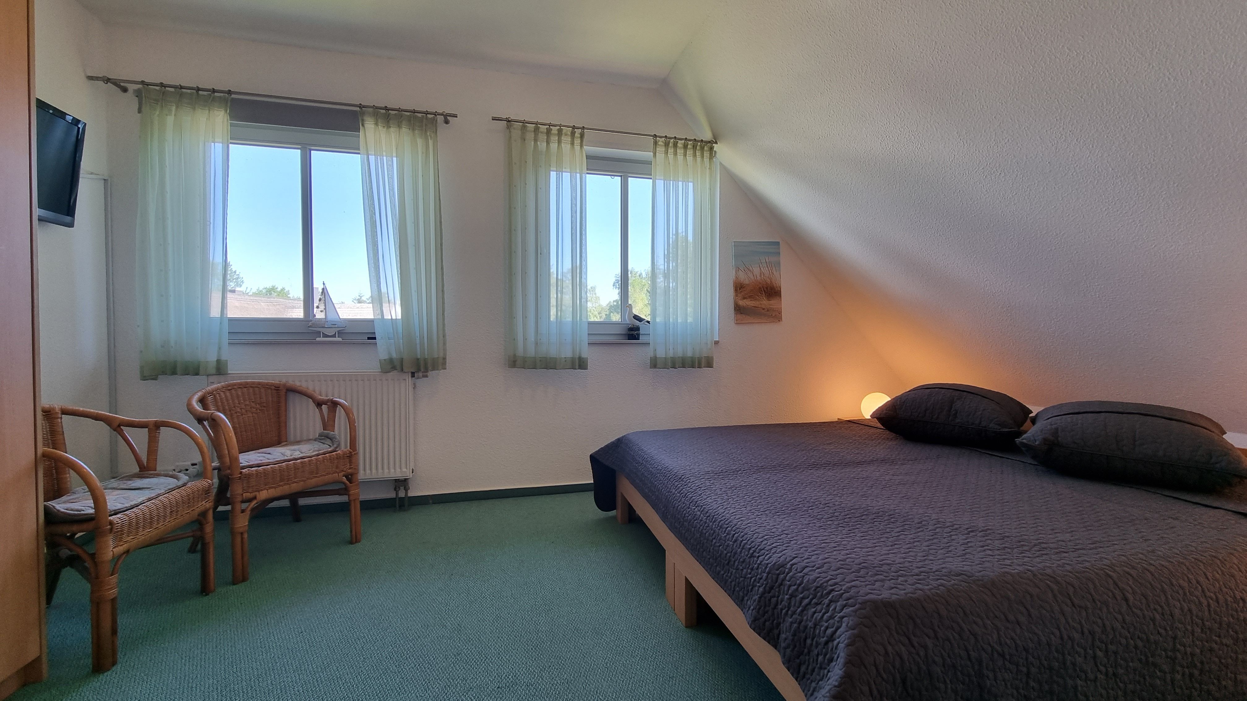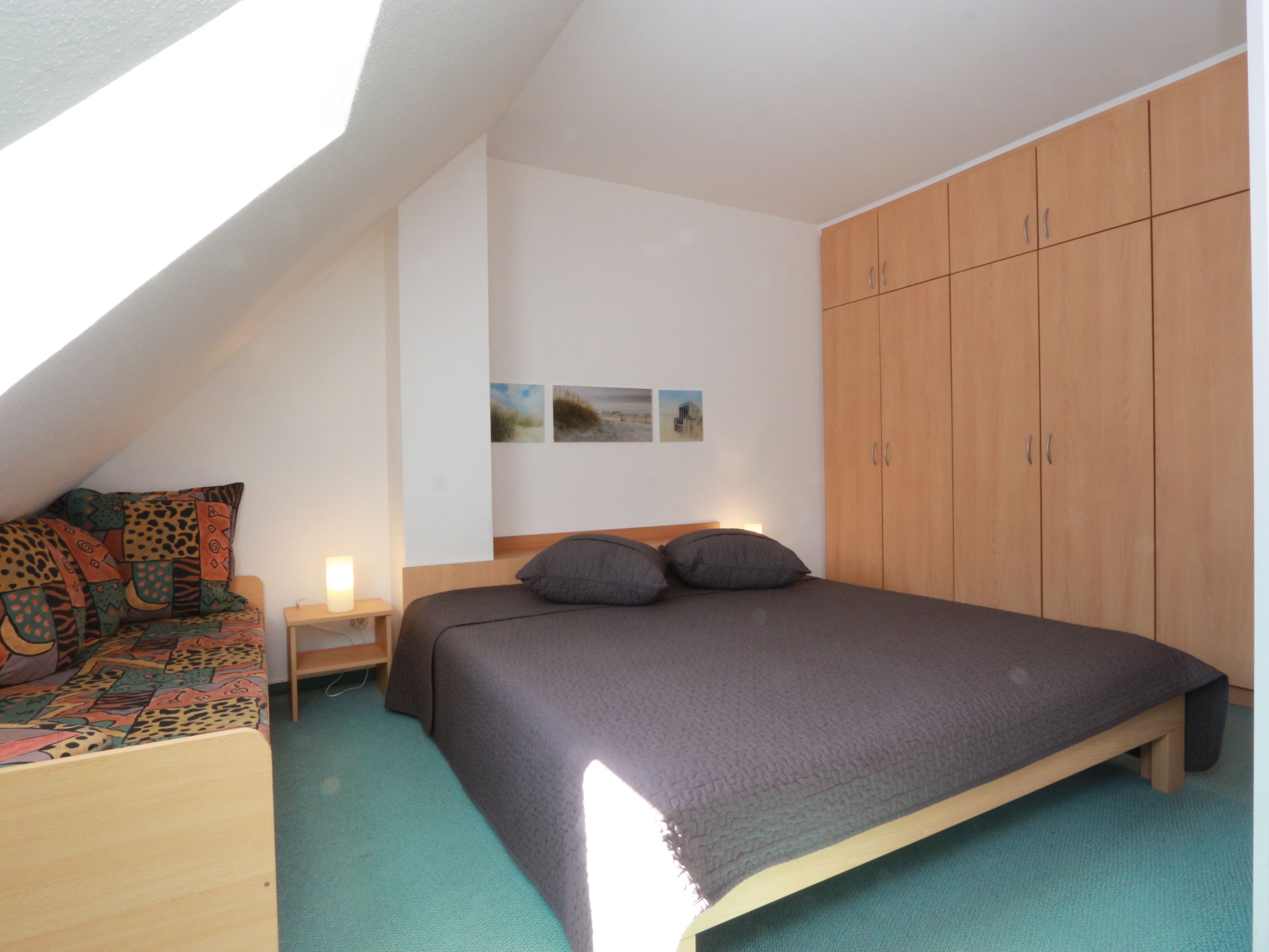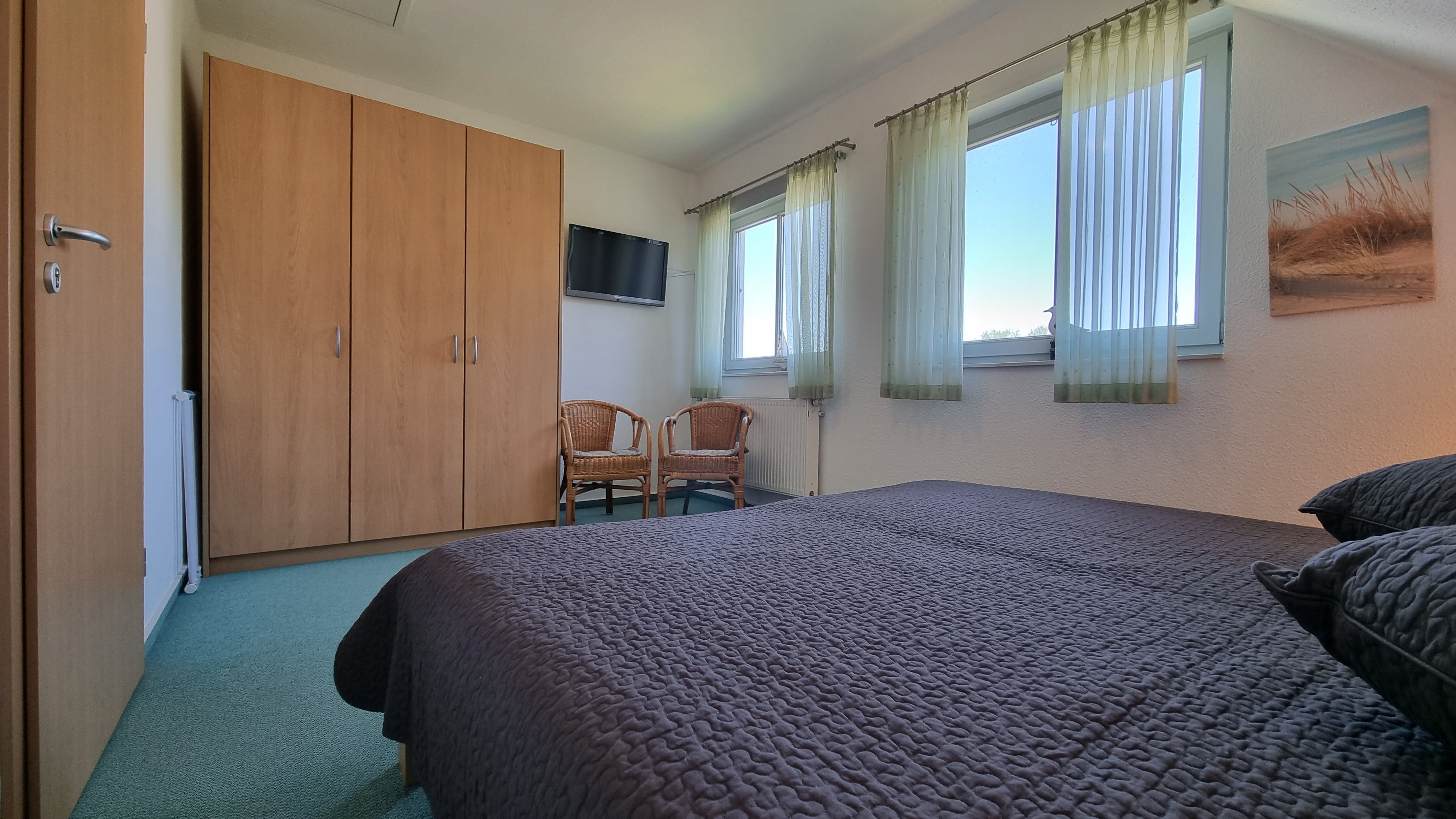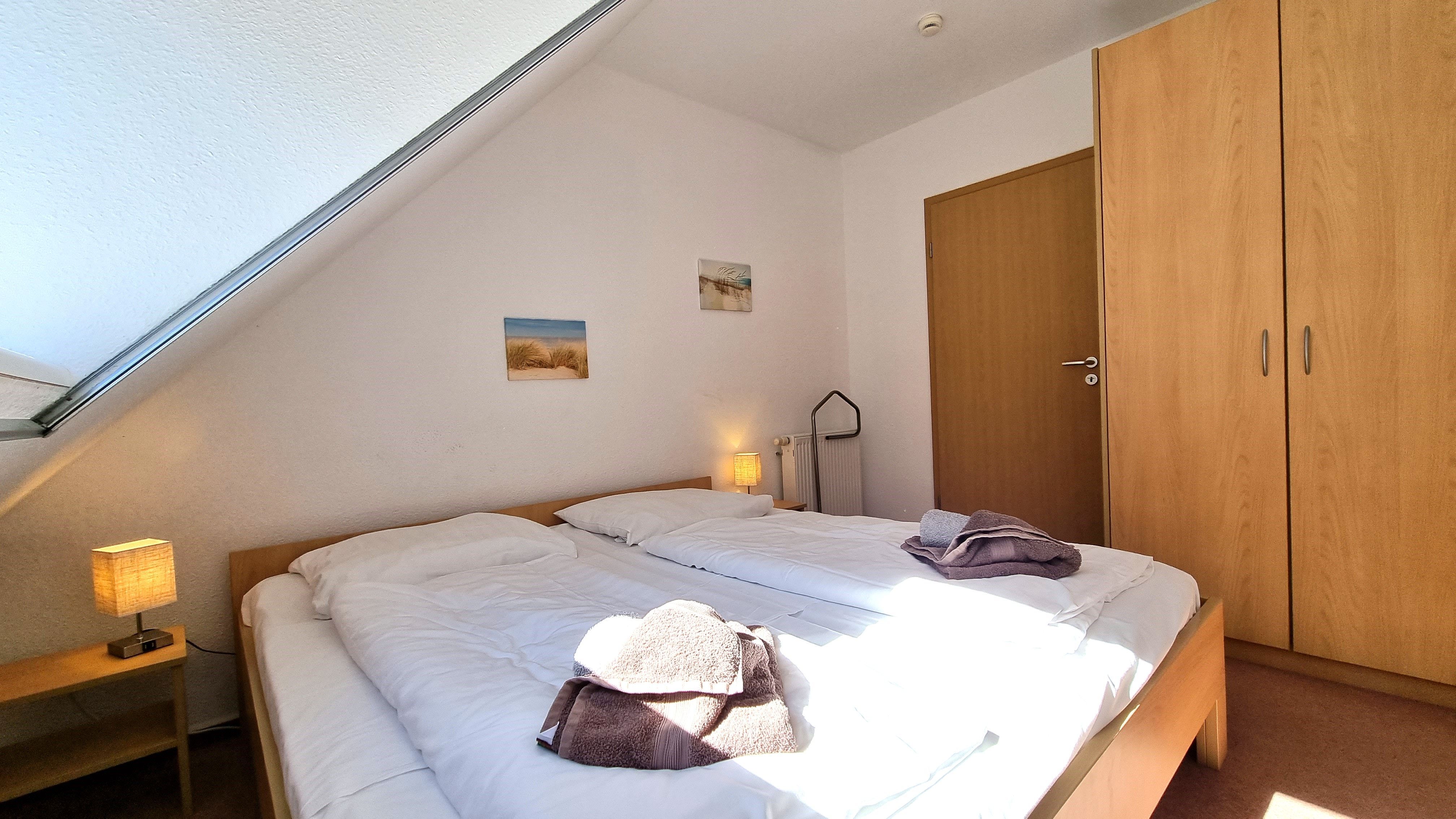 • 1 Schlafzimmer mit Doppelbett und Schrank